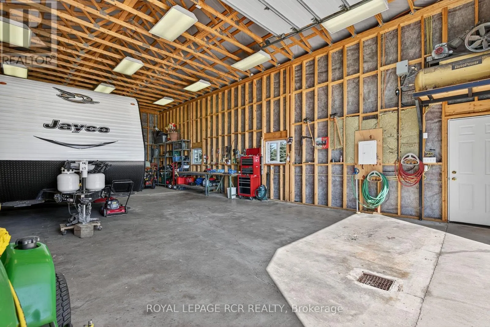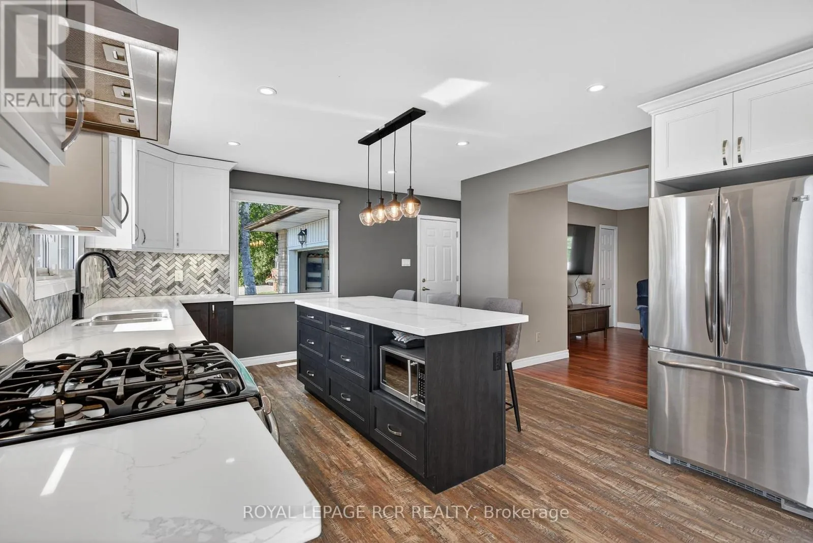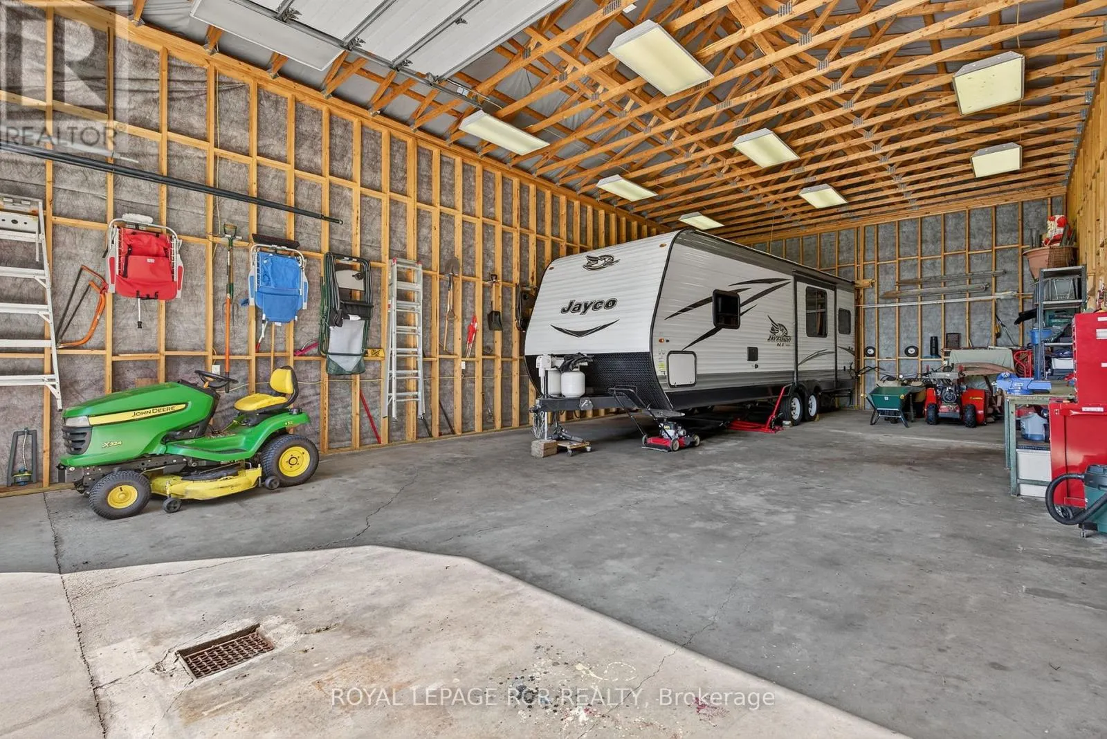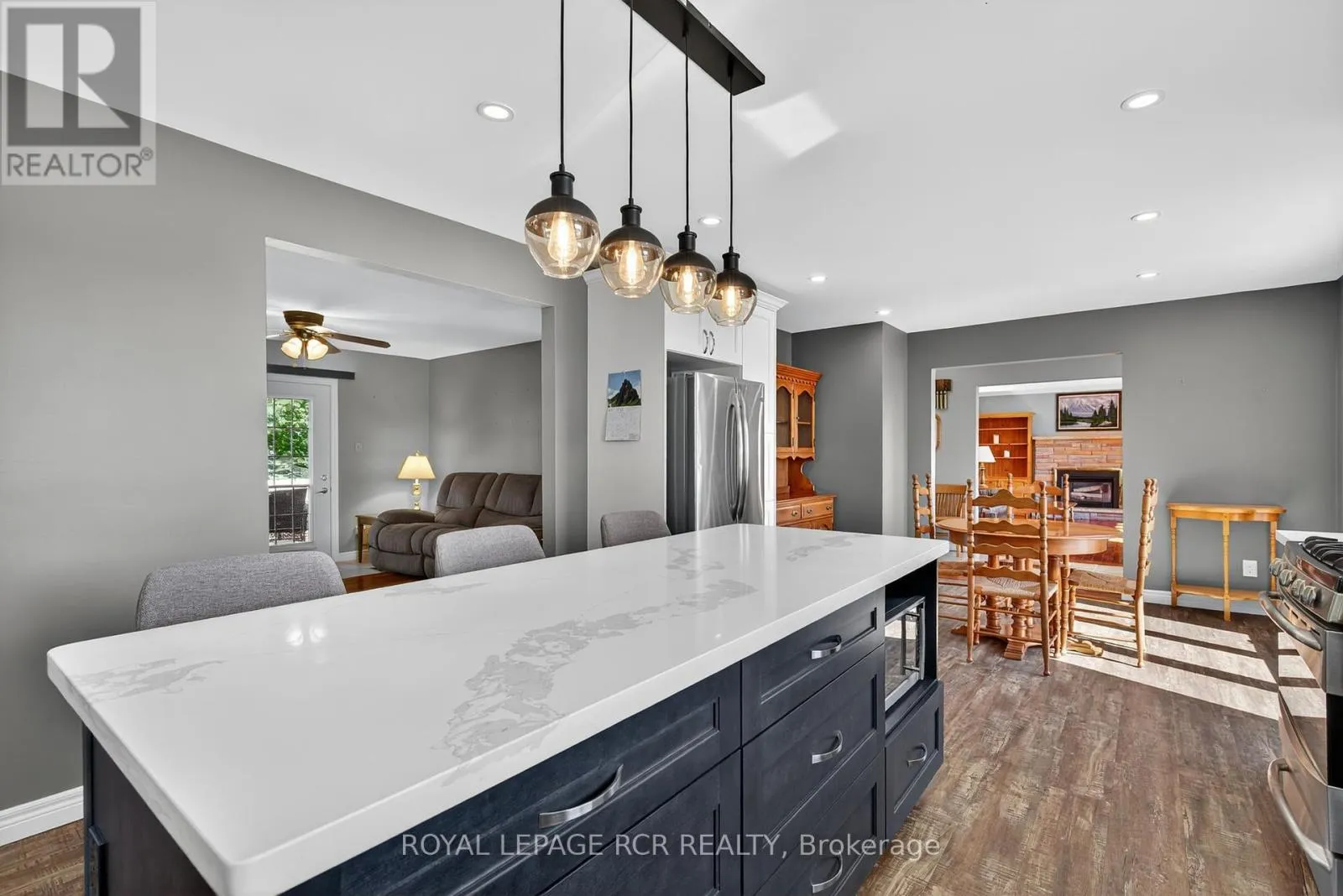 Cross Streets: HWY 9 & CTY RD 25. ** Directions: HWY 9 AND COUNTY RD 25. A Beautiful Bungalow & Large Workshop sitting on a Mature Lot of 1.14 Acres. This home has 2 + 1 BR & 2 WR with many upgrades. Front concrete patio leads to entrance of the home. LR with rich hardwood floors, Gas fireplace & large Bow window allowing all Natural sunlight in. The fabulous Kitchen was renovated in (2024) & features Quartz countertops, Backsplash, Double sinks, Vinyl floors, Pot lights, under Cabinet lighting and plenty of Pot drawers. Enjoy sitting at the Centre island chatting with friends while admiring the sunlight & smelling the aroma of the dishes being cooked. The family room has rich hardwood floors and a Garden Door out to the deck (2014) with a hot tub (2023) & Natural Gas BBQ. The Bedrooms are very spacious & bright with hardwood flooring which is also in hallway. The main 4 pce. Washroom was renovated in (2011) with double sinks. Lower level was renovated in (2020) and features a generous sized Rec. Room with vinyl flooring. 3rd Bedroom has vinyl flooring. Large office/playroom with broadloom & W/I closet. A convenient 2 pce W/R (2020) with separate laundry area & large utility rm/storage. Sump pump battery back up 48 hrs. The Workshop 25x48' FT (2012) and 14' FT high new shop door (2022) with cement floor, hydro (20 amp in shop), (200 amp in home). water tap and air compressor. Single car garage attached to home with plenty of parking. Roof (2016), Hardwood flrs. (2012), Water pump (2024), Furnace (2019) A/C (2020), W/S(2017), Gutter Guard (2024). (id:27476)