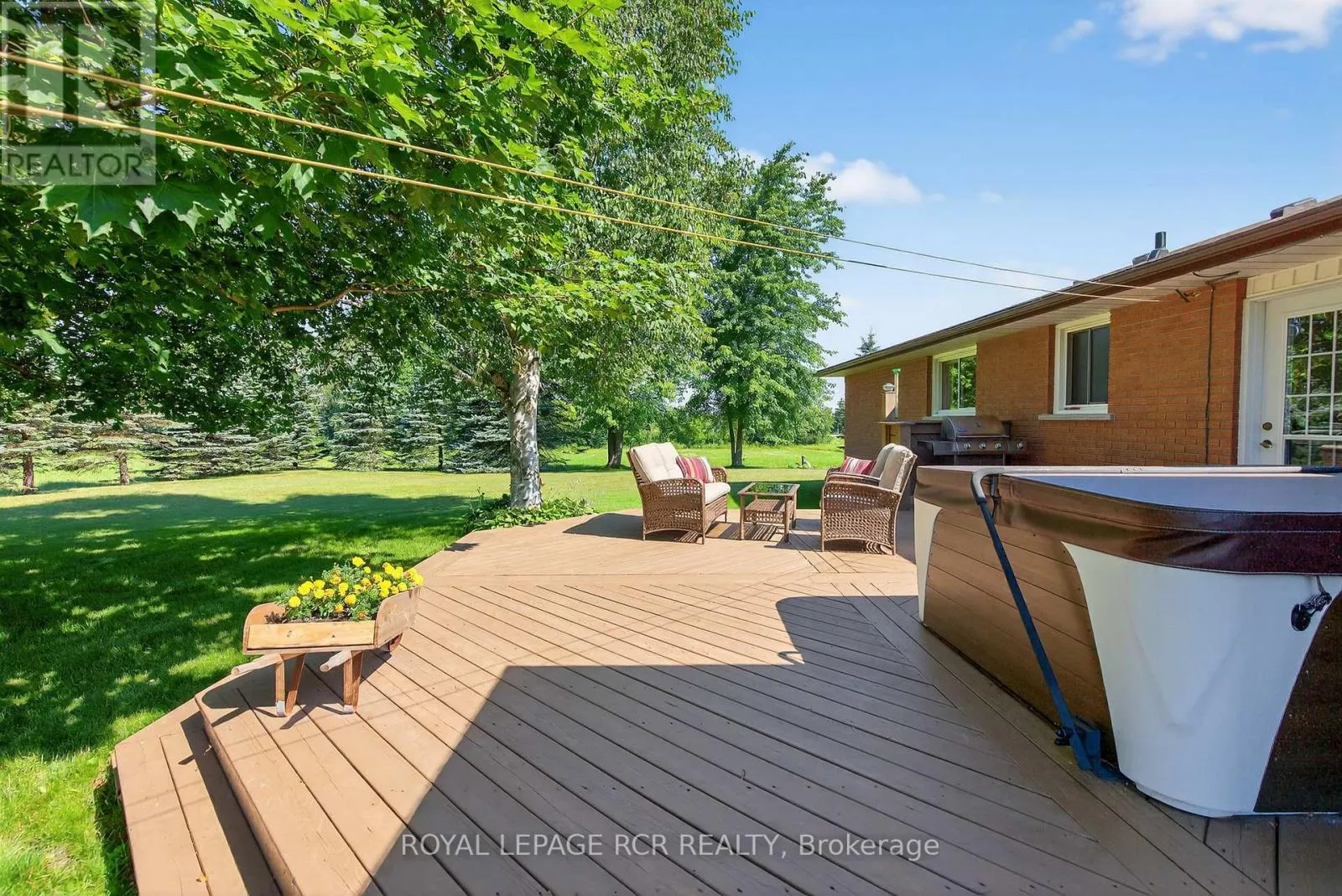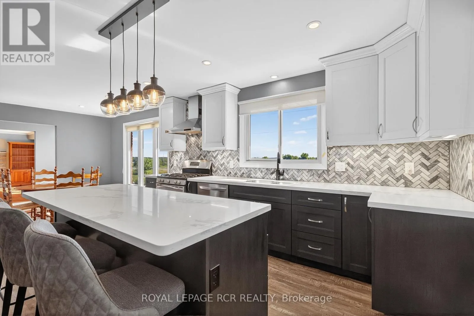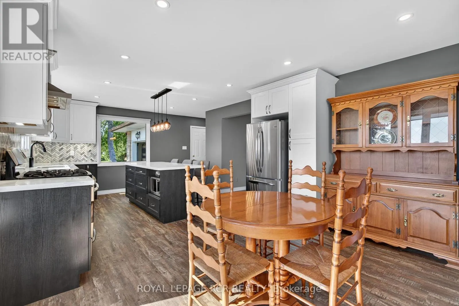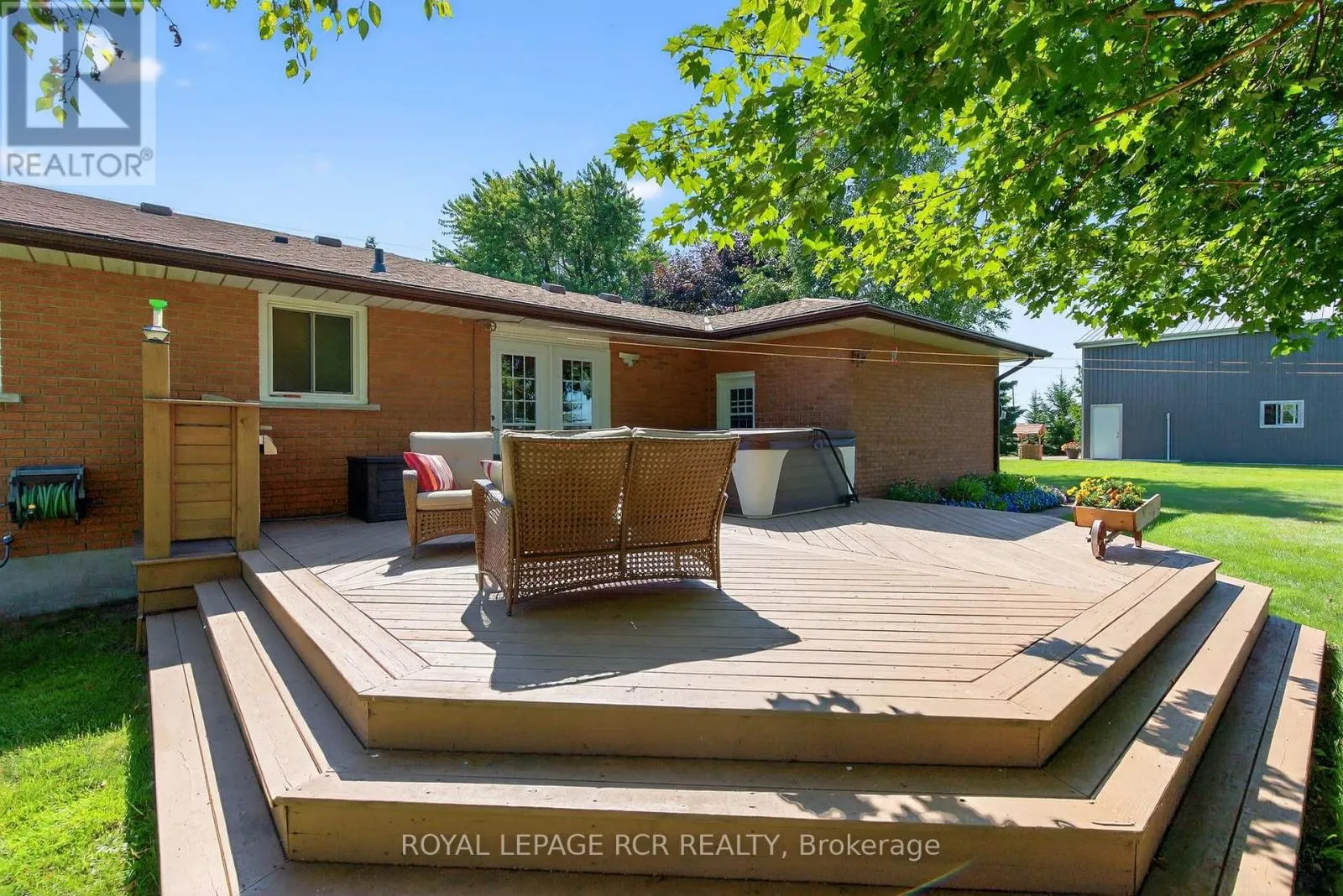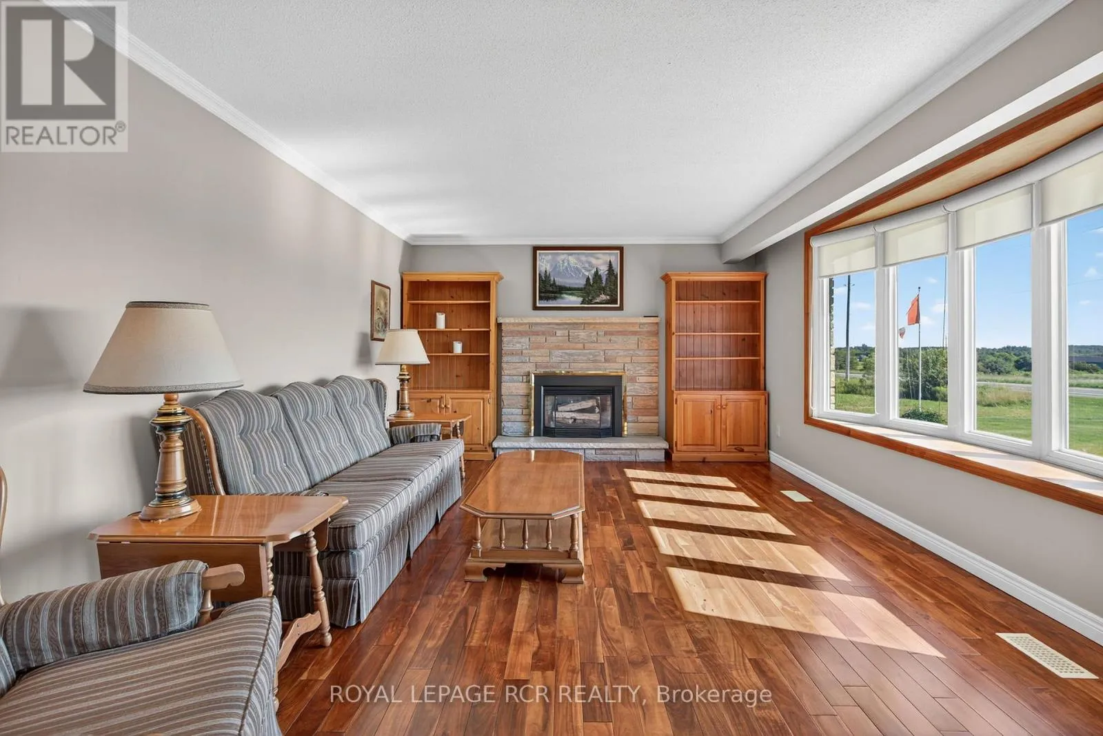 Cross Streets: HWY 9 & CTY RD 25. ** Directions: HWY 9 AND COUNTY RD 25. A Beautiful Bungalow & Large Workshop sitting on a Mature Lot of 1.14 Acres. This home has 2 + 1 BR & 2 WR with many upgrades. Front concrete patio leads to entrance of the home. LR with rich hardwood floors, Gas fireplace & large Bow window allowing all Natural sunlight in. The fabulous Kitchen was renovated in (2024) & features Quartz countertops, Backsplash, Double sinks, Vinyl floors, Pot lights, under Cabinet lighting and plenty of Pot drawers. Enjoy sitting at the Centre island chatting with friends while admiring the sunlight & smelling the aroma of the dishes being cooked. The family room has rich hardwood floors and a Garden Door out to the deck (2014) with a hot tub (2023) & Natural Gas BBQ. The Bedrooms are very spacious & bright with hardwood flooring which is also in hallway. The main 4 pce. Washroom was renovated in (2011) with double sinks. Lower level was renovated in (2020) and features a generous sized Rec. Room with vinyl flooring. 3rd Bedroom has vinyl flooring. Large office/playroom with broadloom & W/I closet. A convenient 2 pce W/R (2020) with separate laundry area & large utility rm/storage. Sump pump battery back up 48 hrs. The Workshop 25x48' FT (2012) and 14' FT high new shop door (2022) with cement floor, hydro (20 amp in shop), (200 amp in home). water tap and air compressor. Single car garage attached to home with plenty of parking. Roof (2016), Hardwood flrs. (2012), Water pump (2024), Furnace (2019) A/C (2020), W/S(2017), Gutter Guard (2024). (id:27476)