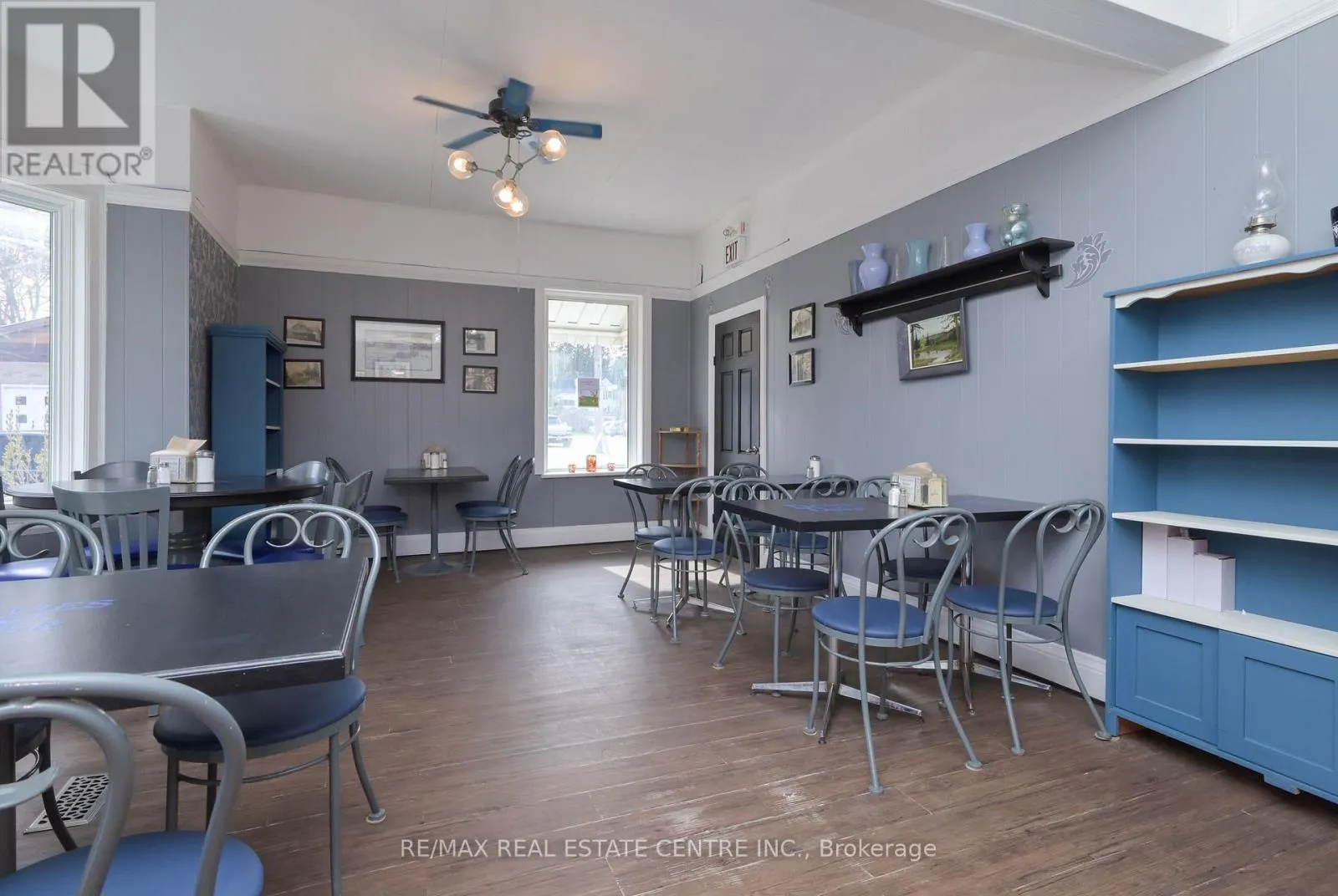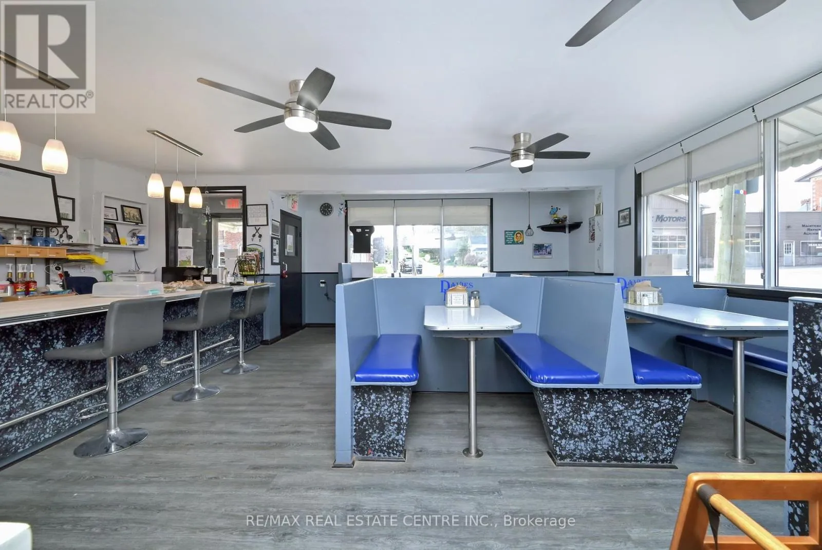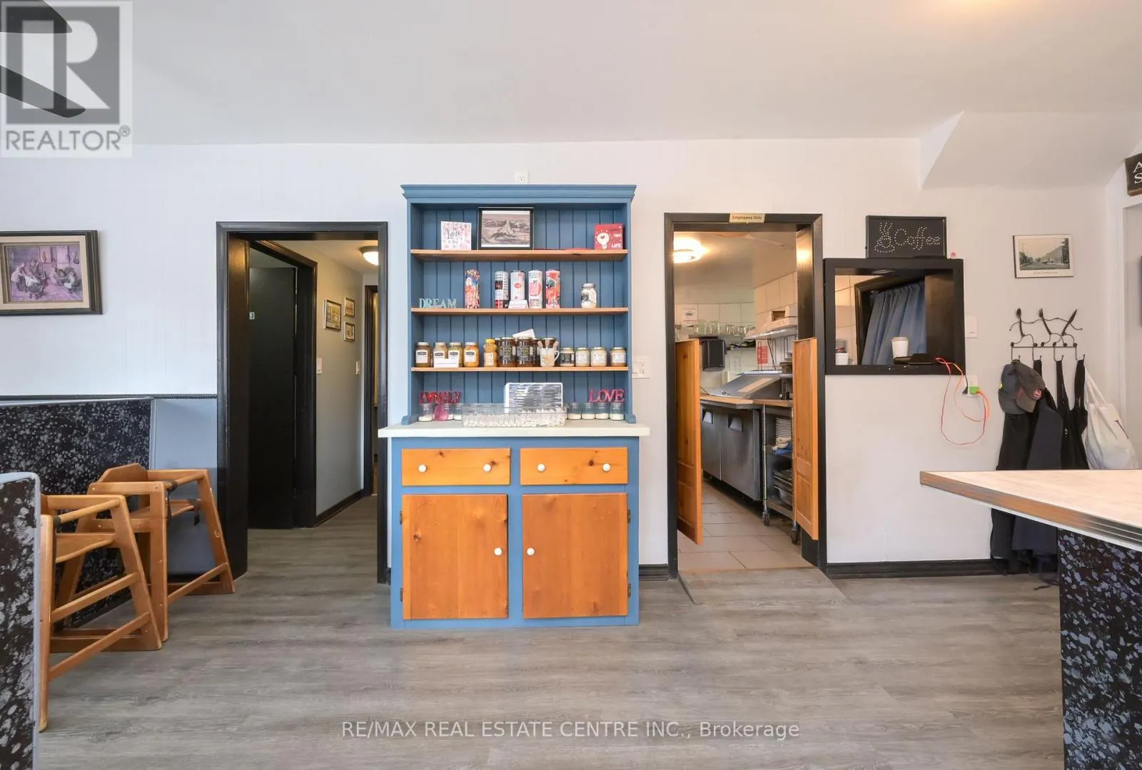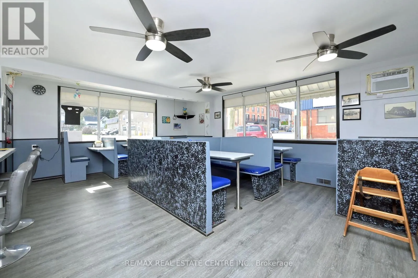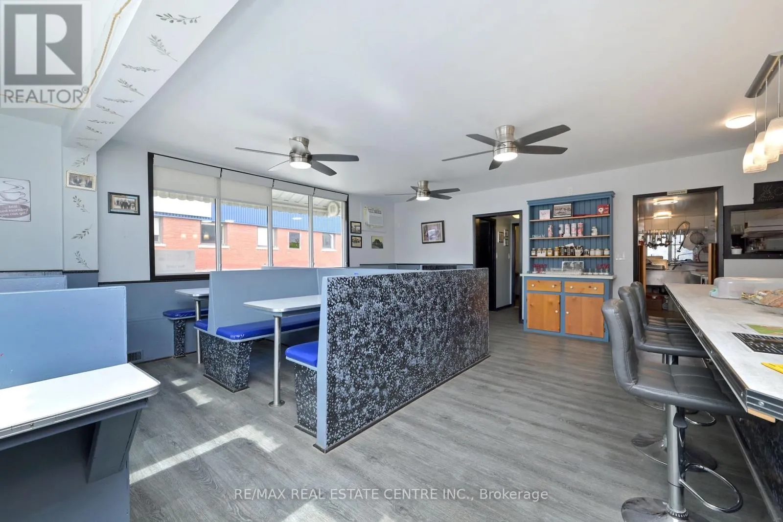 Cross Streets: Mill and Main. ** Directions: north. Excellent opportunity to be your own boss in this multi use commercial/residential building. High profile location on busy Main Street Grand Valley. Bring your ideas and imagination. Ideal for laundry, restaurant, retail store, gym and so much more. Lots of parking on street. Easy access to major highways. Previously operated as a Family Diner but easily adaptable to your specific needs and ideas. All restaurant equipment (on site) and chattels included. Upper level has two bedrooms and a 4 piece bath and laundry facilities. New furnace in december 2024. Small wired building in side yard was used for ice cream sales. Outside storage buildings. Main Floor features diner area, dining room, cook area and prep area and 2 -2 piece baths. Well maintained. Ideal set up for upper level living space to live and work from home. Private building parking (2). (id:27476)
