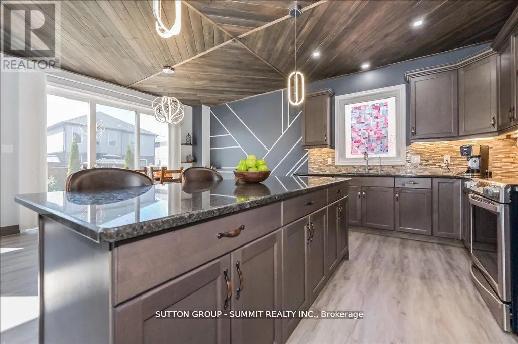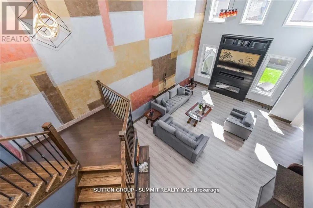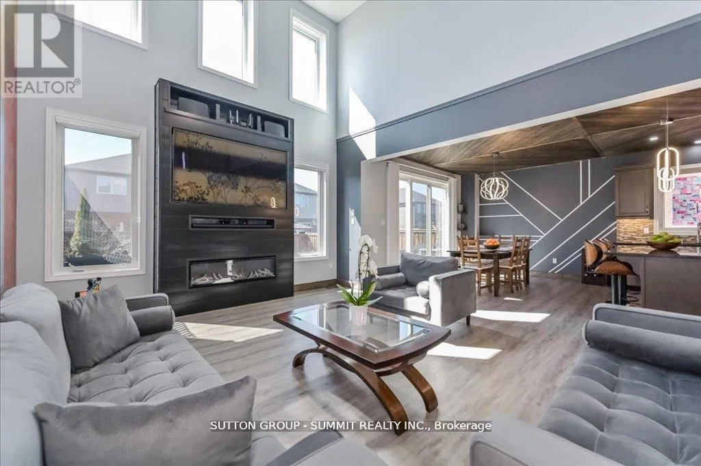 Mcintyre Lane/ Mayberry Dr Stunning Detached Home with exceptional Craftsmanship & Over 100K in upgrades.Welcome to this Standout home where pride of ownership is reflected in every inch.From the moment you arrive, you will notice the quality, from the beautifully crafted stone driveway & stone front façade.Step through the door & be greeted by 9ft ceilings. The kitchen is an entertainer's dream,featuring 36" upper cabinets, under-valance lighting w/ pot lights, stylish ceiling, wall accents & a stunning granite island, top of the line S/S appliances and a brand-new electric stove with warranty.The open concept layout flows into a warm and elegant living room, complete with a fireplace and built-in TV wall, soaring 17-foot ceilings, and motorized Powerview shades. Enjoy living with smart features like Lutron switches for home automation,dimmable light fixtures to set the perfect mood, Lorex security cameras (no subscription needed and remote access), central vacuum. Heat and privacy-protective treatments on the main windows and durable polycarbonate window wells are additional thoughtful touches.The main floor also includes a convenient laundry room with access to the double garage which features heat-resistant luxury vinyl flooring, a garage opener with battery backup.Step outside to a low-maintenance backyard, fully upgraded with beautiful stonework garden and artificial grass ideal for relaxing or entertaining without the upkeep. Upstairs,the bright primary bedroom offers a walk-in closet and a luxurious ensuite with his-and-hers vanities, a linen closet, and a skylight, 2 additional generous bedrooms share a modern 4-piece bathroom with a sleek glass door.The finished basement offers flexibility with a rough-in for a 3-piece bath, cold room,built-in TV wall and plenty of storage to be adapted to your needs, ensuring peace of mind and reliable performance for years to come.The list of upgrades is truly extensive please refer to the attach (list (id:27476)
