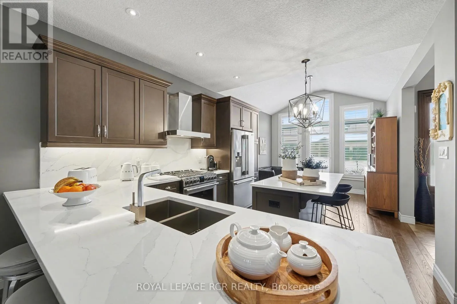Cross Streets: Melody & 25. ** Directions: Hwy 25 to Melody Lane to Taylor Dr. Exquisite "Better Than New" Bungalow Perfection in East Luther Grand Valley. Discover a truly special home where pride of ownership meets high-end luxury. Situated on a generous 45-foot lot in the heart of this peaceful community, this stunning open-concept bungalow offers a rare combination of style, comfort, and meticulously curated upgrades. Stepping through the safety lock, custom made, fiberglass front door, you are greeted by soaring 9-foot ceilings, gleaming hardwood floors, and upgraded LED lighting that floods the space with warmth. The heart of the home is the custom kitchen, a chef's dream featuring a large island, stainless steel appliances, and striking new quartz countertops and backsplash. The open flow leads directly to through the spacious dining area to the living area, anchored by a cozy gas fireplace-perfect for cool evenings. Step out from the living area to your backyard oasis. The large and new(2 yrs), partially covered Trex deck offers a privacy screen and overlooks a deeply private yard, creating a serene retreat. The exterior excellence continues with beautiful landscaping, including a jewel stone walkway, front porch, and curbstone lining the driveway. The lower level was professionally finished 2 years ago, to extend your living space significantly. With luxury vinyl flooring throughout, it boasts a high-end kitchenette, sprawling sitting areas, a large bedroom, and a stunning 3-piece bathroom-ideal for guests or multi-generational living. No detail has been overlooked: from the insulated 2-car garage with a pristine new epoxy floor to the upgraded bathrooms featuring new quartz vanities, new toilets, and glass showers. Complete with Central Vac, A/C, Air Exchanger, and Reverse Osmosis water system, this home is not just a listing; it is a masterpiece waiting for you to just move in! This is a must see and an incredible value. (id:27476)