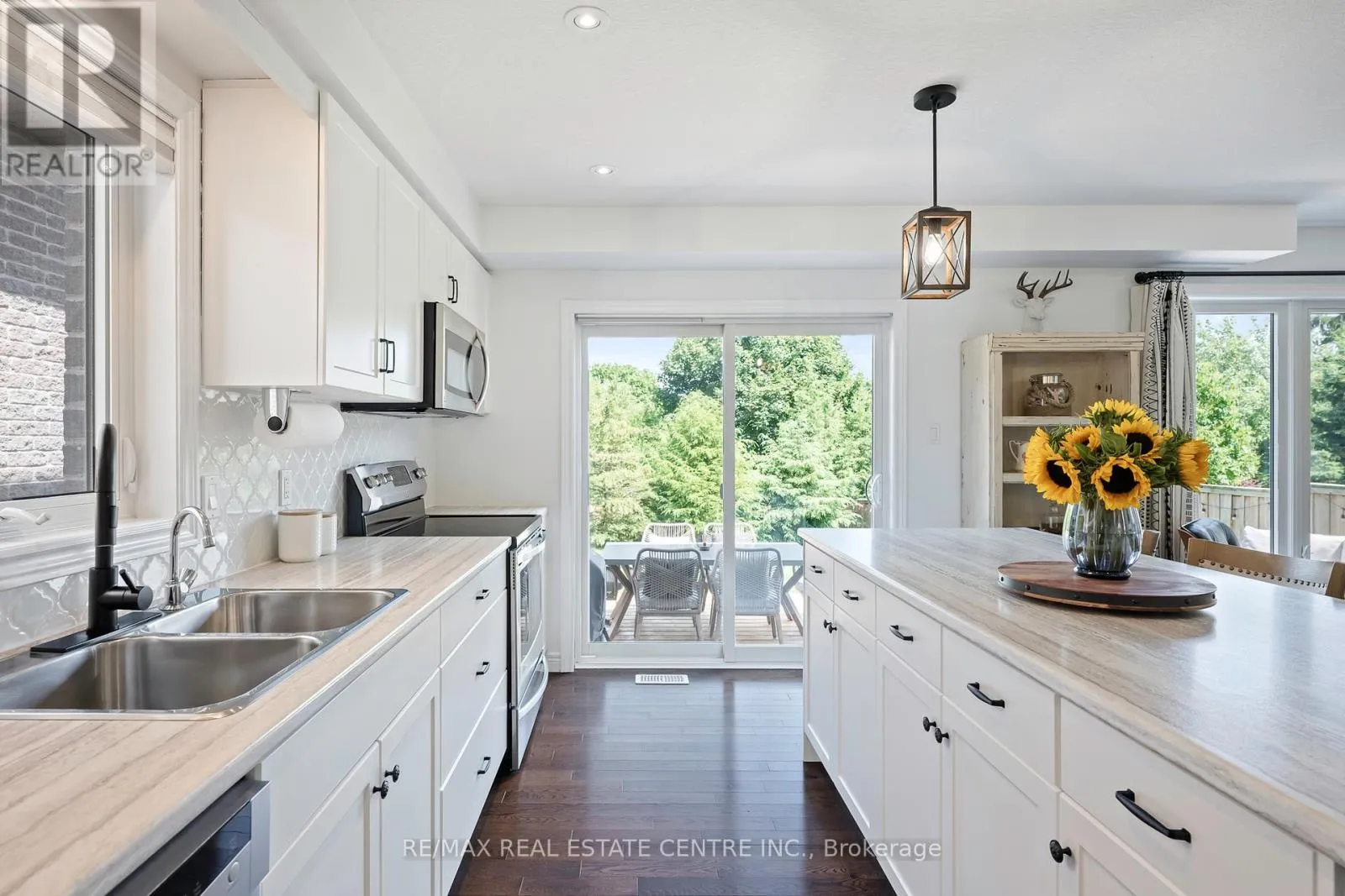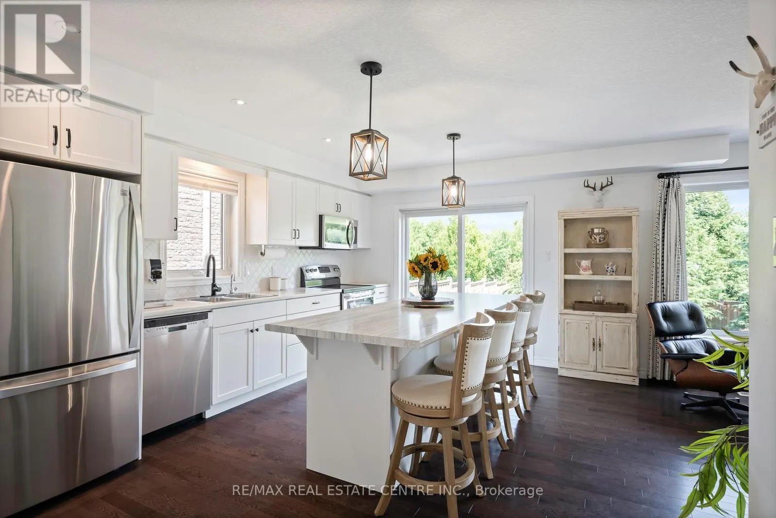 Cross Streets: Taylor Dr/Mill St W. ** Directions: TAYLOR DRIVE AND MELODY LANE. Set in Grand Valley's Mayberry Hill community, 121 Taylor Drive is a well-kept Thomasfield home with a backyard that stands out. Fully fenced and framed by large mature trees, the space feels private, green, and far less exposed than you expect in a newer neighbourhood. There is room to relax on the deck, room for kids or pets to run, and a backdrop that makes the whole property feel calmer. Built in 2015, this bright 3 bedroom, 3 bathroom home offers about 1,670 square feet of finished living space with a layout that feels open, practical, and easy to live in. Hardwood and tile run through the main floor, and large rear windows bring in natural light while keeping the backyard in view. The eat-in kitchen is clean and functional with white cabinetry, stainless steel appliances, tile backsplash, a large island with seating, and a walkout to the deck. Upstairs, you'll find three good-sized bedrooms, including a spacious primary with a walk-in closet and great natural light. The finished basement adds extra flexibility for a rec room, home office, workout area, or play space, along with another bathroom and useful storage. With a double car garage, modern finishes, and a backyard that gives you real privacy, this is a strong option for first-time buyers and downsizers looking for a move-in-ready home in Grand Valley. (id:27476)