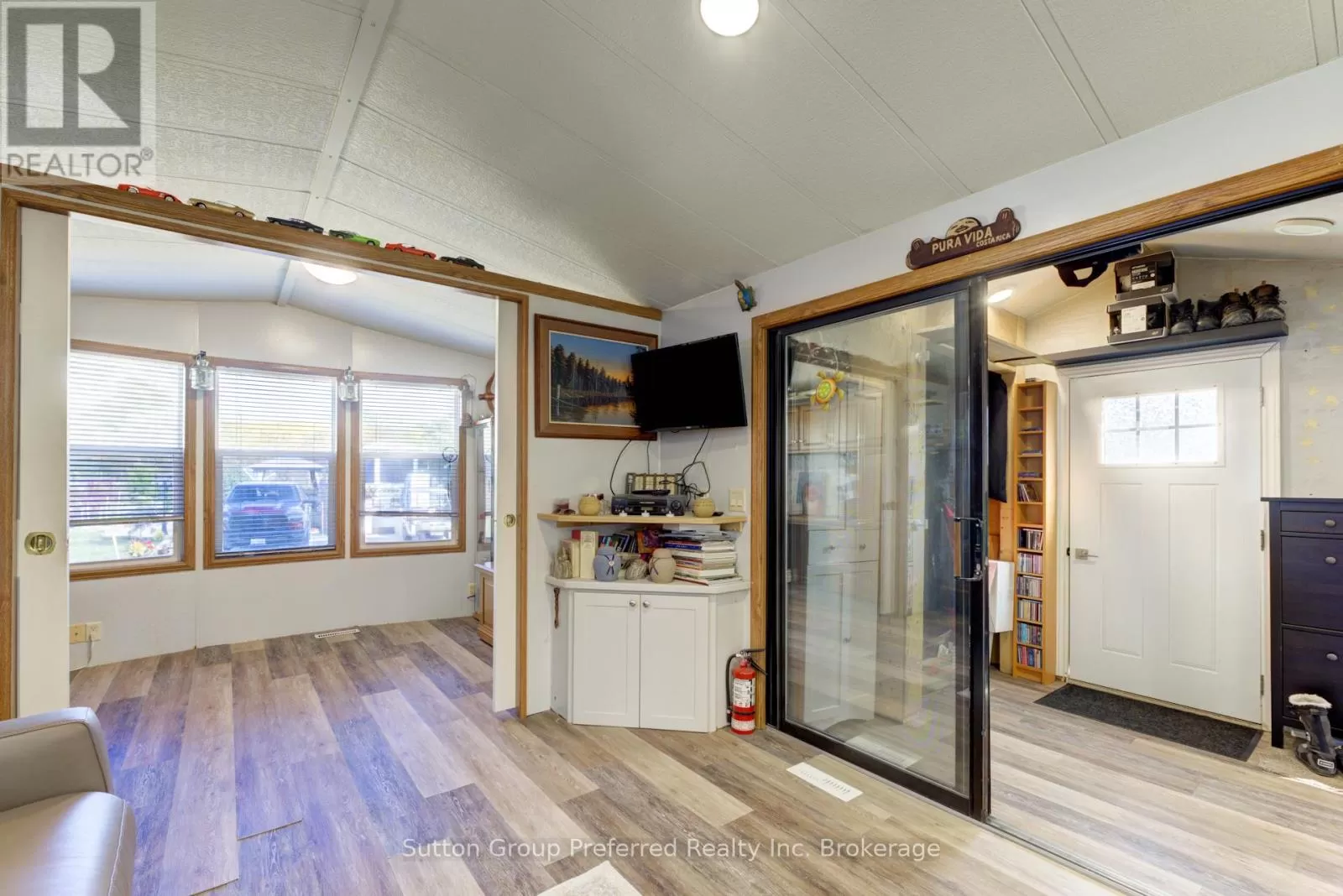 Cross Streets: Braemar Side Road. ** Directions: Braemar Valley Park. Welcome to Braemar Valley RV Park, a peaceful 50+ adult lifestyle community that combines comfort, convenience, and natural beauty. Whether youre looking for a lifestyle change or a place to escape to on weekends and holidays, this is a wonderful choice. The home offers a versatile two-bedroom layout, with one bedroom currently set up as a dedicated office perfect for working from home or enjoying hobbies. A separate mudroom and laundry area provide everyday functionality and organization. The open-concept kitchen and living room create a bright, inviting space where you can cook, dine, and relax with ease. Step outside to your private deck, an ideal spot to enjoy morning coffee or unwind in the evening while surrounded by the serene setting. Two storage sheds offer ample room for tools, outdoor gear, or seasonal items, while dual driveways one single and one double make parking convenient for residents and guests. This home has seen thoughtful updates, including a modernized bathroom with a walk-in shower, water treatment system, fiberglass shingles, eaves, insulated back door and efficient forced-air propane heating for year-round comfort. Life in Braemar Valley is more than just a home its a lifestyle. Residents enjoy access to a community clubhouse with a deck, exercise area, library filled with books and games, a swimming pool, and well-maintained walking trails. Whether youre looking to stay active, connect with neighbours, or simply relax, this community has something for everyone. Nature lovers will appreciate the peaceful surroundings, where geese, ducks, and other wildlife are frequent visitors. Its a truly tranquil place to call home while still being close to everyday amenities. Dont miss your chance to enjoy the comfort and lifestyle of Braemar Valley. This inviting home is ready to welcome its next owners! (id:27476)