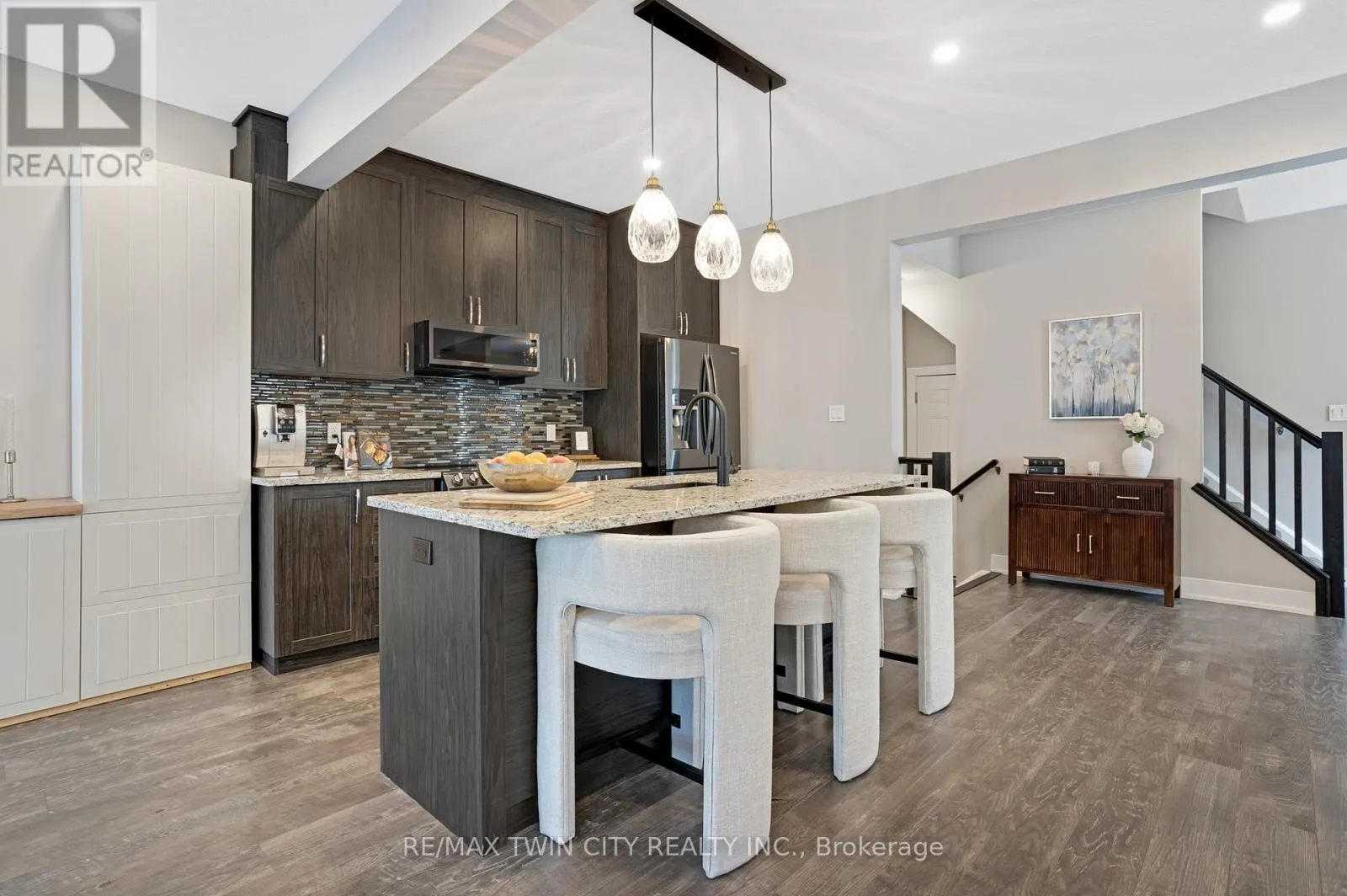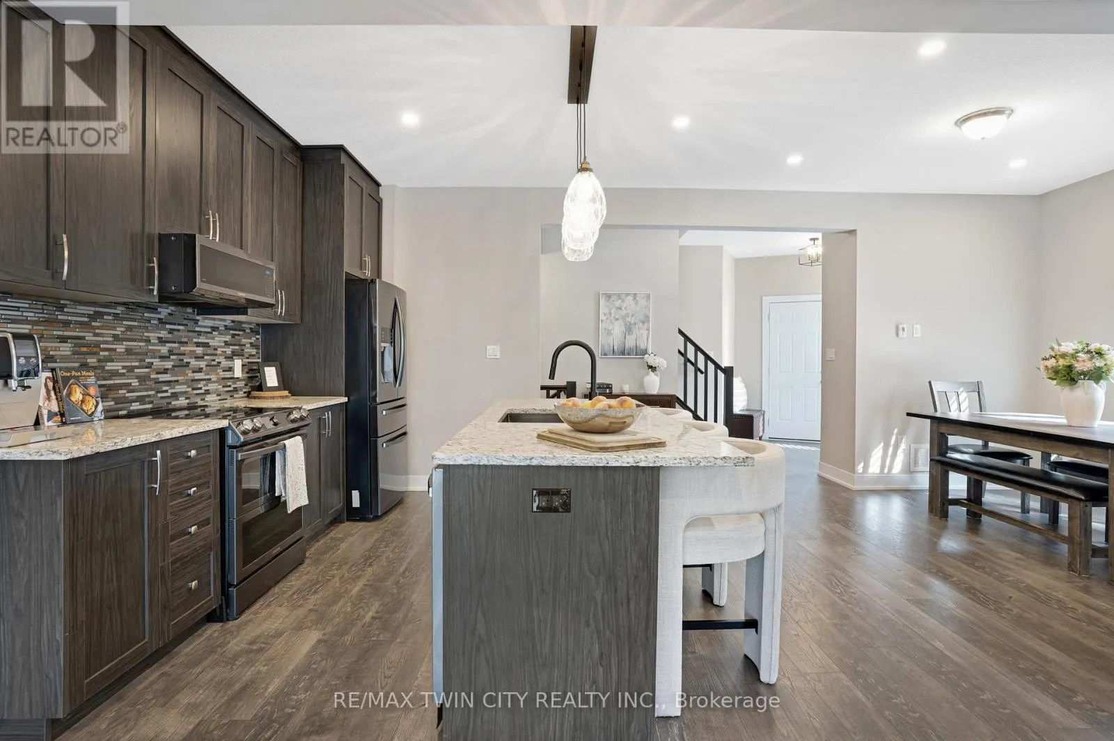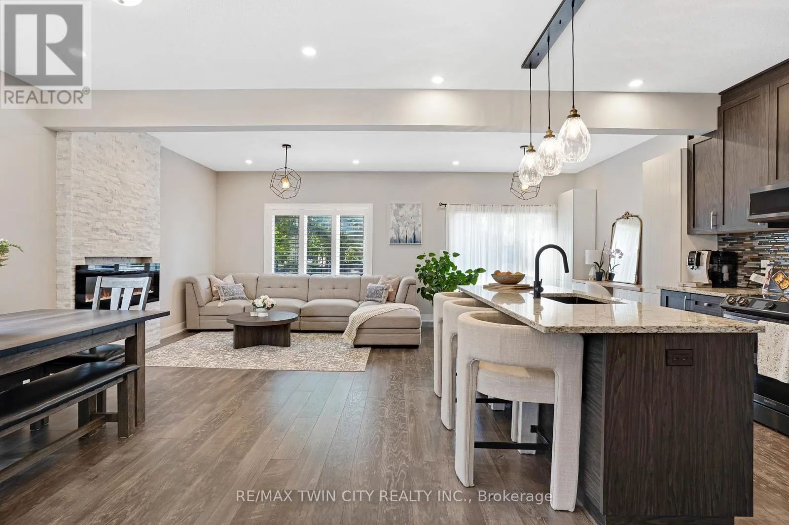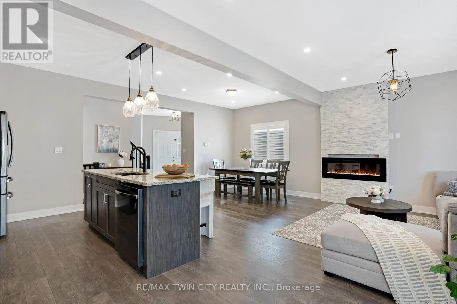 Cross Streets: Elizabeth. ** Directions: Hwy. 24/Hope St. E. to Elizabeth to Jacob. Stunning turnkey semi-detached home, perfect for first-time buyers, couples, or growing families. Offering 3 bedrooms, 2 bathrooms, and a 2-car garage, this home is filled with natural light and designed for modern living. The main floor features 9 ft ceilings, updated light fixtures, and an open layout. The eat-in kitchen includes a large island, custom built-in cabinetry for added storage, and a sliding door leading to the backyard deck. A dining room, cozy living room with an electric fireplace, and a powder room complete the space. Upstairs, a spacious family room with high ceilings provides the perfect gathering spot. Three bedrooms and a 4-piece bath are also found on this level, including a primary bedroom with engineered hardwood floors and a private 3-piece ensuite. The unfinished basement offers big windows, a bathroom rough-in, and plenty of open space to finish to your needs. The backyard is fully fenced and includes a deck-an inviting space to relax, entertain, or let kids and pets play. Located in the family friendly community of Tavistock, you'll enjoy the charm of small-town living with quick access to Stratford and Kitchener-Waterloo. Local shops, schools, and parks are close by, and the quiet streets and surrounding farmland make it a wonderful place to call home. (id:27476)
