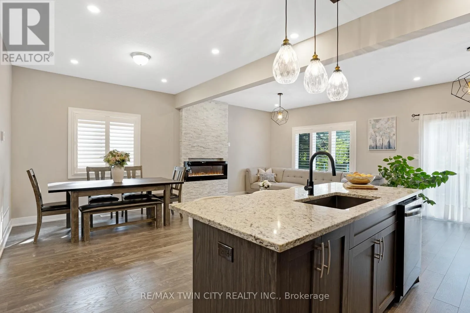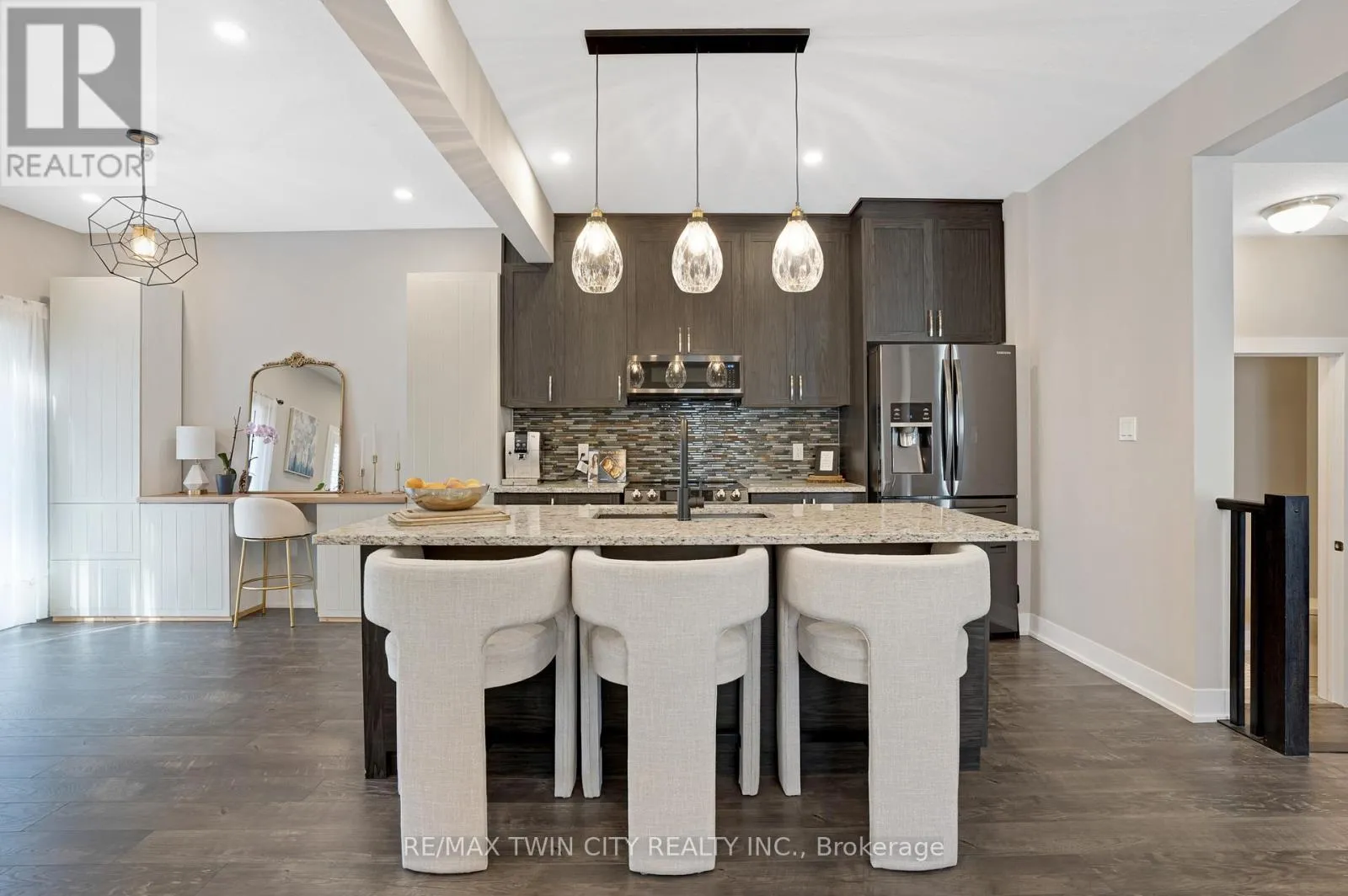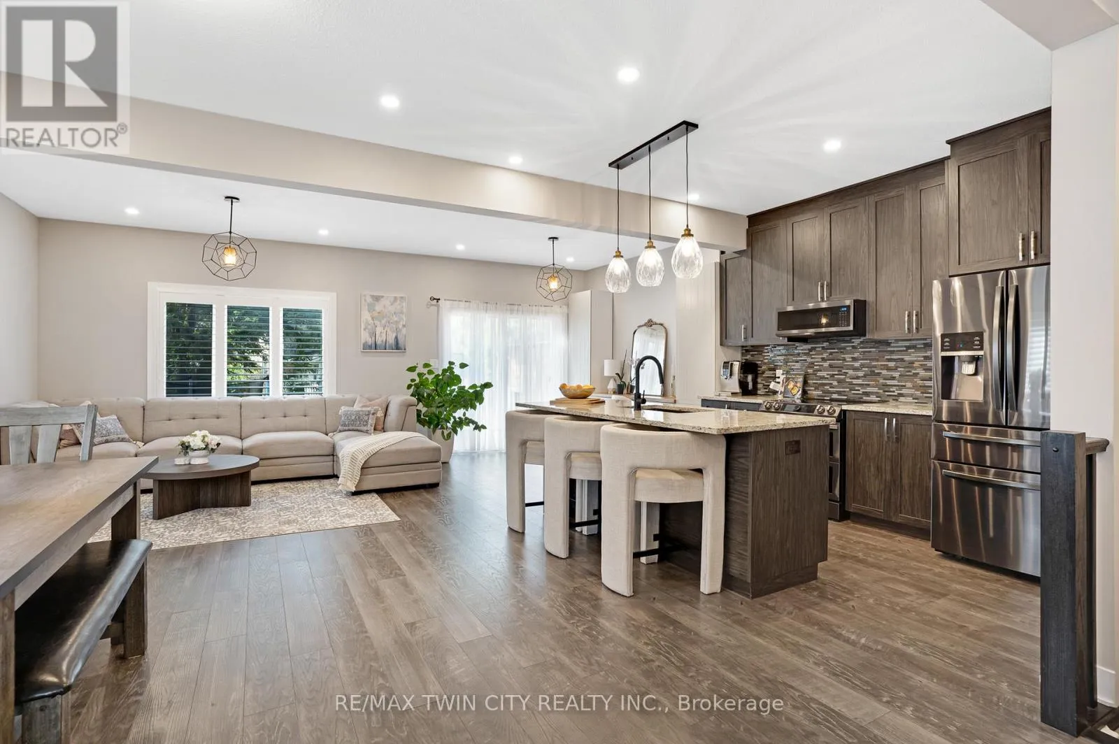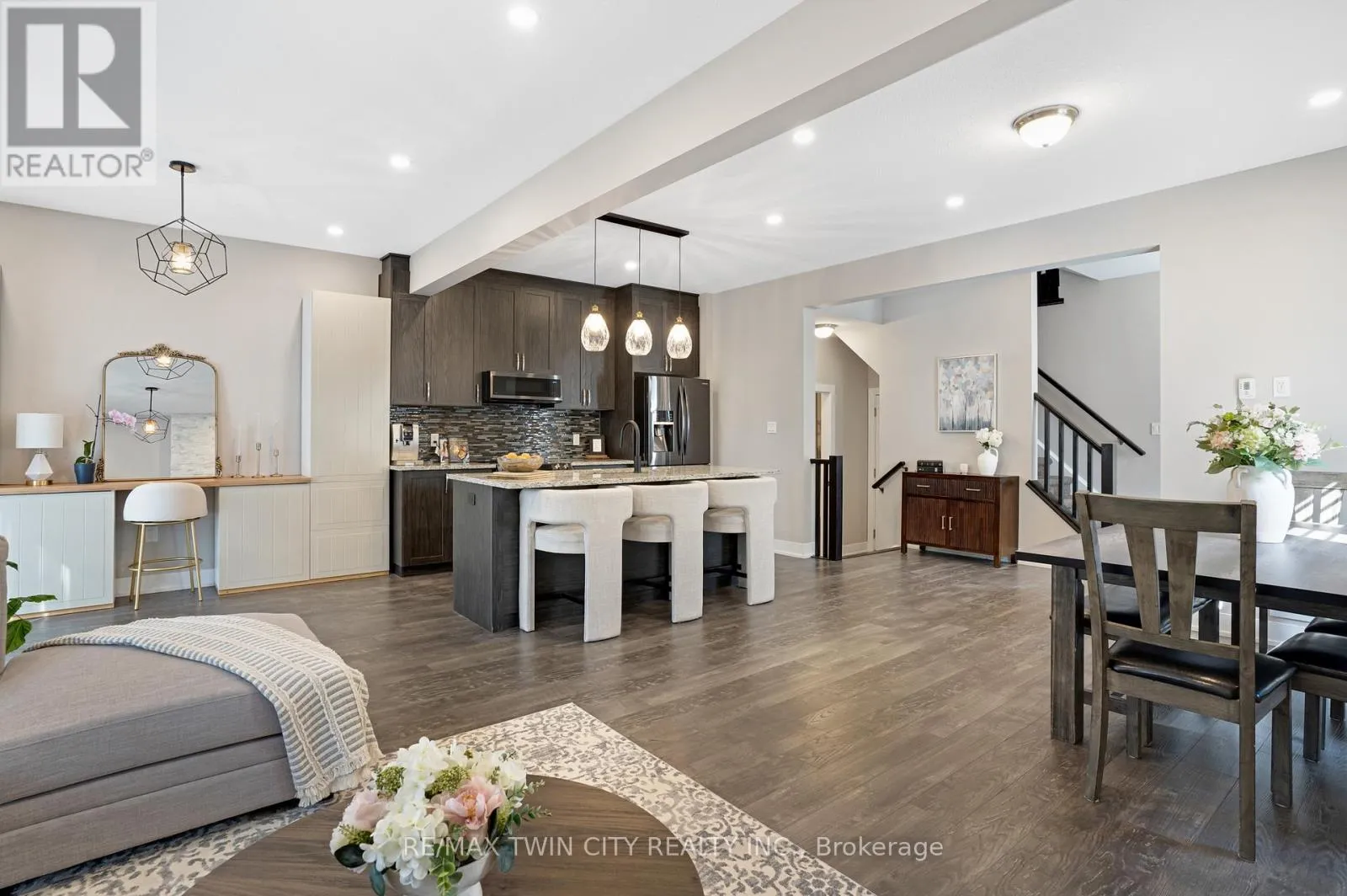 Cross Streets: Elizabeth. ** Directions: Hwy. 24/Hope St. E. to Elizabeth to Jacob. Stunning turnkey semi-detached home, perfect for first-time buyers, couples, or growing families. Offering 3 bedrooms, 2 bathrooms, and a 2-car garage, this home is filled with natural light and designed for modern living. The main floor features 9 ft ceilings, updated light fixtures, and an open layout. The eat-in kitchen includes a large island, custom built-in cabinetry for added storage, and a sliding door leading to the backyard deck. A dining room, cozy living room with an electric fireplace, and a powder room complete the space. Upstairs, a spacious family room with high ceilings provides the perfect gathering spot. Three bedrooms and a 4-piece bath are also found on this level, including a primary bedroom with engineered hardwood floors and a private 3-piece ensuite. The unfinished basement offers big windows, a bathroom rough-in, and plenty of open space to finish to your needs. The backyard is fully fenced and includes a deck-an inviting space to relax, entertain, or let kids and pets play. Located in the family friendly community of Tavistock, you'll enjoy the charm of small-town living with quick access to Stratford and Kitchener-Waterloo. Local shops, schools, and parks are close by, and the quiet streets and surrounding farmland make it a wonderful place to call home. (id:27476)