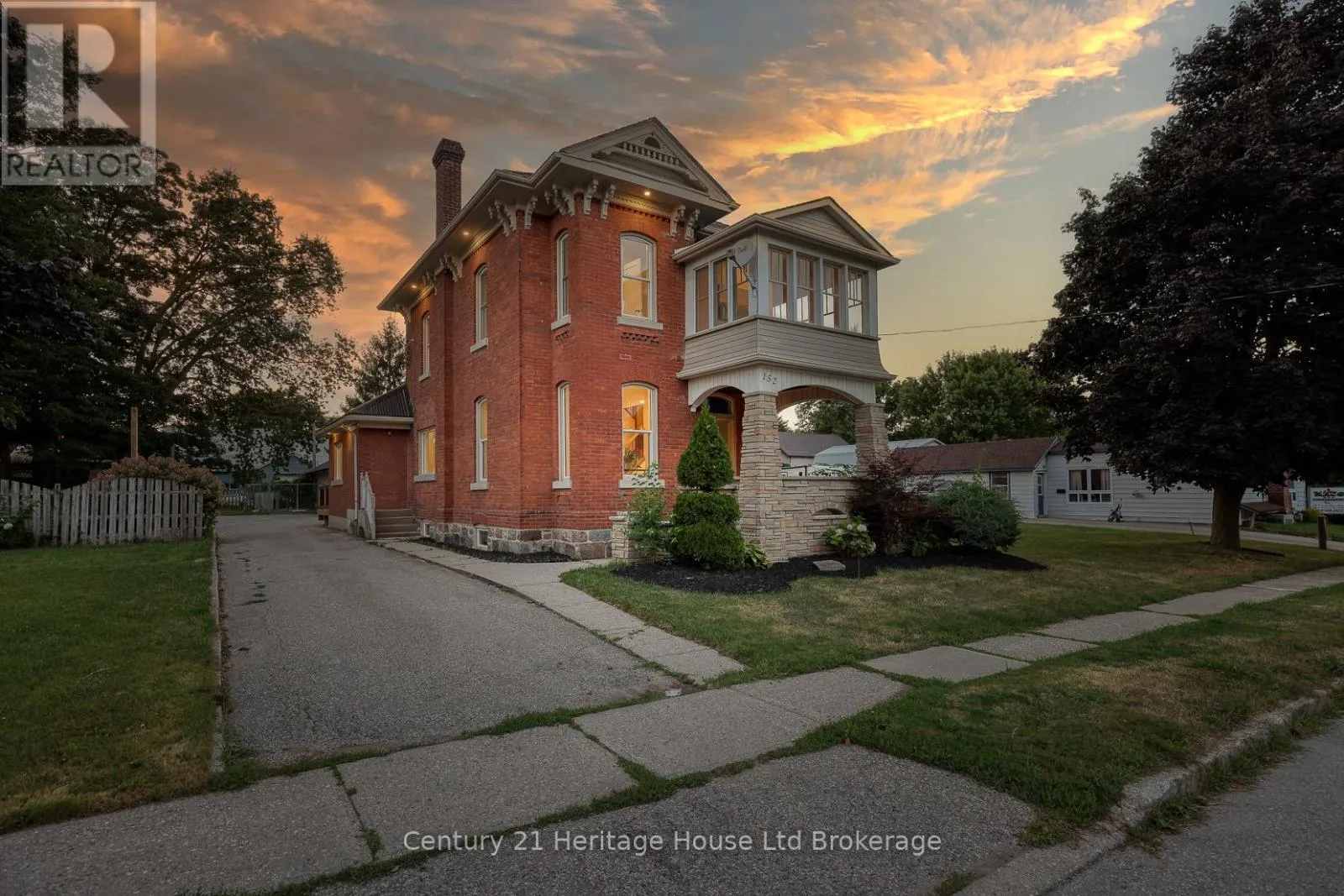 Cross Streets: Balsam St And Blandford. ** Directions: From Highway 401, take Exit 250 for Oxford Road 29 toward Innerkip and head north for about 3 km. Turn left onto Blandford Street and continue straight where you will find 152 Blandford Street on the right. Every once in a while a home comes along that feels like the one you have been waiting for, and this century treasure reveals its heart in a kitchen designed for both luxury and life. From the moment you step inside, wide hardwood plank floors guide you through the main level where soaring 9 foot ceilings set a tone of space and elegance. The kitchen is the crown jewel, framed by a sculpted range hood, detailed ceiling work, and a full height quartz backsplash that reflects light with quiet grace. At the center stands a massive quartz island, both work surface and gathering place, where mornings start, evenings linger, and life flows with ease. The space is anchored by a professional style gas range with a pot filler above, paired with a counter depth fridge and quality dishwasher, all chosen to perform and impress. Two tone cabinetry balances warmth and contrast, quartz counters stretch wide, and a farmhouse sink sits beneath a bright window overlooking the yard. Glass doors open to a deck that extends living outdoors for summer dinners and morning coffee. The main level continues with a welcoming dining area and living room, each finished with timeless detail. Upstairs, three restful bedrooms pair with a convenient second level laundry. The primary suite is a retreat with a walk in closet and a striking coffered ceiling that adds calm, joined by a private ensuite with a tiled shower and refined fixtures. The main bath offers a deep tub with patterned tile that brings a touch of European charm. Tall ceilings, graceful trim, and abundant windows carry a sense of timeless character through every room. Outside, a massive shop stretches across the rear, offering space for ambition and imagination. Whether for a contractors base, creative studio, or storage, the CC zoning allows business uses and creates a rare chance to live and work in town. Renovated with precision, designed with thought, and finished with style, this is a true show stopper. (id:27476)