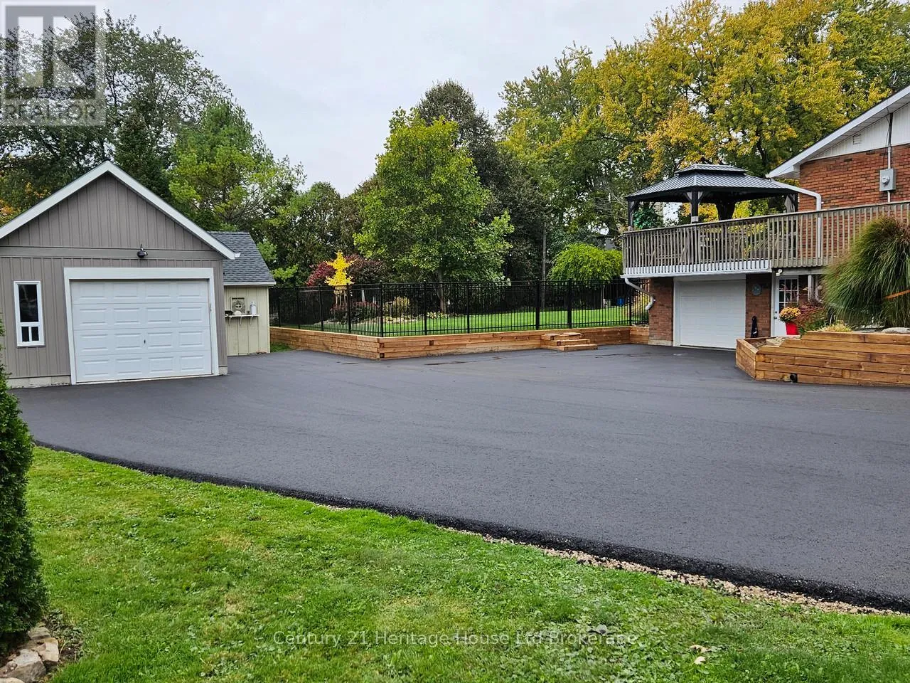 Cross Streets: Aldergrange Ave. ** Directions: From HWY 2 Woodstock, travel North on CTY Rd 4 to Innerkip, just past gas station turn right on Young St and left on Queen St, property on left hand side. This well-kept bungalow on a half-acre landscaped lot in the village of Innerkip offers great opportunities for a young family to grow or someone just looking for privacy and space. The main floor features open an concept Living Room/ Dining Room with bright windows and a gas fireplace. The remodelled kitchen offers lots of cupboard and countertop space with a nice breakfast bar. Rounding out the main floor are 3 bedrooms with the Principal Bedroom having a cheater door to the 4-piece bath and main floor laundry. The basement offers a newly-created Family Room with gas fireplace and cozy spaces for watching TV and having conversation. The additional Sitting Room and 3=piece bath finish off this floor. The basement walks out to the 1.5 oversized garage with built-in workbench. This half-acre lot is professionally landscaped and fenced, has an additional garage with upstairs storage, a garden shed and a massive deck over the garage for outdoor entertaining around the propane firepit. Located in the quiet, family-friendly village of Innerkip, children can walk to school and the active park. It's just minutes from the 401 for easy commutes and the town has a gas station/variety store (LCBO), Tim Hortons and pharmacy. (id:27476)