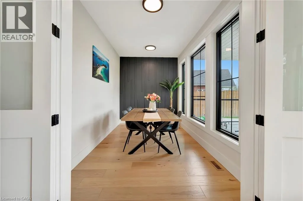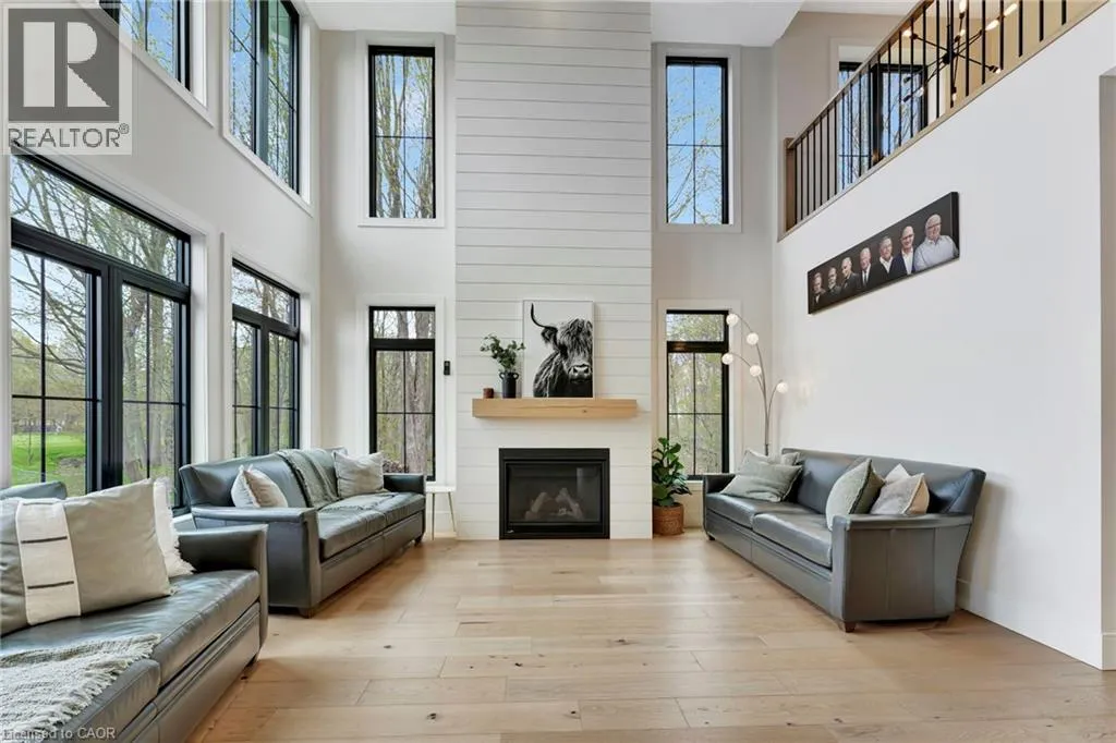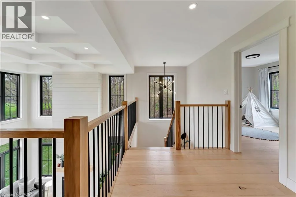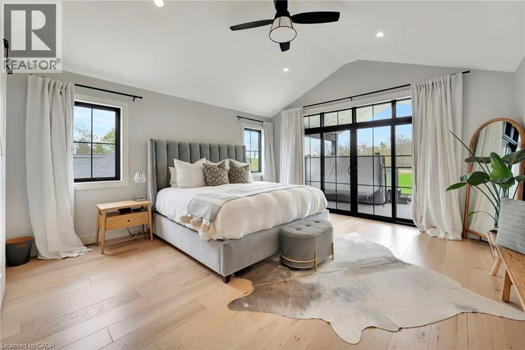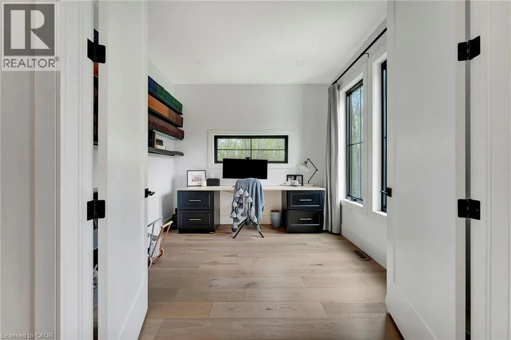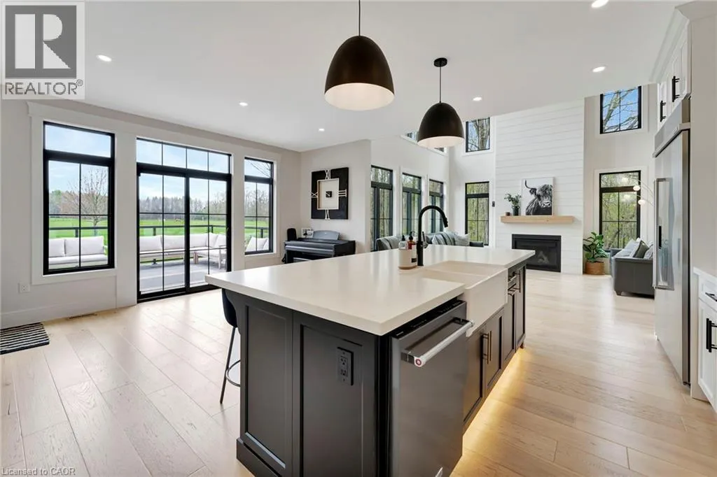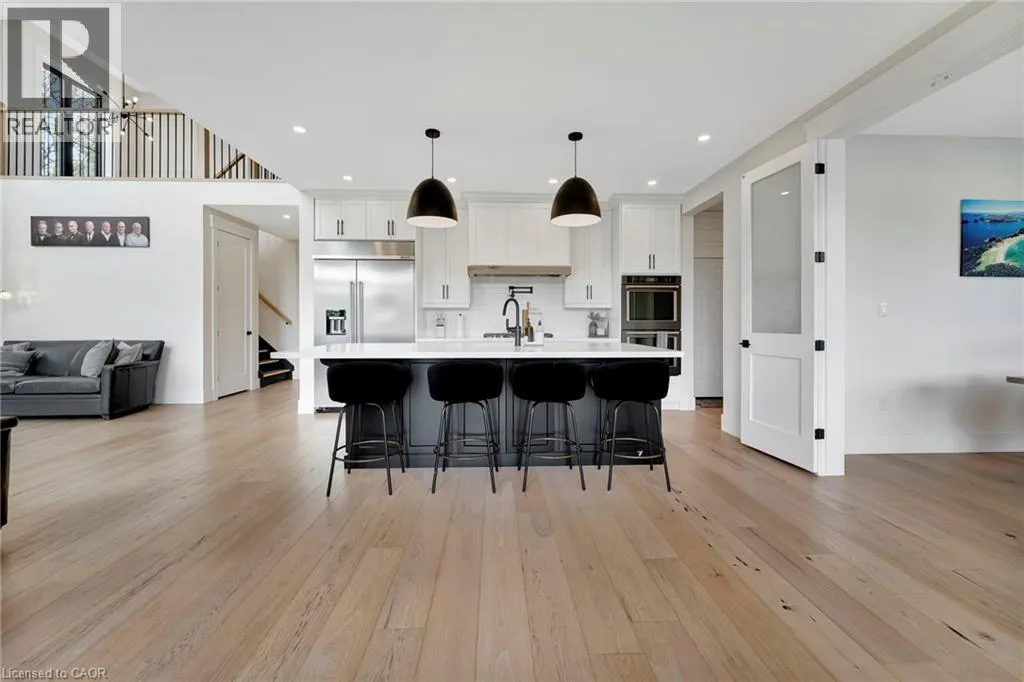 ON PLANK ROAD EAST OF EDEN ON SOUTH SIDE This stunning custom-built home blends modern elegance with practical living, offering high-end finishes and generous space inside and out. From the moment you enter the bright, welcoming foyer, you're greeted by an oversized walk-in closet that doubles as a mudroomâperfect for keeping everything organized. Just off the entryway, a spacious home office offers an ideal work-from-home setup, complete with ample lighting and wiring for a multi-camera security system. The main floor boasts an airy open-concept layout with vaulted ceilings and striking cathedral windows that flood the living room with natural light. A propane fireplace adds warmth and charm, creating a perfect space for both relaxing and entertaining. At the heart of the home is a chef-inspired kitchen featuring a massive quartz island that serves as a prep area and social hub. High-end appliances include a five-burner gas cooktop, double wall ovens, a stainless steel refrigerator, and a matching dishwasher. Thoughtful details like a pot filler, soft-close cabinetry, custom lighting, and a separate canning/prep room enhance both style and function. The adjoining dining area overlooks the private backyard and tranquil ravine, offering a beautiful setting for everyday meals and special gatherings. Upstairs, youâll find three spacious bedrooms, a full bathroom, and a convenient laundry room. The luxurious primary suite features a walk-out balcony with peaceful views of a nearby horse paddock and hot tubâperfect for quiet mornings or evenings. The spa-like ensuite includes a deep soaker tub, double rainfall shower, and large walk-in closet for a true retreat experience. The fully finished basement offers even more living space, with a large family room, fourth bedroom, and full bathroomâideal for guests or extended family. Additional highlights include heated garage floors, premium finishes throughout, and a serene, natural setting that offers privacy and beauty. (id:27476)