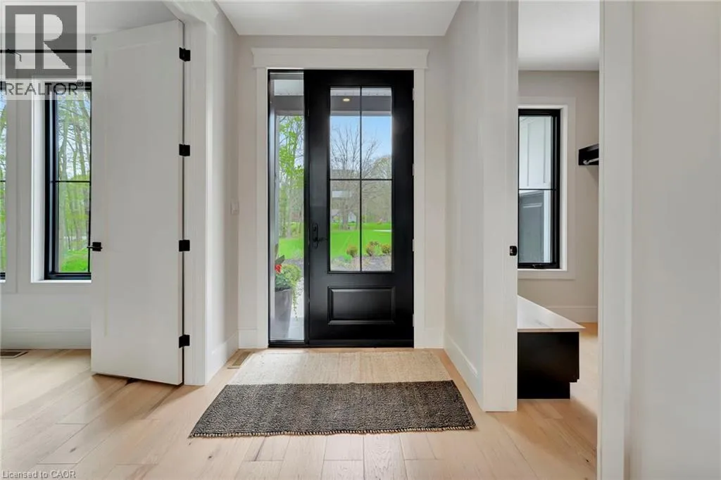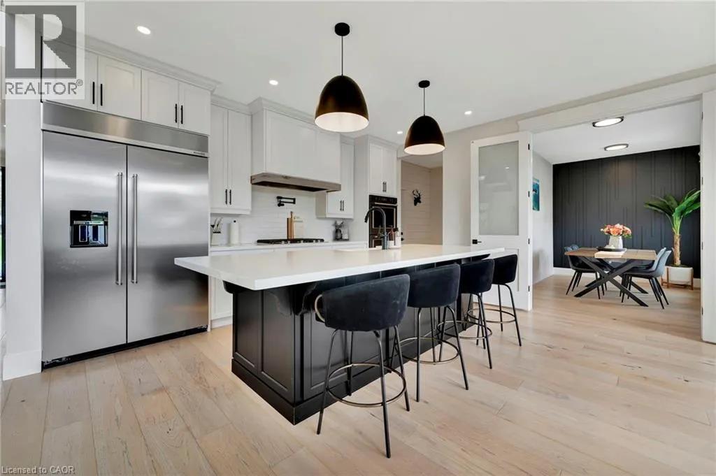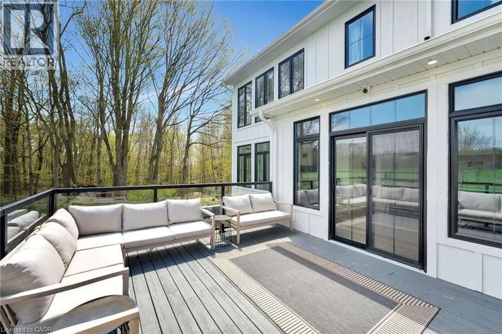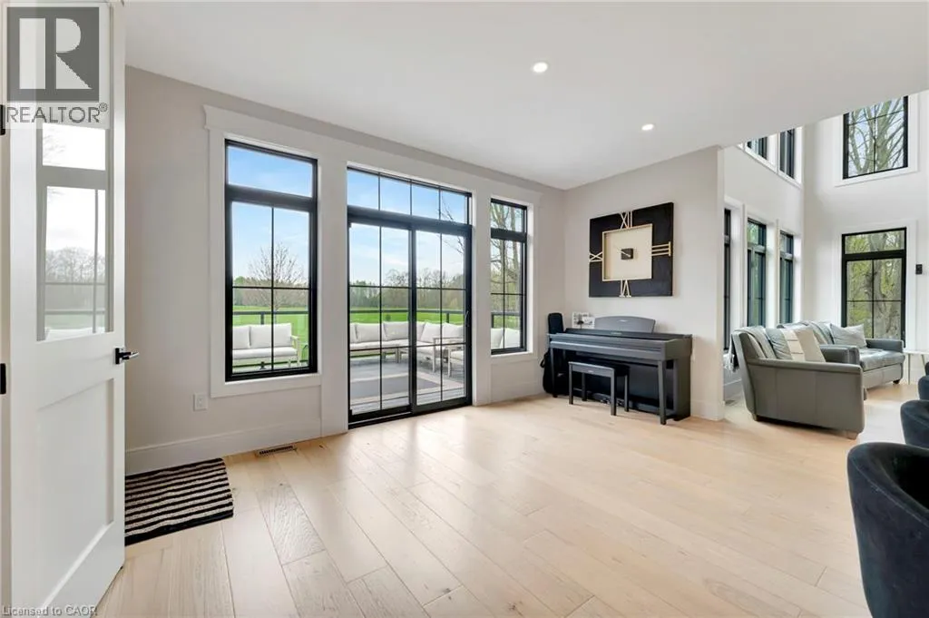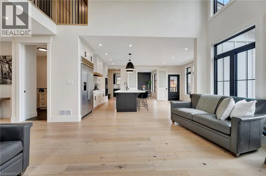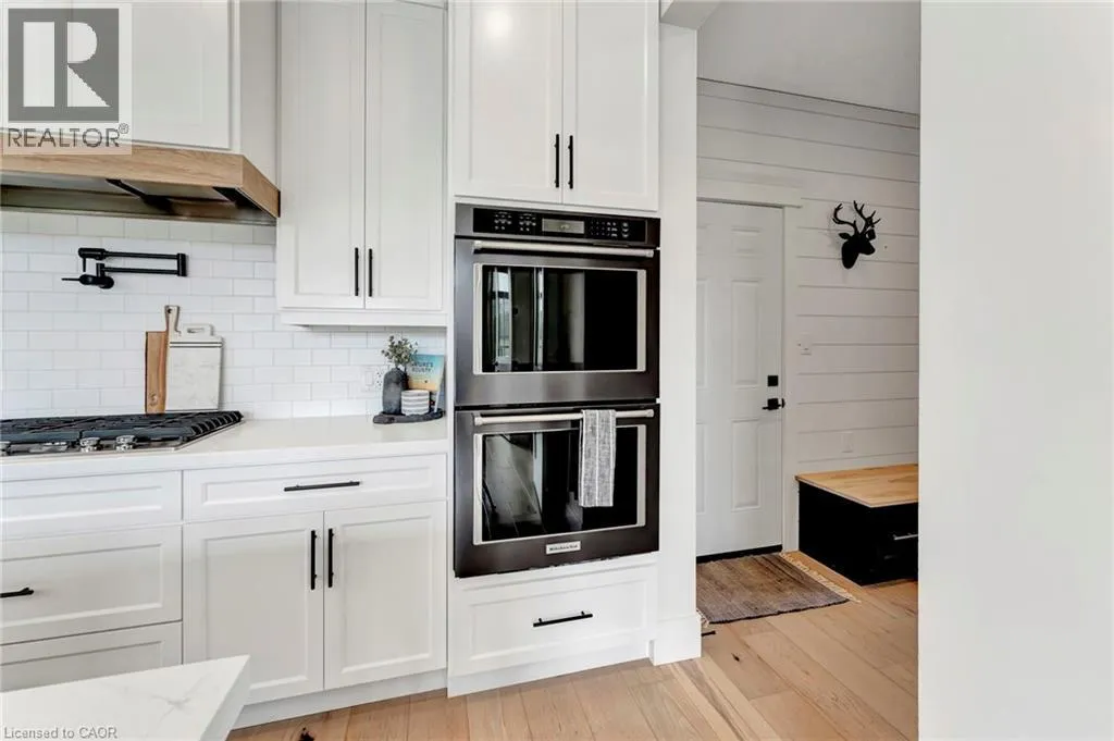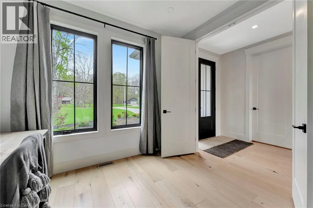ON PLANK ROAD EAST OF EDEN ON SOUTH SIDE This stunning custom-built home blends modern elegance with practical living, offering high-end finishes and generous space inside and out. From the moment you enter the bright, welcoming foyer, you're greeted by an oversized walk-in closet that doubles as a mudroomâperfect for keeping everything organized. Just off the entryway, a spacious home office offers an ideal work-from-home setup, complete with ample lighting and wiring for a multi-camera security system. The main floor boasts an airy open-concept layout with vaulted ceilings and striking cathedral windows that flood the living room with natural light. A propane fireplace adds warmth and charm, creating a perfect space for both relaxing and entertaining. At the heart of the home is a chef-inspired kitchen featuring a massive quartz island that serves as a prep area and social hub. High-end appliances include a five-burner gas cooktop, double wall ovens, a stainless steel refrigerator, and a matching dishwasher. Thoughtful details like a pot filler, soft-close cabinetry, custom lighting, and a separate canning/prep room enhance both style and function. The adjoining dining area overlooks the private backyard and tranquil ravine, offering a beautiful setting for everyday meals and special gatherings. Upstairs, youâll find three spacious bedrooms, a full bathroom, and a convenient laundry room. The luxurious primary suite features a walk-out balcony with peaceful views of a nearby horse paddock and hot tubâperfect for quiet mornings or evenings. The spa-like ensuite includes a deep soaker tub, double rainfall shower, and large walk-in closet for a true retreat experience. The fully finished basement offers even more living space, with a large family room, fourth bedroom, and full bathroomâideal for guests or extended family. Additional highlights include heated garage floors, premium finishes throughout, and a serene, natural setting that offers privacy and beauty. (id:27476)