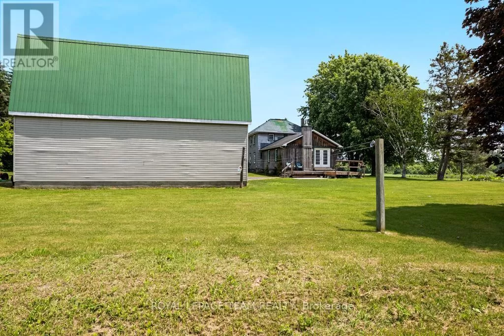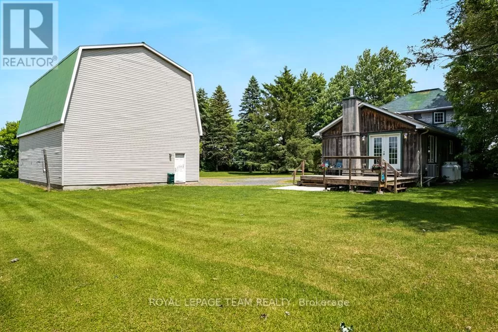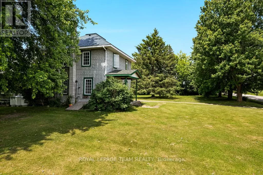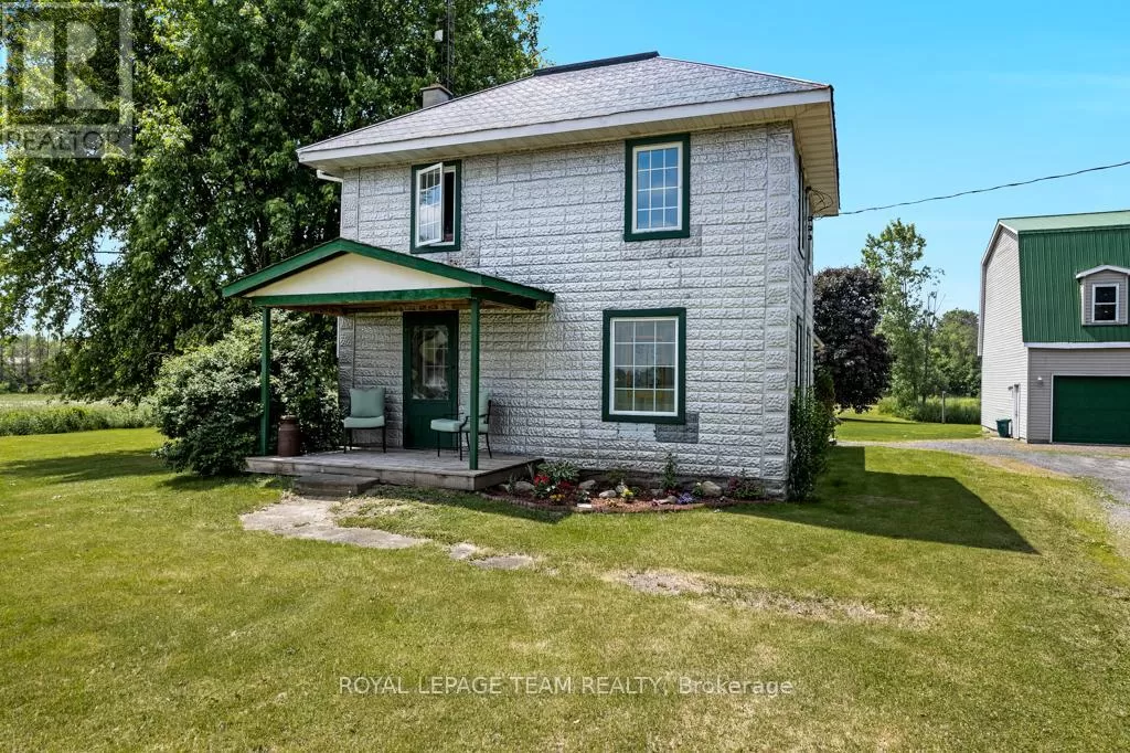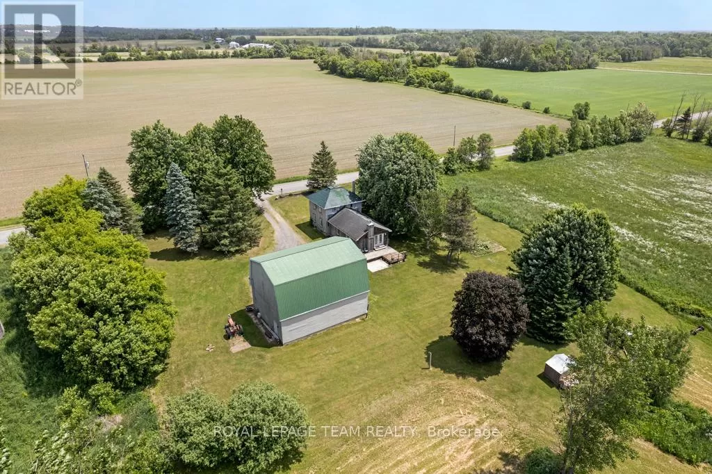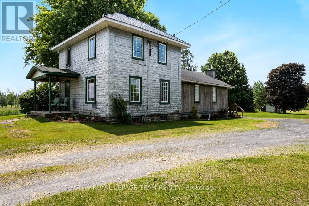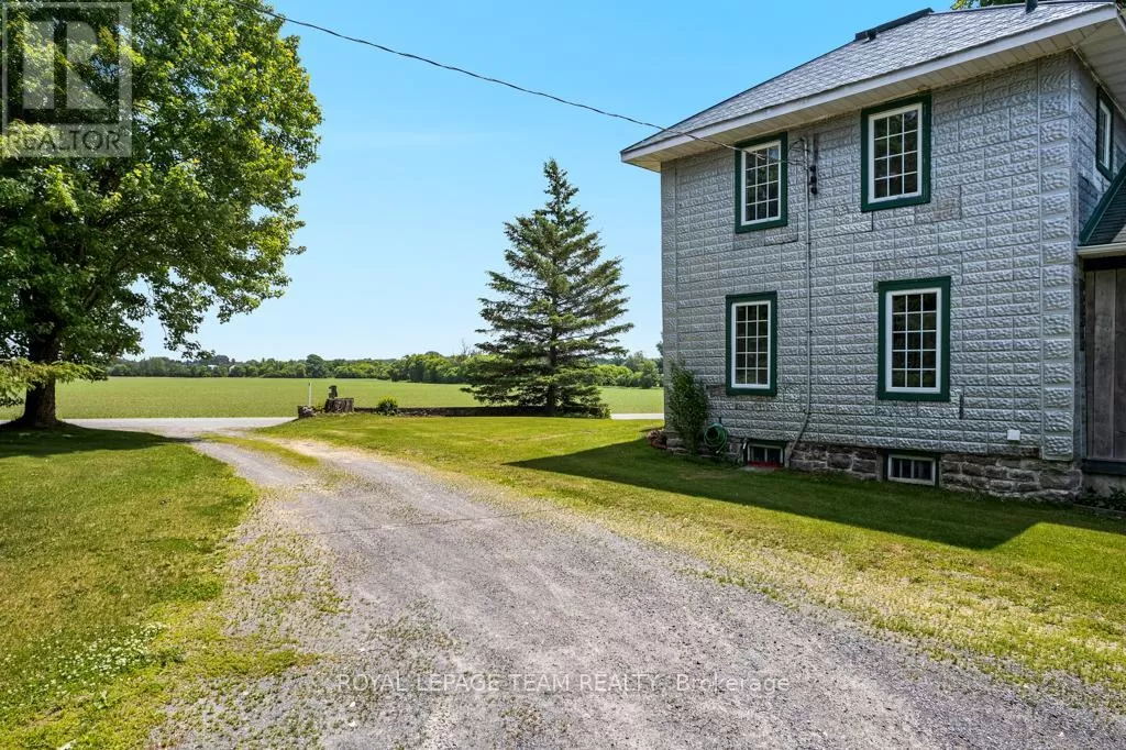 Cross Streets: Hurley and Goodin. ** Directions: From 416 - take CR21 exit - Spencerville and head west from the off ramp to CR21. Turn right onto 44 and follow to CR21 - turn left and follow to Hurley Road. Right onto Hurley, follow to 6116 watch for sign. Nestled on over 4 picturesque acres just outside the charming village of Spencerville, this beautifully updated 2-storey farmhouse blends rustic charm with modern convenience. Located on a quiet, paved country road, this 3-bedroom, 1-bathroom home offers peace, space, and functionality. Step into the spacious addition featuring engineered hardwood flooring and an open-concept kitchen and dining area. The kitchen boasts a large breakfast bar that seats five, warm oak cabinetry, a custom range hood, tile flooring, and abundant counter and cabinet space. The addition also includes access to a full basement with hardwood stairs leading to a cozy rec room, additional bedroom with a large closet, utility room, and updated mechanicals including a water softener (2022), hot water tank (2019), and modern wiring/plumbing. The original home exudes character with hardwood floors, 2011 windows, a formal living room, and a den that overlooks scenic farmers fields. A rustic curved staircase leads upstairs to three generously sized bedrooms and a full 4-piece bath. Enjoy the convenience of main floor laundry and walk out onto a huge back deck complete with a hot tub pad perfect for entertaining or relaxing in nature. A standout feature is the massive 2-storey, 3-bay steel-framed garage/shop with cement floors. The upper level is fully framed and wired for future living space, with dormer windows and a separate entrance ideal for an in-law suite, rental, or studio. Lovely perennial gardens and expansive lawns provide plenty of room for kids and pets to roam. An additional 5-acre parcel is available next door for those seeking even more space. Just minutes to Hwy 416/401 for easy commuting, and a short walk to the Spencerville Fairgrounds, this property offers the best of rural living in a vibrant, growing community. Don't miss this rare opportunity! (id:27476)