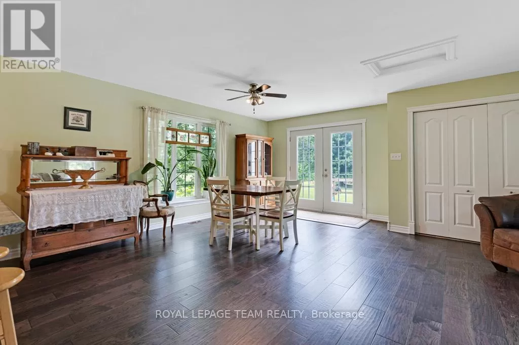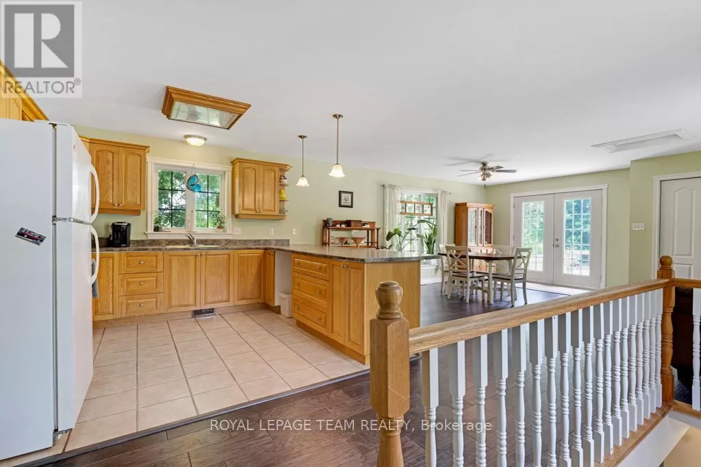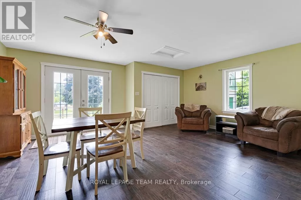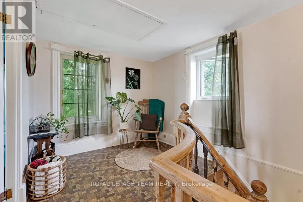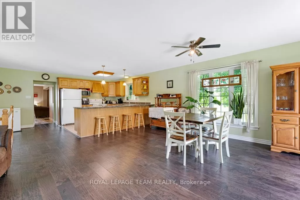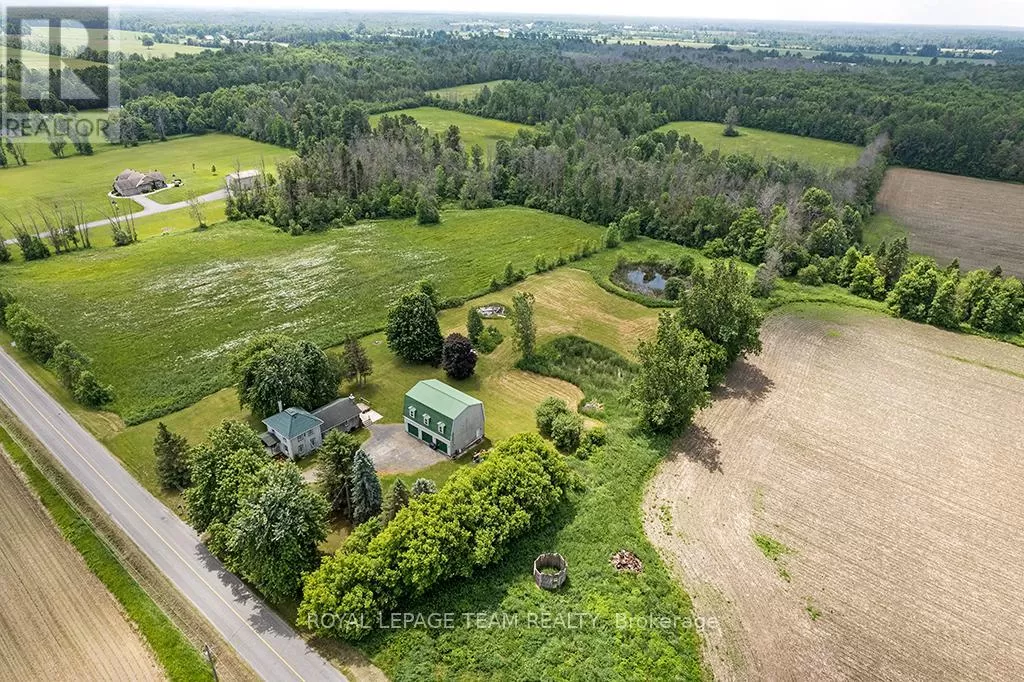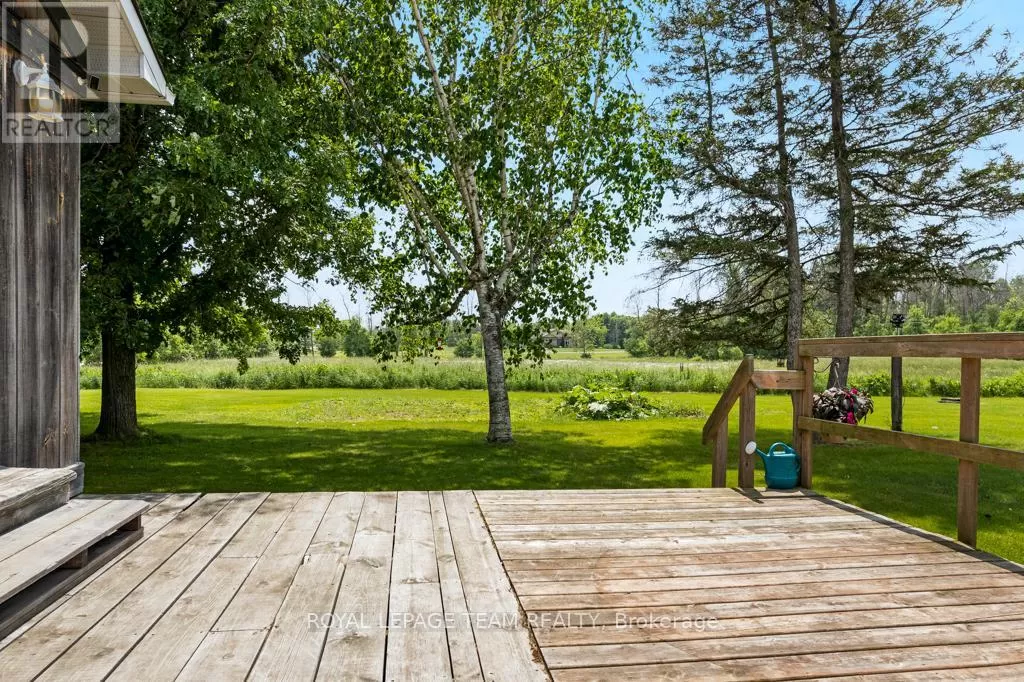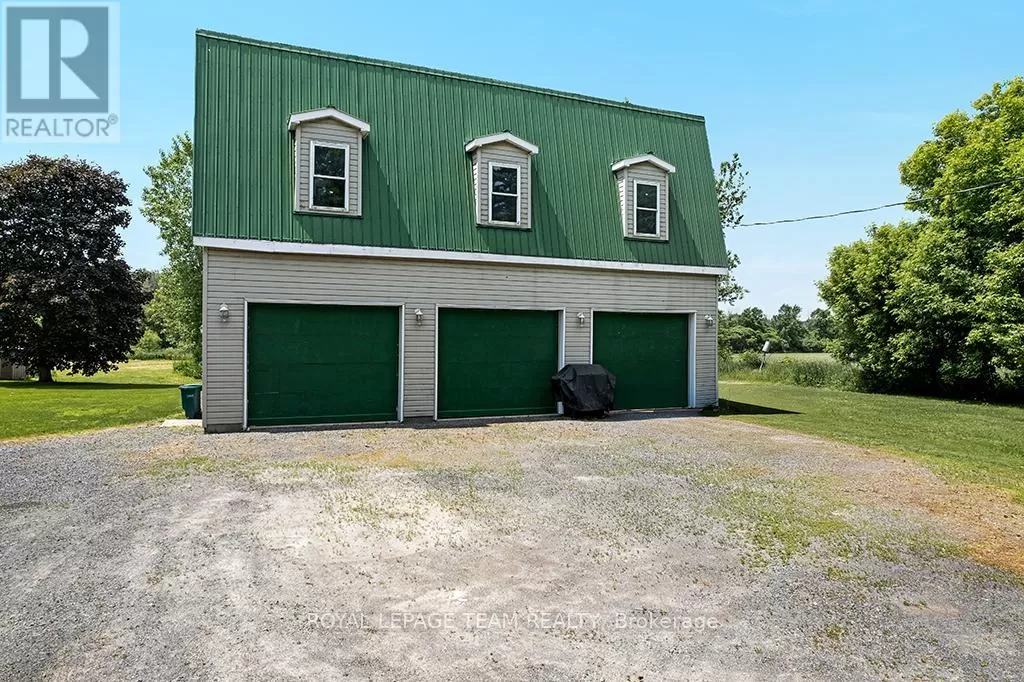 Cross Streets: Hurley and Goodin. ** Directions: From 416 - take CR21 exit - Spencerville and head west from the off ramp to CR21. Turn right onto 44 and follow to CR21 - turn left and follow to Hurley Road. Right onto Hurley, follow to 6116 watch for sign. Nestled on over 4 picturesque acres just outside the charming village of Spencerville, this beautifully updated 2-storey farmhouse blends rustic charm with modern convenience. Located on a quiet, paved country road, this 3-bedroom, 1-bathroom home offers peace, space, and functionality. Step into the spacious addition featuring engineered hardwood flooring and an open-concept kitchen and dining area. The kitchen boasts a large breakfast bar that seats five, warm oak cabinetry, a custom range hood, tile flooring, and abundant counter and cabinet space. The addition also includes access to a full basement with hardwood stairs leading to a cozy rec room, additional bedroom with a large closet, utility room, and updated mechanicals including a water softener (2022), hot water tank (2019), and modern wiring/plumbing. The original home exudes character with hardwood floors, 2011 windows, a formal living room, and a den that overlooks scenic farmers fields. A rustic curved staircase leads upstairs to three generously sized bedrooms and a full 4-piece bath. Enjoy the convenience of main floor laundry and walk out onto a huge back deck complete with a hot tub pad perfect for entertaining or relaxing in nature. A standout feature is the massive 2-storey, 3-bay steel-framed garage/shop with cement floors. The upper level is fully framed and wired for future living space, with dormer windows and a separate entrance ideal for an in-law suite, rental, or studio. Lovely perennial gardens and expansive lawns provide plenty of room for kids and pets to roam. An additional 5-acre parcel is available next door for those seeking even more space. Just minutes to Hwy 416/401 for easy commuting, and a short walk to the Spencerville Fairgrounds, this property offers the best of rural living in a vibrant, growing community. Don't miss this rare opportunity! (id:27476)