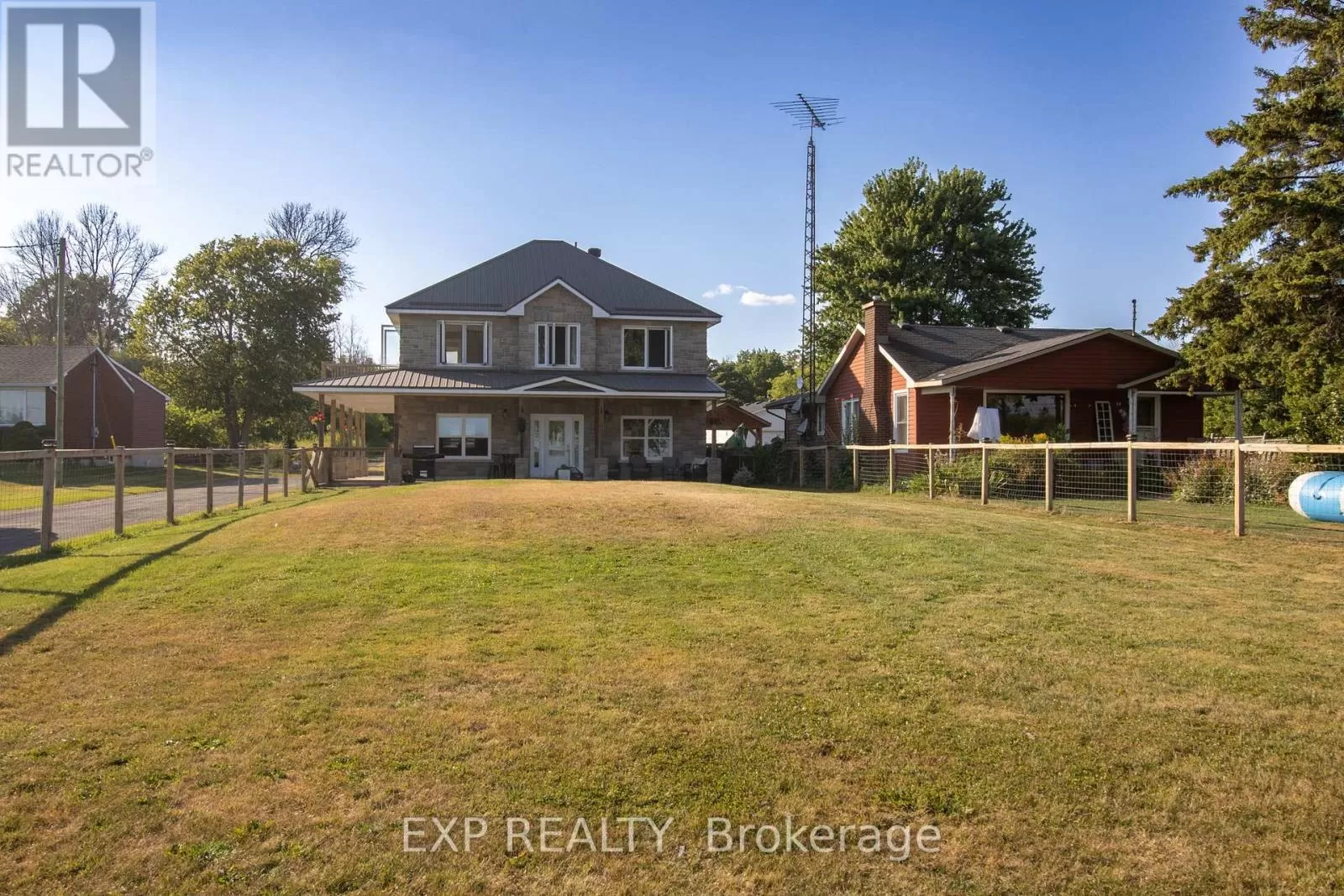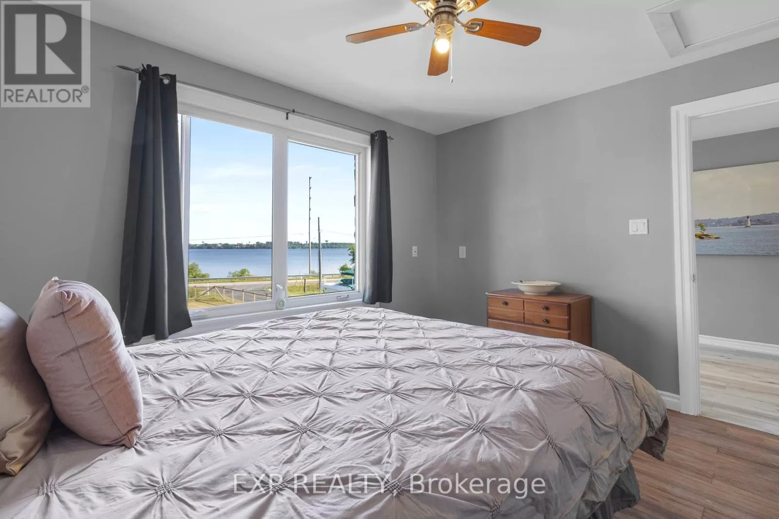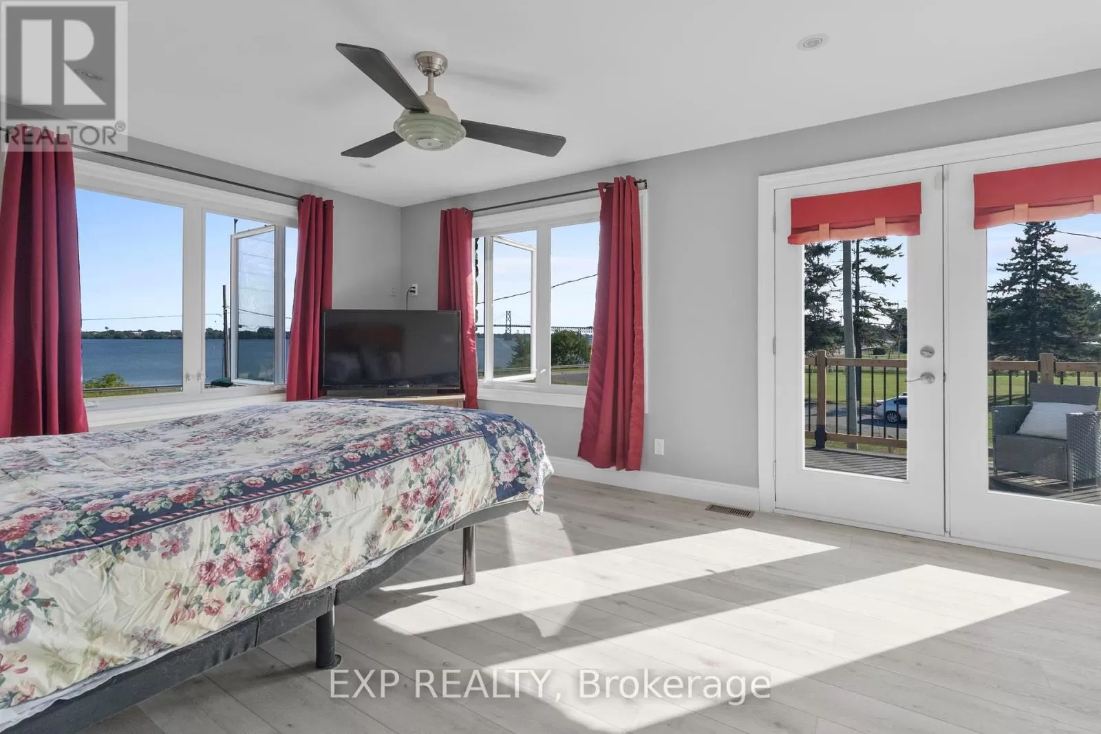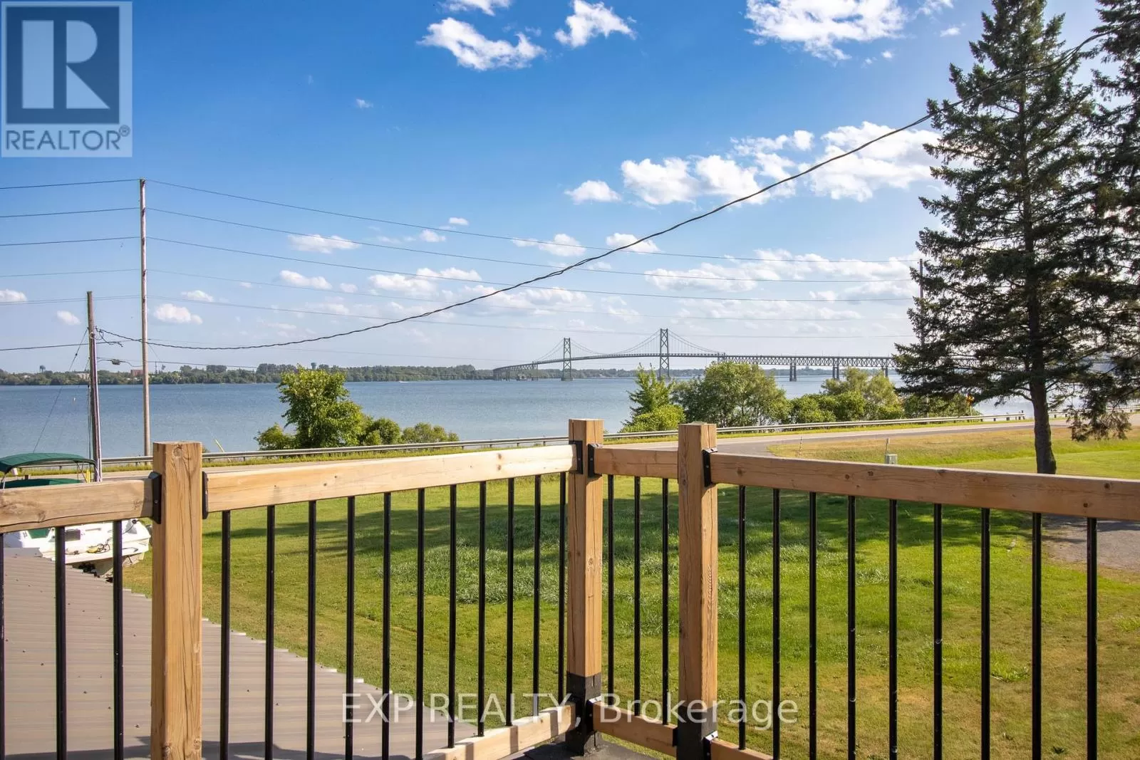Cross Streets: 416. ** Directions: East of the 416 entrance and the 1000's bridge. Only 40-minute commute to Ottawa! Wake up to breathtaking views of the St. Lawrence River and Johnstown Bridge from this thoughtfully designed 3+ bedroom home, built in 2011. From the spacious front yard and wrap-around verandah to the master bedroom balcony, every angle takes full advantage of its stunning setting. Sitting on 1.4 acres, the property offers plenty of space behind the home for parking or storage, plus a two-car over-sized and heated attached garage with inside entry. The main floor features a bright, open-concept family room, dining area, and kitchen with island, abundant cabinetry, and, most importantly, river-facing windows. Also on the main level is a large bathroom/laundry combination and multiple walk-outs to the verandah. Comfort and efficiency meet here, thanks to a geothermal ground-source heat pump with two wells, delivering warm or cool air through the home's ductwork just like a traditional furnace. There is also a Generator panel for added protection. (id:27476)