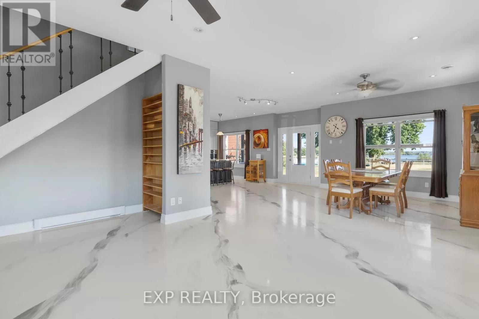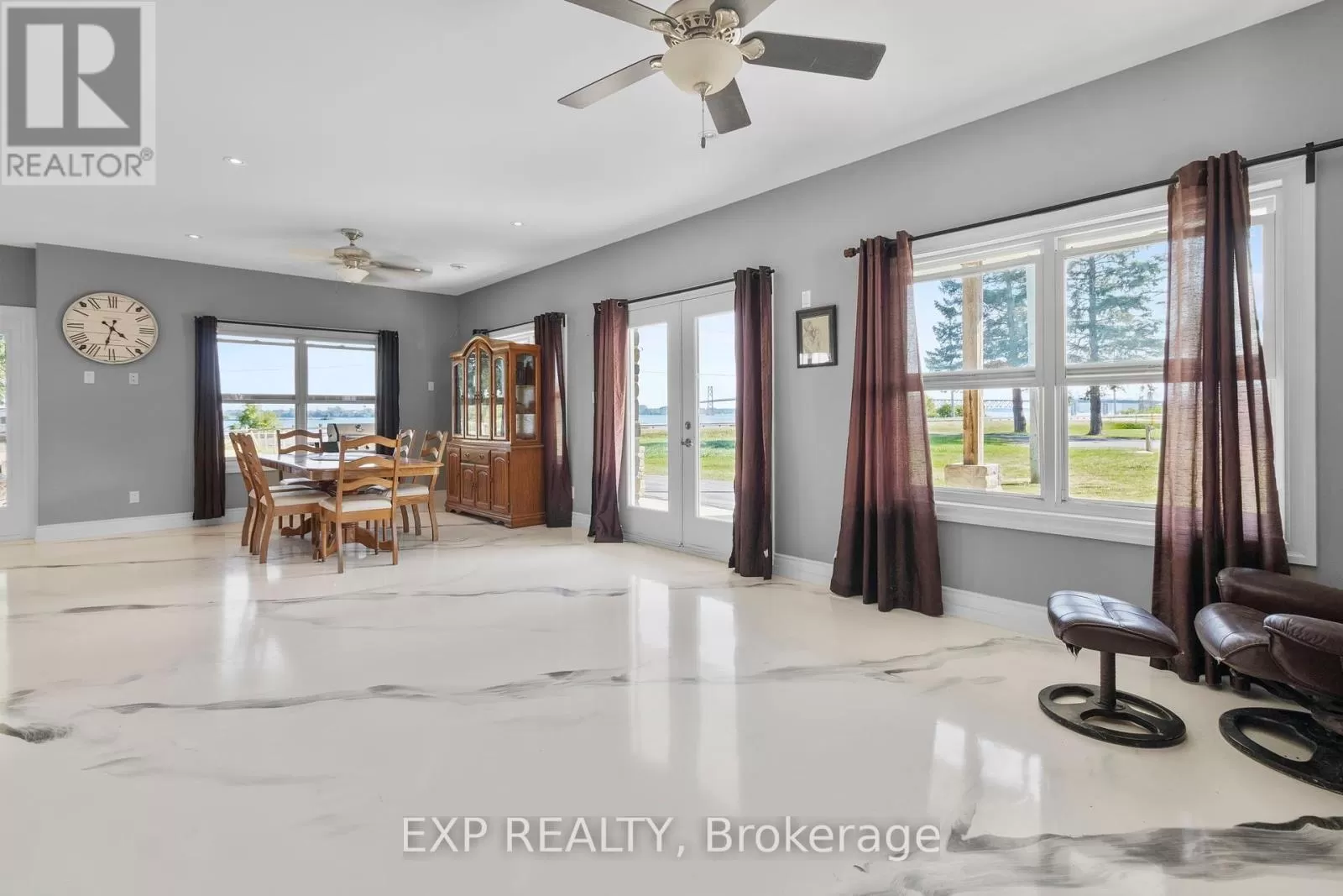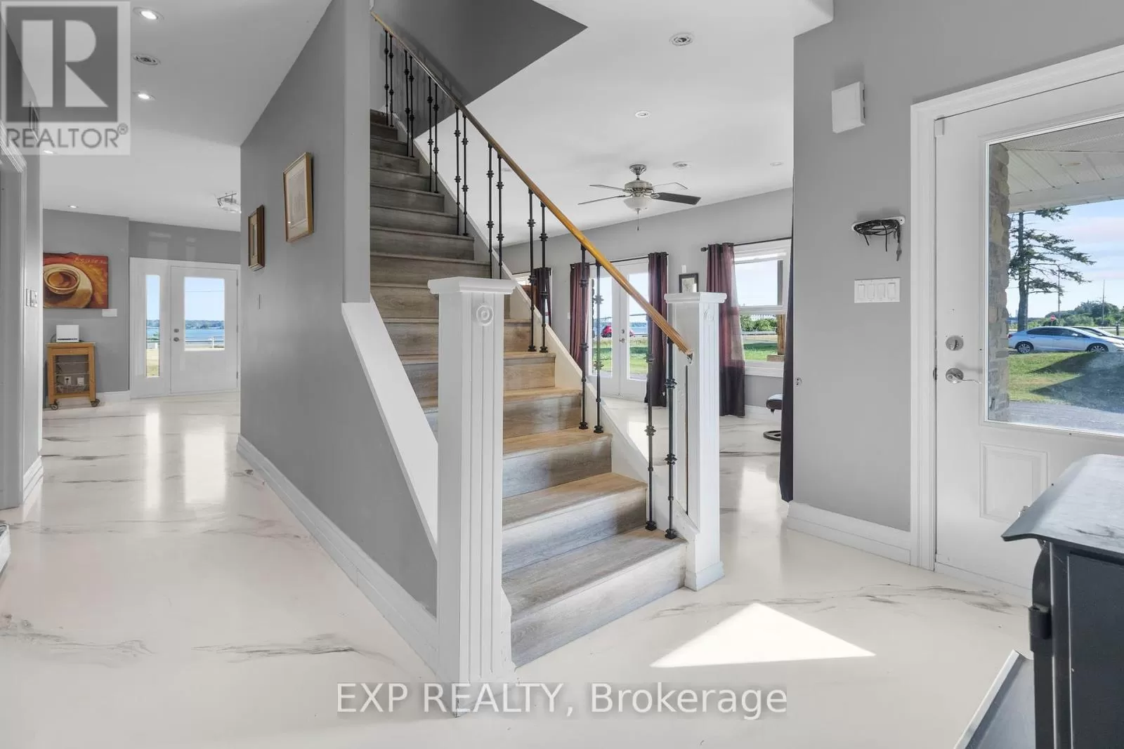 Cross Streets: 416. ** Directions: East of the 416 entrance and the 1000's bridge. Only 40-minute commute to Ottawa! Wake up to breathtaking views of the St. Lawrence River and Johnstown Bridge from this thoughtfully designed 3+ bedroom home, built in 2011. From the spacious front yard and wrap-around verandah to the master bedroom balcony, every angle takes full advantage of its stunning setting. Sitting on 1.4 acres, the property offers plenty of space behind the home for parking or storage, plus a two-car over-sized and heated attached garage with inside entry. The main floor features a bright, open-concept family room, dining area, and kitchen with island, abundant cabinetry, and, most importantly, river-facing windows. Also on the main level is a large bathroom/laundry combination and multiple walk-outs to the verandah. Comfort and efficiency meet here, thanks to a geothermal ground-source heat pump with two wells, delivering warm or cool air through the home's ductwork just like a traditional furnace. There is also a Generator panel for added protection. (id:27476)