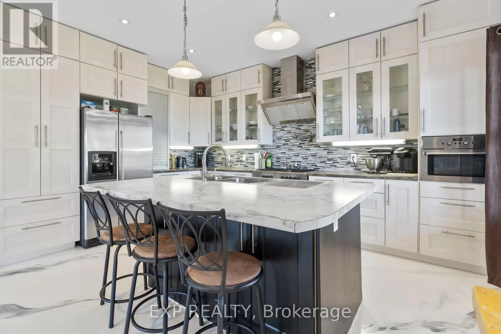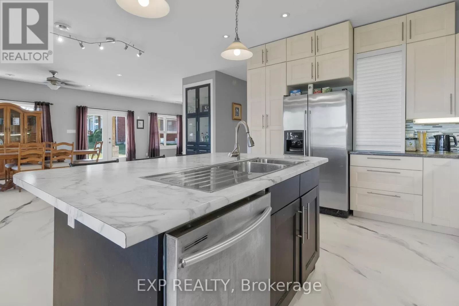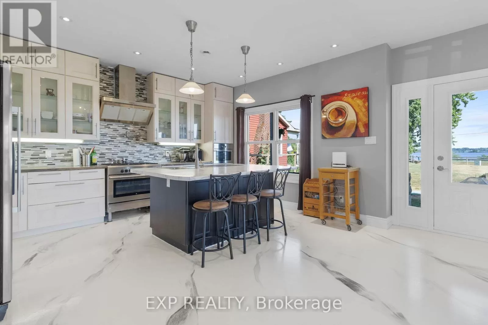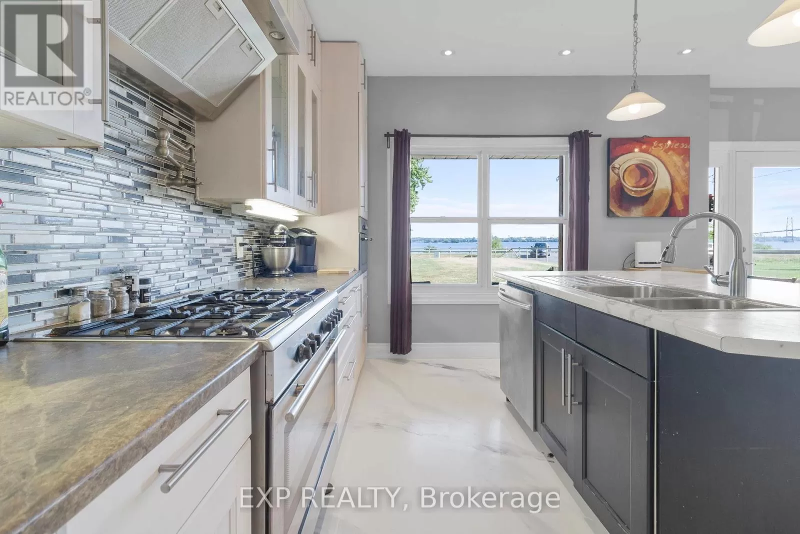 Cross Streets: 416. ** Directions: East of the 416 entrance and the 1000's bridge. Only 40-minute commute to Ottawa! Wake up to breathtaking views of the St. Lawrence River and Johnstown Bridge from this thoughtfully designed 3+ bedroom home, built in 2011. From the spacious front yard and wrap-around verandah to the master bedroom balcony, every angle takes full advantage of its stunning setting. Sitting on 1.4 acres, the property offers plenty of space behind the home for parking or storage, plus a two-car over-sized and heated attached garage with inside entry. The main floor features a bright, open-concept family room, dining area, and kitchen with island, abundant cabinetry, and, most importantly, river-facing windows. Also on the main level is a large bathroom/laundry combination and multiple walk-outs to the verandah. Comfort and efficiency meet here, thanks to a geothermal ground-source heat pump with two wells, delivering warm or cool air through the home's ductwork just like a traditional furnace. There is also a Generator panel for added protection. (id:27476)