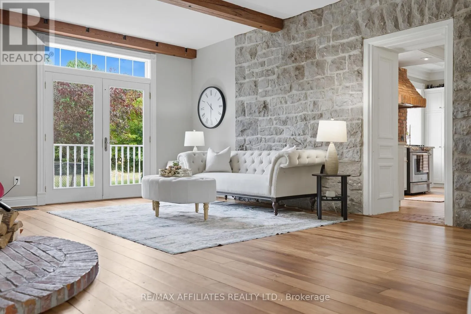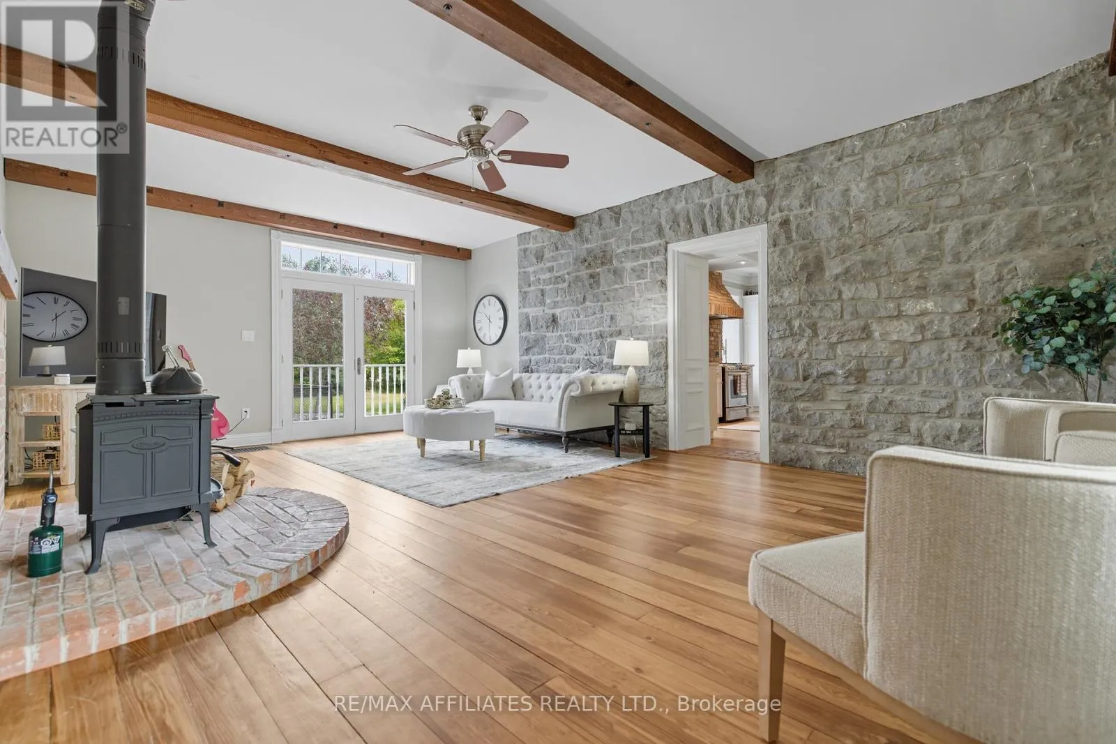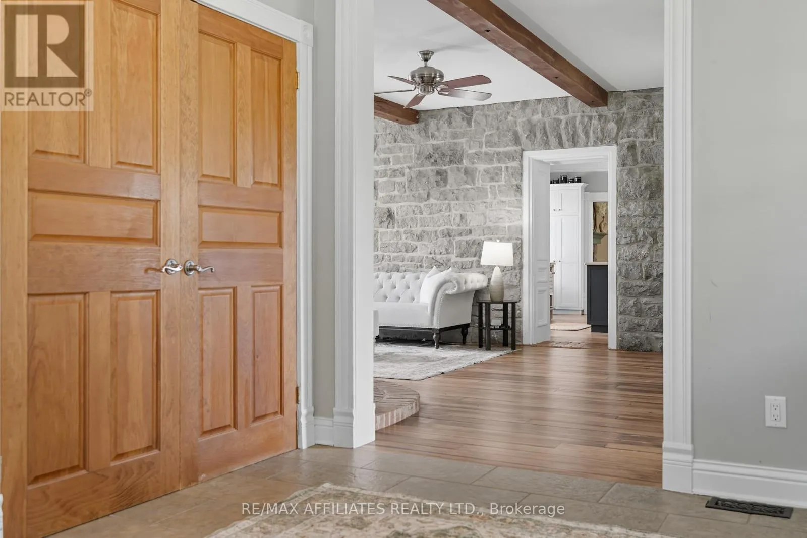 Cross Streets: Connell Rd & County Rd 21. ** Directions: From HWY 416 - Take County Rd 21. Continue East onto County Rd 21 turn left onto Connell Rd. house is on the right hand side. The journey begins the moment you turn down the tree-lined drive, where towering maples guide you toward the unforgettable Connell Residence. Set on 3.5 acres of scenic countryside just minutes from Spencerville, this breathtaking 5-bedroom + office/den and 3-bath stone home that balances heritage character with modern comfort. The wraparound verandahs, perennial hydrangea gardens, and views of rolling farmland set the tone for a property that feels timeless and inviting. Inside, refinished original hardwood floors (2025) and large windows bring warmth and natural light throughout. The foyer and mudroom offer plenty of practical storage, while the family room with exposed stone wall and woodstove (WETT Certified 2024) creates a cozy retreat with direct access to the backyard. A formal dining room anchored by a stone propane fireplace provides an elegant setting for gatherings, and the spacious kitchenwith brick accents, a copper sink, and a generous island becomes the natural hub of the home, flowing seamlessly onto the covered verandah. Upstairs, the primary suite is a true retreat with a sitting area, large closet, and private 3-piece ensuite. Three additional bedrooms plus an office or den share an updated 4-piece bath with a claw foot soaker tub and walk-in shower. The finished lower level extends the living space with a recreation room, a fifth bedroom, and ample storage. Outdoors, the property delivers resort-like living with meandering pathways, lush lawns, an inground pool with interlock patio and pool house, plus a two-level heritage barn and detached 2-car garage. Blending history, comfort, and opportunity, The Connell Residence is more than a home its a lifestyle. From hosting weddings and special events to creating a sought-after Airbnb retreat or enjoying a forever family estate, the possibilities are endless. Minutes from 416 HWY - 35 Min to the City of Ottawa. (id:27476)