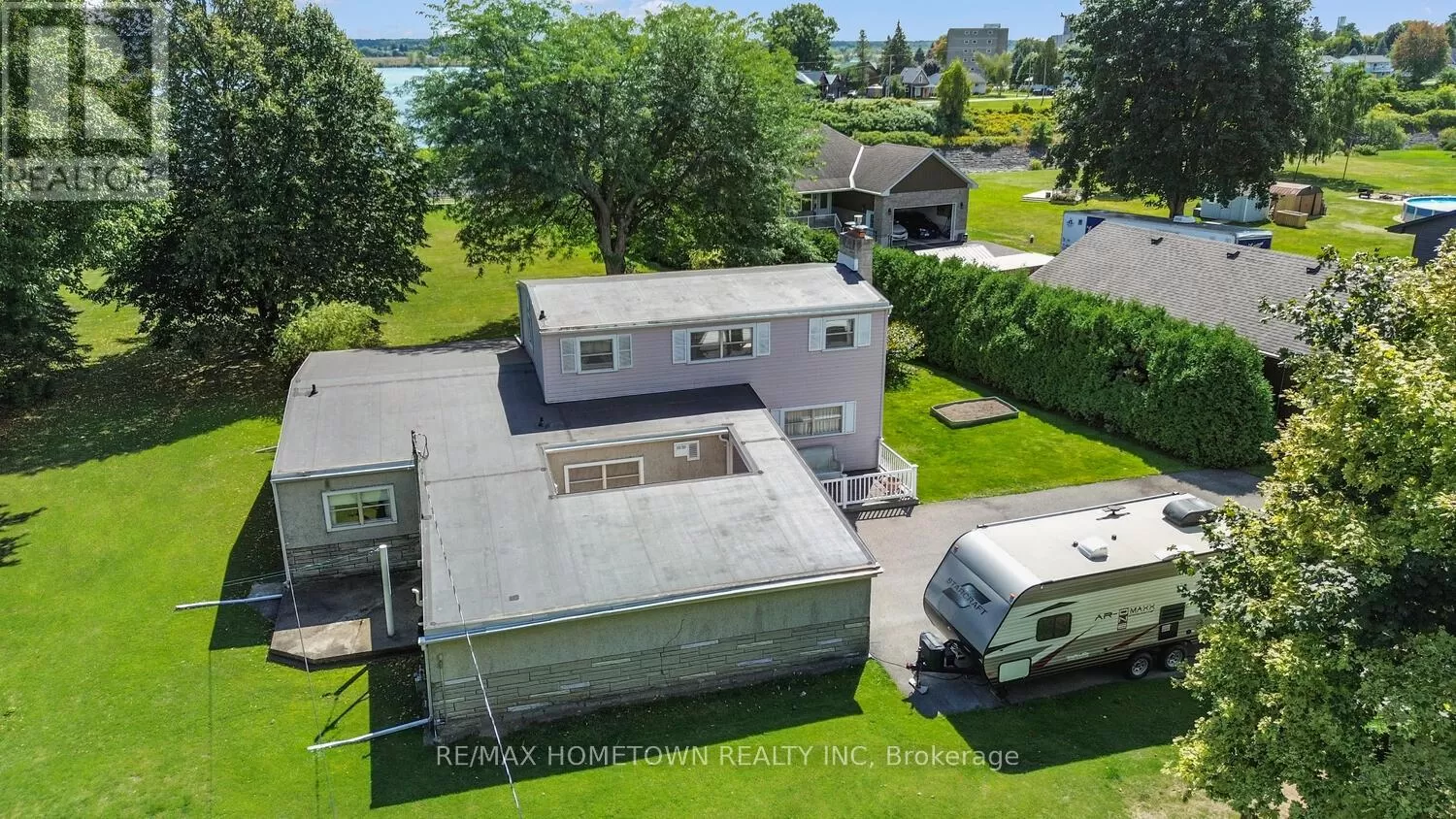 Cross Streets: County Rd 2 and Flett St. ** Directions: If coming from the 401, you will turn onto Shanly Road and head South towards Cardinal. Once at the stop sign, you will turn left(East) and continue on County Rd 2 for about 3 minutes. House is located on the right hand side (River side) to #401. Pool in photos is virtually staged. Riverfront Home with Endless Potential - Privacy, Space & Water Access-Have you dreamed of owning a home on the river but thought it was out of reach? Don't miss this rare opportunity, act now before its gone! This spacious home sits on a large private lot with direct water access, a dock, and stunning river views. Unlike most waterfront properties, its connected to city water, sewer, and natural gas, a rare find! The long driveway and mature trees offer seclusion, while the generous front lawn provides enough space for an inground pool, cabana, or more. Inside, the home offers flexible living options perfect for single-level living, extended family, or a multi-generational setup. With a little vision, it could easily be converted into two separate living spaces or even developed further, there's potential to divide into additional lots or create a family resort. Main Level Features: Welcoming foyer leading to a bright living room with a cozy gas fireplace. Separate dining room with access to the kitchen. Possible in-law suite with a large primary bedroom, 4-pc bath, and sunny family room. Upstairs: Two oversized bedrooms, one with a walk-in closet. A full 3-pc bathroom. Additional Highlights: Attached garage connected through a closed-in breezeway (ideal mudroom and sun shelter)Expansive lawn with panoramic water views. Easy access to the St. Lawrence River via the old canal, perfect for boating and fishing. This property is brimming with potential for the right buyer. Whether you're looking for a private retreat, a multi-family setup, or a long-term investment, you wont find another lot this size, on the river, at this price! Affordable living with water, sewer and electricity average of 152.00 a month, Gas 156.00 a month. (id:27476)