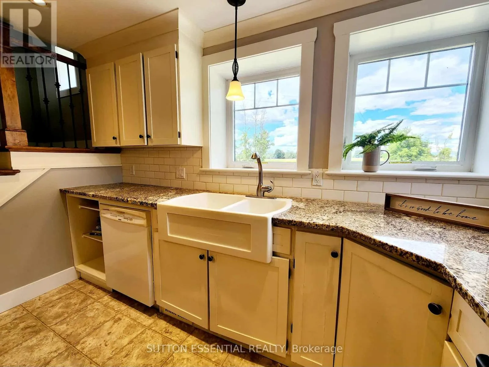 Cross Streets: County Road 18 and Weir Road. ** Directions: Head north on County Road 18, right onto Weir Road. Country roads, take me home - to a place west of Spencerville! Set comfortably back from the road on 3.84 acres, this home comes complete with two outbuildings (47ft x19ft and 33ft x58ft) that could be utilized for many visions. Previously used for horses, there are still three stalls in one, but could easily be turned into a workshop, huge detached garage, art studio - you won't lack storage space that's for sure! Enjoy the outdoors on either the front verandah or back deck - or head inside to find a beautifully open main level. The living room features exposed brick and beam walls, adding a gorgeous element for anyone looking to decorate in a country home. The kitchen has been updated with centre island, granite counter tops, double bowl apron sink - and picture the herbs that can be grown on the deep set window sills, perfect for the chef! Three bedrooms, two full bathrooms, main floor laundry - those are key, but just as important - metal roof, main house has been completely insulated with spray foam including the attic, main staircase that has been beautifully completed, new baseboard heaters, high efficiency propane furnace, new flooring in the main floor bedroom, and freshly painted throughout. Immediate occupancy is available here, so don't just look at the photos, book a showing to view in person! (id:27476)