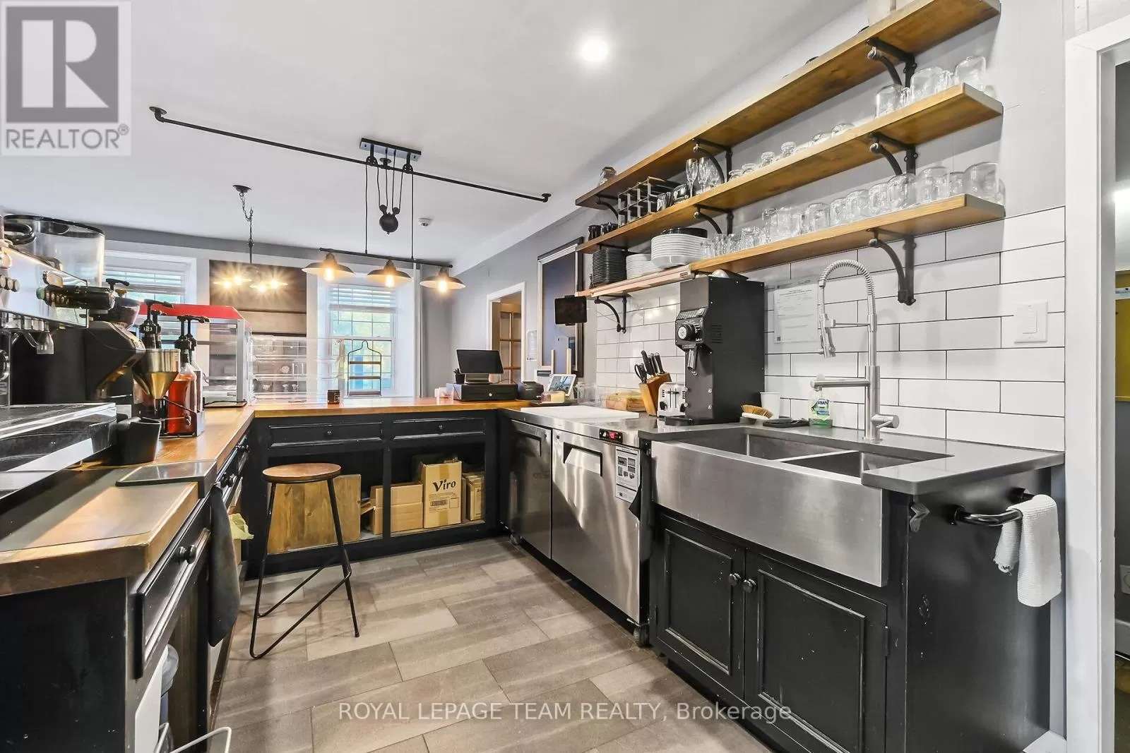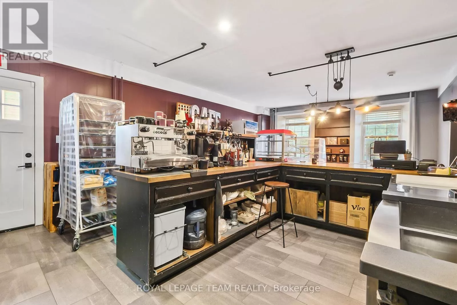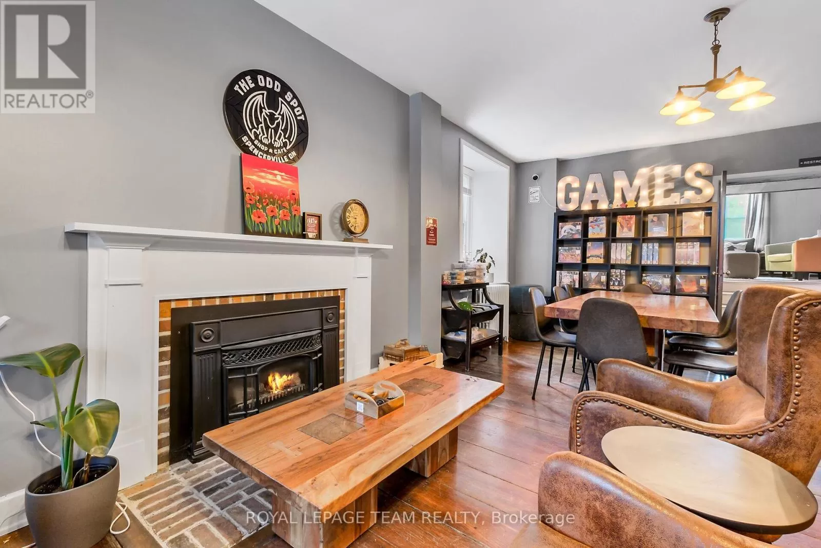 Cross Streets: Spencer and Centre. ** Directions: From Highway 416, take Exit 12 (County Rd 21) west. Follow to stop sign and turn right onto CR 44. Property located on the left side just after bridge. A standout opportunity in the heart of historic Spencerville, this iconic 1837 stone building formerly Hotel Victoria and most recently a thriving cafe-deli offers the perfect setting to launch or grow your business in a high-visibility, high-traffic location. Positioned right at the entrance of the towns main street and directly across from the only gas station between here and the 401, it captures the attention of both locals and passersby. With approximately $230,000 in recent upgrades, the main floor is turnkey and ready for your venture, featuring a spacious layout and inviting exterior terrace. Upstairs, the second level includes three generous rooms, a kitchenette, and a full bathroom ideal for staff, office space, or even a private residence above your business. With additional untapped potential in the attic and quick access to Hwy 416 and Kemptville, this unique property is ready to bring your vision to life. (id:27476)