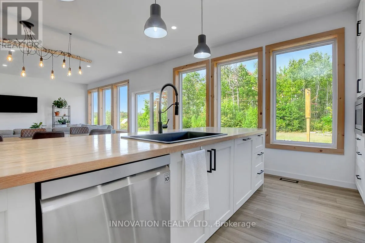 Cross Streets: Pittston and HWY 44. ** Directions: 416 to Spencerville exit, HWY 44 South, Left on Pittston Road. Discover the enchanting charm of this stunning 2023 bungalow, nestled just moments from the quaint village of Spencerville, Ontario. This inviting home blends modern conveniences with a true Scandinavian feel, creating a sanctuary for relaxation and joy. As you step inside, you're greeted by a fluid open-concept design, where sunlight dances across the spacious living area. The heart of the home, the contemporary kitchen features sleek countertops and top-of-the-line stainless steel appliances, perfect for your culinary adventures. Imagine hosting memorable family dinners in the adjoining dining space, where every meal transforms into a cherished occasion. Retreat to the luxurious primary bedroom, complete with a his and hers walk-in closet and private en-suite bathroom designed for ultimate tranquillity. Two additional bedrooms offer versatile living options, ideal for children, guests, or a stylish home office. All rooms provide interior insulation to keep the noise down while working from home or entertaining. Each bathroom reflects modern design, seamlessly blending comfort with style.The unspoiled basement, with under-slab insulation, is massive, allowing for extra bedrooms and a vast recreation area. The Garage is oversized and insulated, and the heat pump is backed up by a propane furnace. Your outdoor personal oasis, where the open landscape, framed by woods, provides a picturesque setting for outdoor gatherings. Enjoy summer afternoons in the vast yard, host barbecues, or gather around the fire pit under the stars. Conveniently located just 45 minutes from Ottawa and 1 hour from Kingston, and a brief 30-minute drive to Cornwall, this bungalow combines the serenity of country living with easy access to urban amenities. This 2023 bungalow isn't just a house; it's a lifestyle waiting to be embraced. Experience the perfect blend of comfort, style, and nature. Your dream home in Spencerville is calling! Day Prior Notice for showings. 24 Hr irrevocable on offers (id:27476)