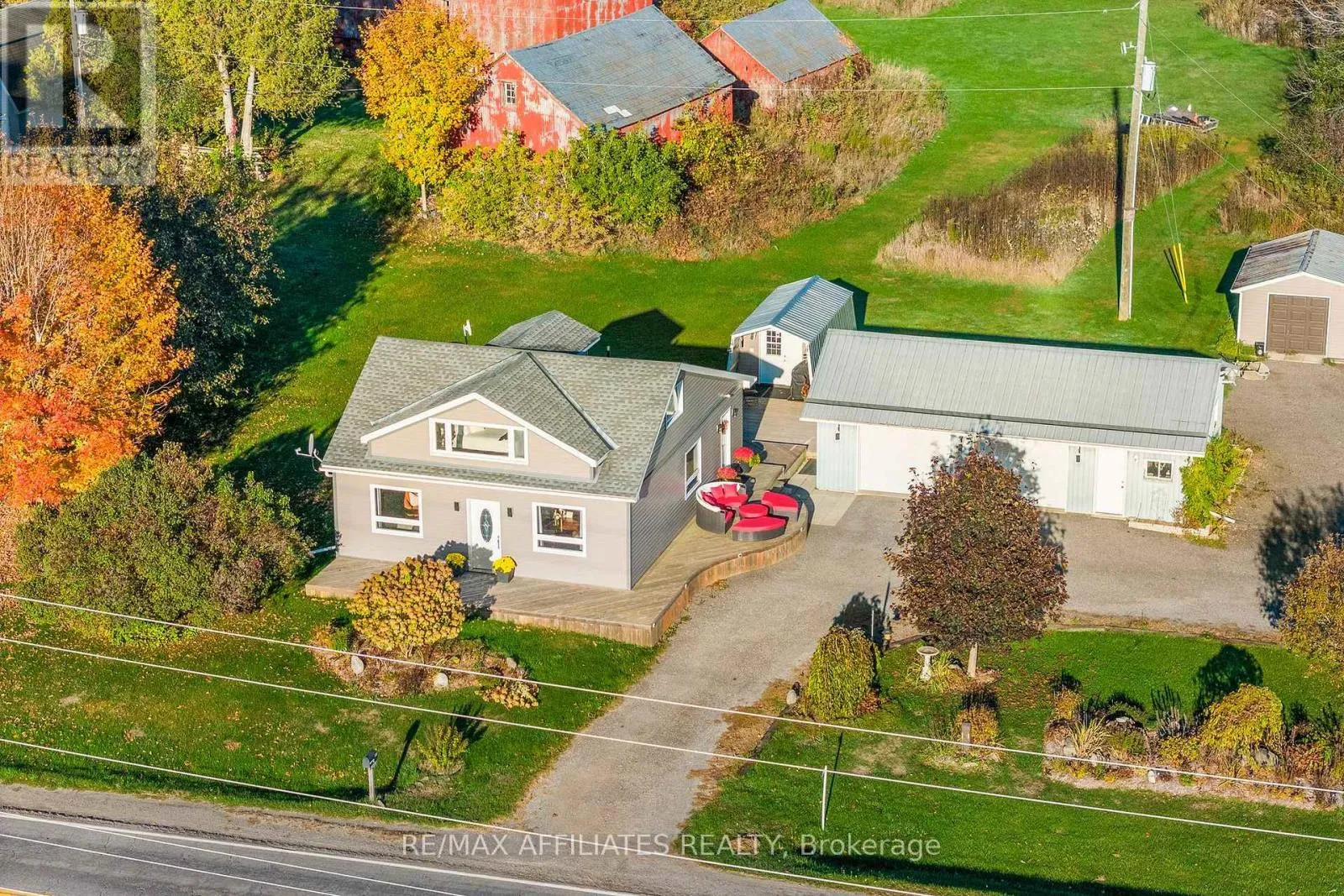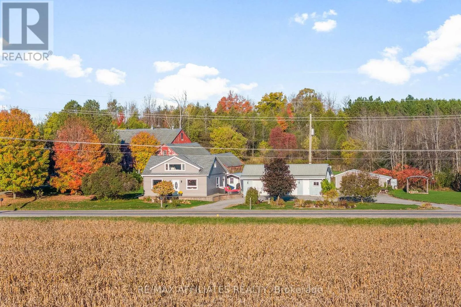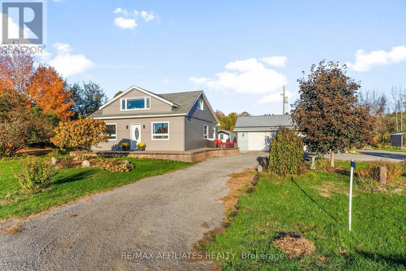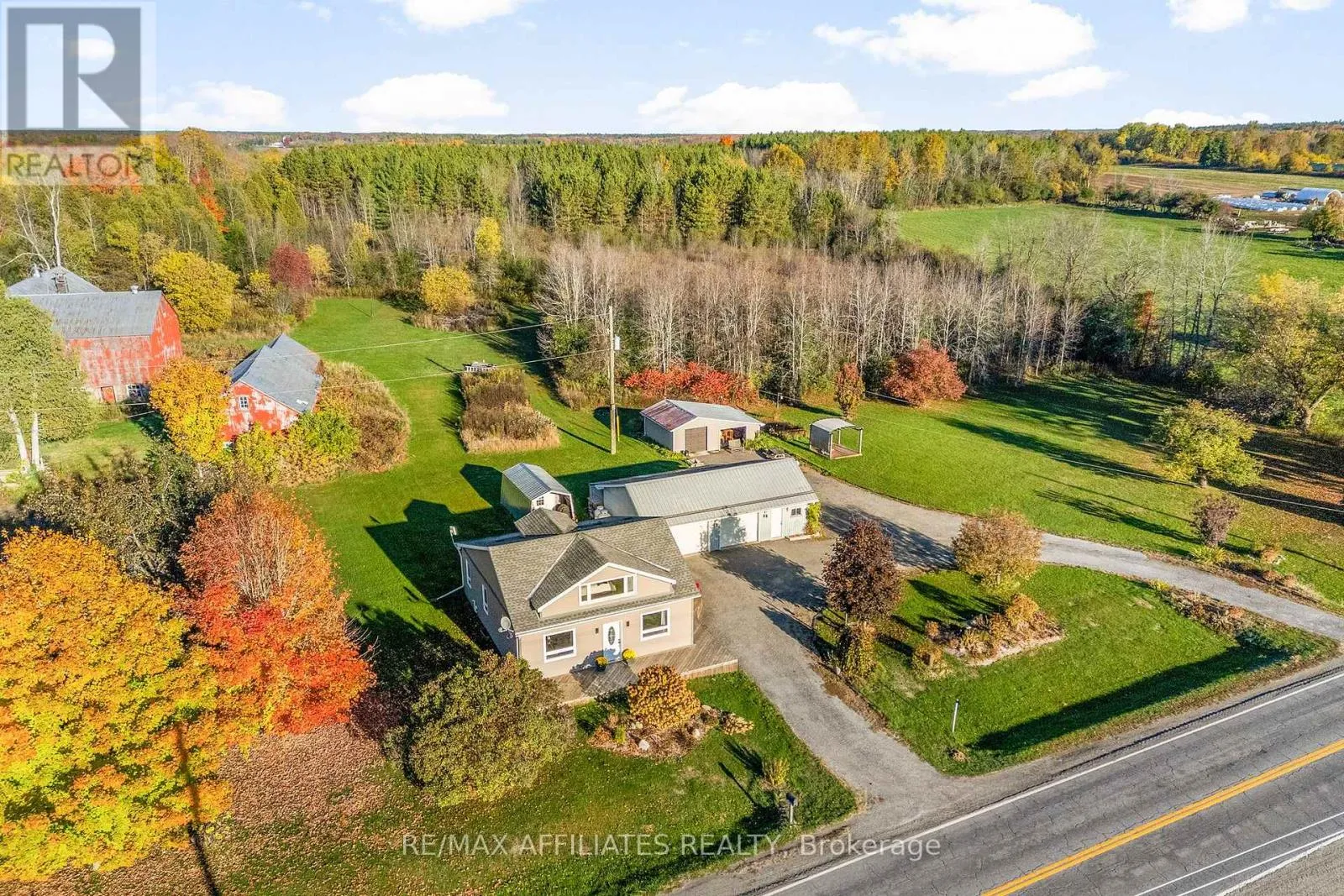 Cross Streets: County Rd 21 & Weir Rd. ** Directions: From Highway 416, take Spencerville exit and head East on County Rd 21. Turn right onto County Rd 44 and follow thru the village, turn left onto Centre St (County Rd 21) towards SP, will be on RHS. Picturesque property just outside of Spencerville, this extraordinary 1-1/2 storey home redefines rural living. Set on a beautifully landscaped one-acre lot surrounded by open fields; the property's conservative exterior gives little hint of the exceptional design and craftsmanship waiting inside. Every detail of this home has been thoughtfully executed, showcasing first-class artistry and one-of-a-kind features throughout, displaying a true professionals craft and pride of ownership. A spacious mudroom with staircase to lower level, & slick 3pc. bath conveniently located off the entrance.The gourmet kitchen featuring bamboo custom cabinetry, granite countertops & breakfast island flowing into the open concept dining/living area with a modern fireplace & gorgeous views. An EXQUISITE WALNUT STAIRCASE with sleek glass railings-truly a functional work of art and a statement! From the hidden slipper drawer to the uniquely shaped cutouts below - definitely one-of-a-kind! A main-floor bedroom offers convenience & the 5pc contemporary bath design & finishes are sleek & tasteful! The second-level loft serves as a serene primary suite with an oversized walk-in closet & private two-piece ensuite. This level could be redesigned to 2 bedrooms or a teenage suite with primary on first level. The lower level also with a custom staircase hosts the laundry, and ample storage. Outside, enjoy peaceful country evenings on the wraparound deck, surrounded by lush gardens and wide-open views. The heated garage & workshop provide ample space for vehicles, hobbies, and creative pursuits. Additional outbuildings for storage of toys & bunkie potential. Deceivingly offering over 1,400 sq. ft. of finished space, this home blends comfort, artistry, and purpose in perfect harmony. It's a rare opportunity to own a property where craftsmanship and lifestyle come together in a way that simply cannot be replicated. Just moments to all the amenities the growing village of Spencerville offers! (id:27476)