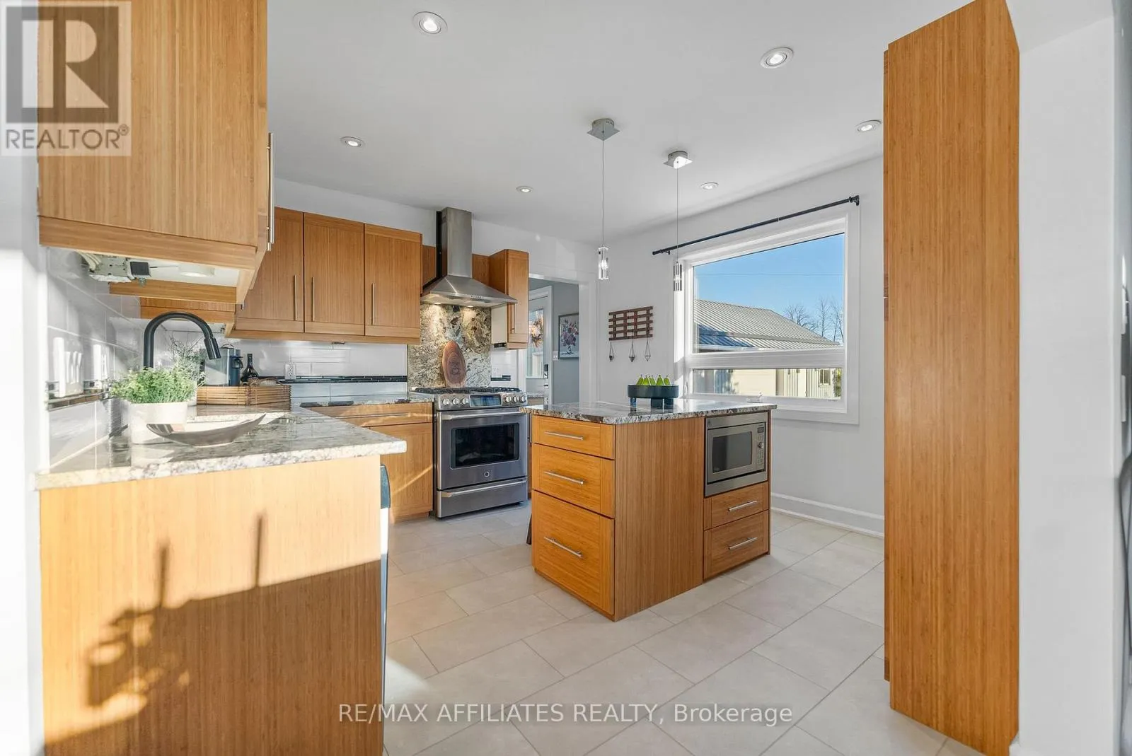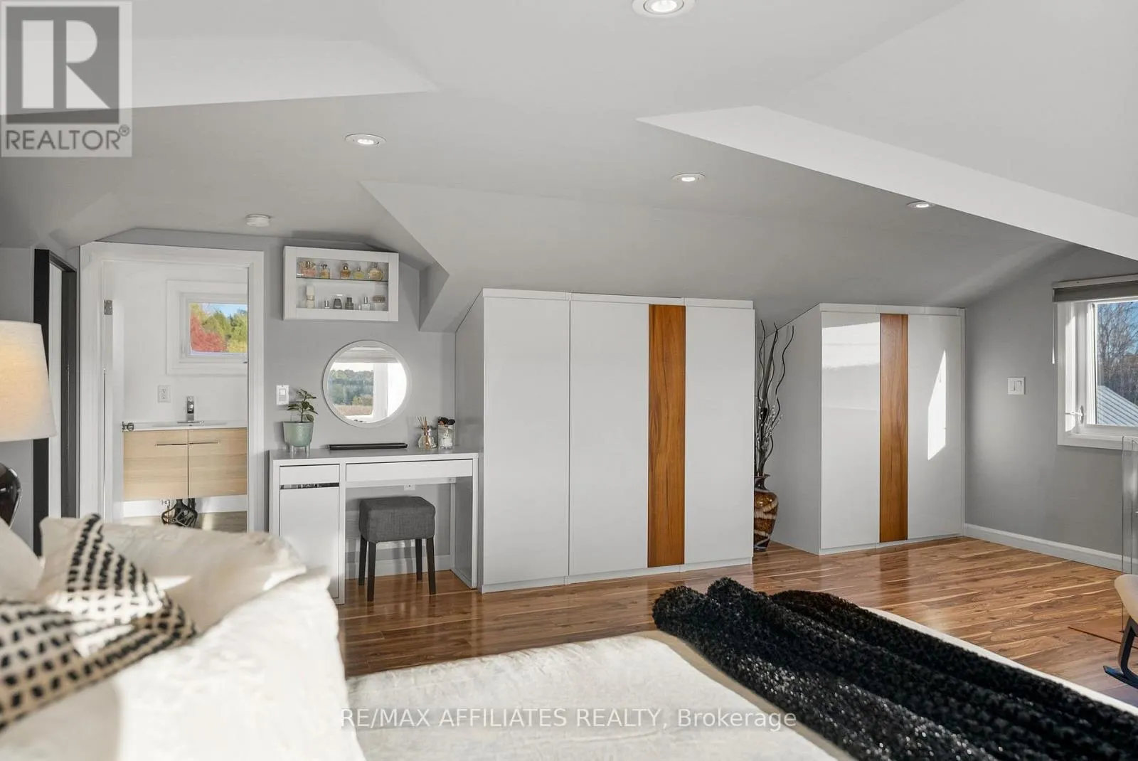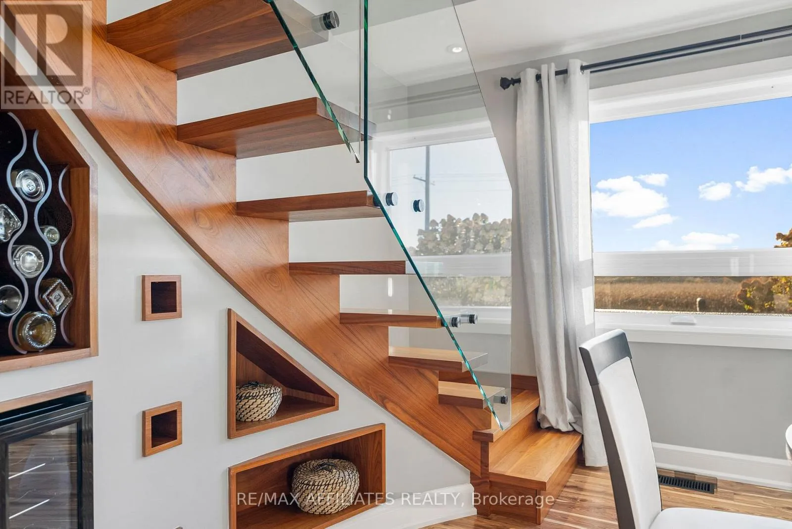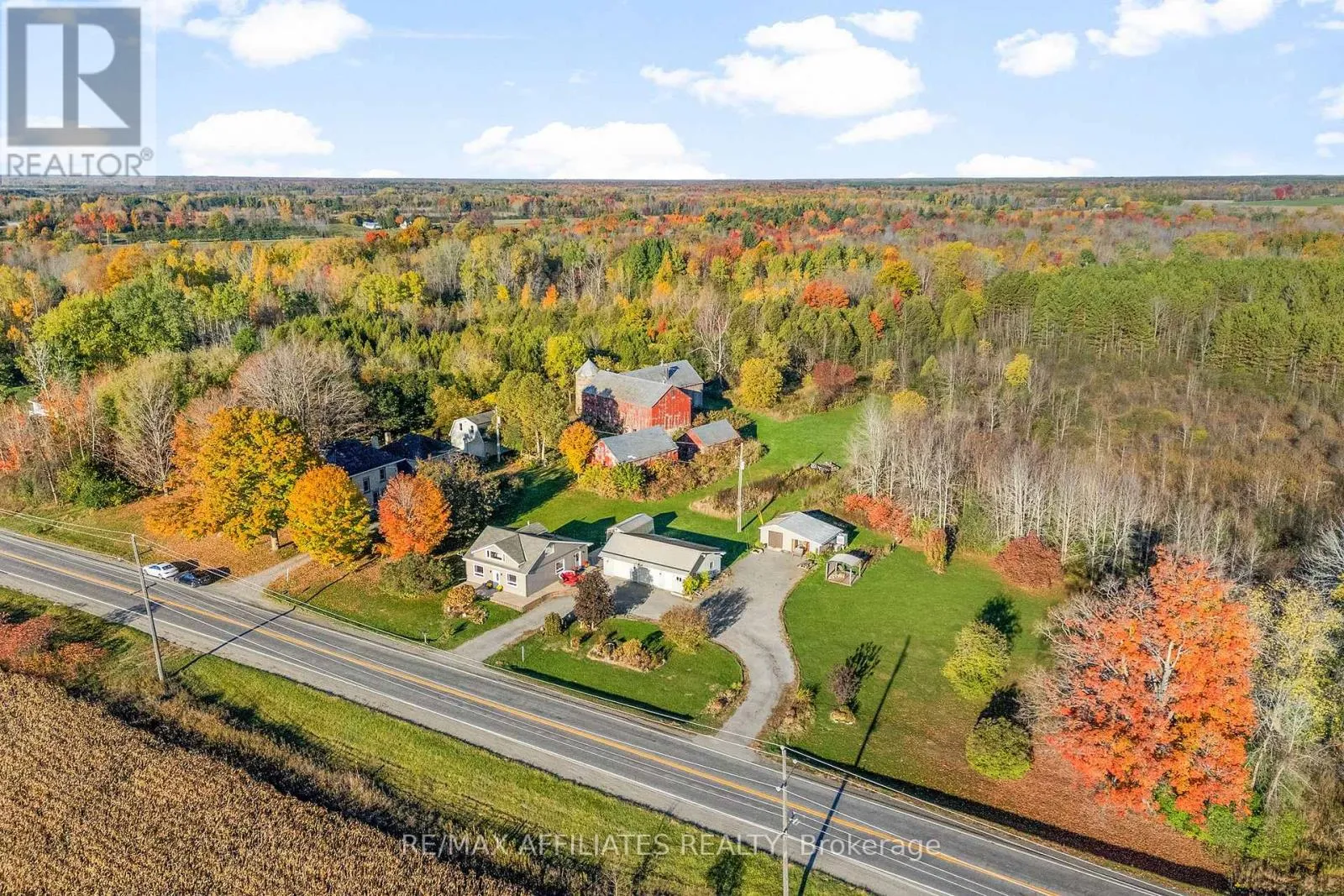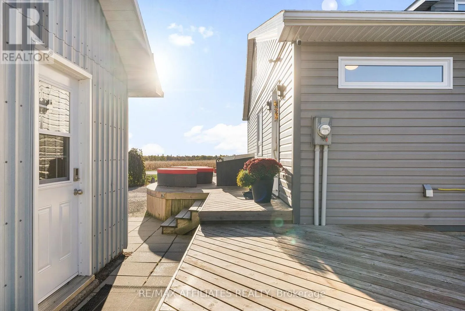 Cross Streets: County Rd 21 & Weir Rd. ** Directions: From Highway 416, take Spencerville exit and head East on County Rd 21. Turn right onto County Rd 44 and follow thru the village, turn left onto Centre St (County Rd 21) towards SP, will be on RHS. Picturesque property just outside of Spencerville, this extraordinary 1-1/2 storey home redefines rural living. Set on a beautifully landscaped one-acre lot surrounded by open fields; the property's conservative exterior gives little hint of the exceptional design and craftsmanship waiting inside. Every detail of this home has been thoughtfully executed, showcasing first-class artistry and one-of-a-kind features throughout, displaying a true professionals craft and pride of ownership. A spacious mudroom with staircase to lower level, & slick 3pc. bath conveniently located off the entrance.The gourmet kitchen featuring bamboo custom cabinetry, granite countertops & breakfast island flowing into the open concept dining/living area with a modern fireplace & gorgeous views. An EXQUISITE WALNUT STAIRCASE with sleek glass railings-truly a functional work of art and a statement! From the hidden slipper drawer to the uniquely shaped cutouts below - definitely one-of-a-kind! A main-floor bedroom offers convenience & the 5pc contemporary bath design & finishes are sleek & tasteful! The second-level loft serves as a serene primary suite with an oversized walk-in closet & private two-piece ensuite. This level could be redesigned to 2 bedrooms or a teenage suite with primary on first level. The lower level also with a custom staircase hosts the laundry, and ample storage. Outside, enjoy peaceful country evenings on the wraparound deck, surrounded by lush gardens and wide-open views. The heated garage & workshop provide ample space for vehicles, hobbies, and creative pursuits. Additional outbuildings for storage of toys & bunkie potential. Deceivingly offering over 1,400 sq. ft. of finished space, this home blends comfort, artistry, and purpose in perfect harmony. It's a rare opportunity to own a property where craftsmanship and lifestyle come together in a way that simply cannot be replicated. Just moments to all the amenities the growing village of Spencerville offers! (id:27476)
