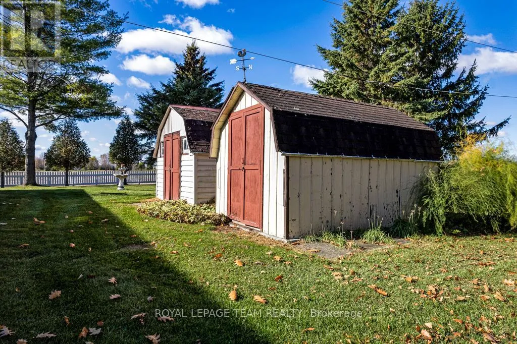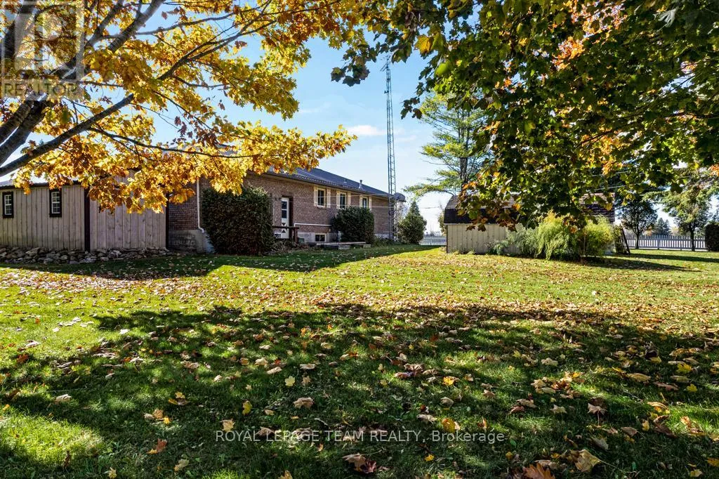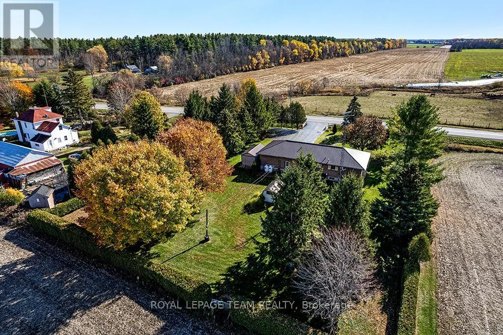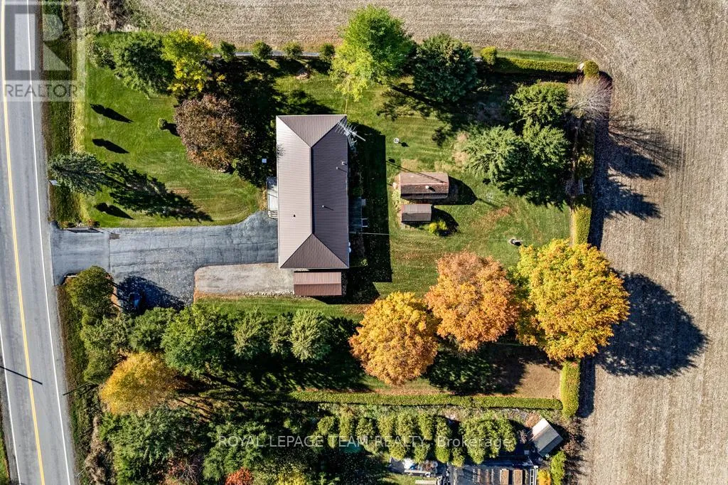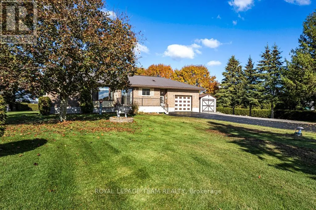 Cross Streets: County Road 21 and County Road 22. ** Directions: County Rd 22 south to County Rd 21, east on County Rd 21 to subject property - on the left side of the road. Welcome to 100 County Road 21. Set against a picturesque rural backdrop, this charming all-brick bungalow offers peaceful country living on nearly one acre of beautifully landscaped property. A paved double driveway with ample parking, mature trees, and a classic white picket fence create an inviting first impression.Step inside to discover an open-concept kitchen, dining, and living area designed for easy living and natural flow. Warm wood cabinetry, neutral linoleum flooring, and sunny southern exposure fill the space with comfort and light. A large patio door opens to the deck and front yard-perfect for soaking in the sunshine or enjoying your morning coffee with a view.The main level features three generous bedrooms, two with ample closet space; the third bedroom is ideal as an office or study. A main 4-piece bath with tub/shower combo serves the family, while the main-floor laundry room with a 2-piece bath is conveniently located just off the attached garage.Downstairs, the partially finished basement offers even more possibilities-create a fourth bedroom, home gym, or hobby space. A newer propane stove adds warmth and efficiency, while there's plenty of storage and room to expand in the full-height lower level. The metal roof provide decades of worry-free maintenance. Outdoors, the expansive backyard overlooks rolling fields and open sky-a tranquil country setting that's truly hard to find. Whether you're gardening, entertaining, or simply relaxing, this property delivers a slice of rural paradise with all the comforts of home. (id:27476)