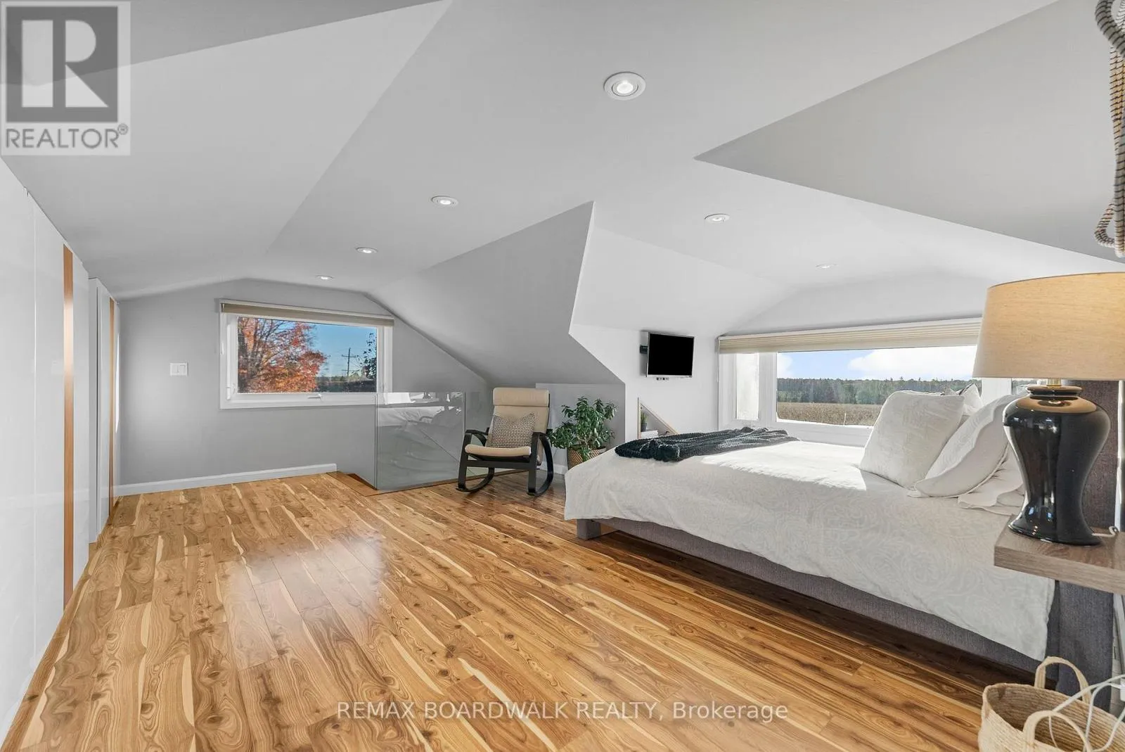 Cross Streets: County Rd 21 & Weir Rd. ** Directions: From Highway 416, take Spencerville exit and head East on County Rd 21. Turn right onto County Rd 44 and follow thru the village, turn left onto Centre St (County Rd 21) towards SP, will be on RHS. Nestled on a lush one-acre lot just outside Spencerville, this picturesque 1-1/2 storey home redefines the rural lifestyle. While the exterior may offer a modest profile, the interior reveals a stunning display of professional artistry, custom design and pride of ownership. The open-concept main floor features a gourmet kitchen with custom bamboo cabinetry, granite countertops and a large centre island flowing into an airy dining and living space with modern, electric fireplace. The true showpiece of the home is the exquisite walnut staircase with sleek glass railings and custom built-in details. The flexible layout includes a main-floor bedroom and contemporary 5pc bath, while the upper level loft serves as a serene primary suite with 2pc ensuite and oversized walk-in closet - easily convertible into 2 bedrooms. Enjoy 1400+ sq ft of finished living space, including a functional mudroom with lower level access. Outdoor living is perfected with a wraparound deck, lush gardens and wide-open farmers' field views. Bonus features include a heated garage/workshop, storage outbuildings and "bunkie" potential. A rare opportunity to own a home where every detail has been thoughtfully executed. (id:27476)