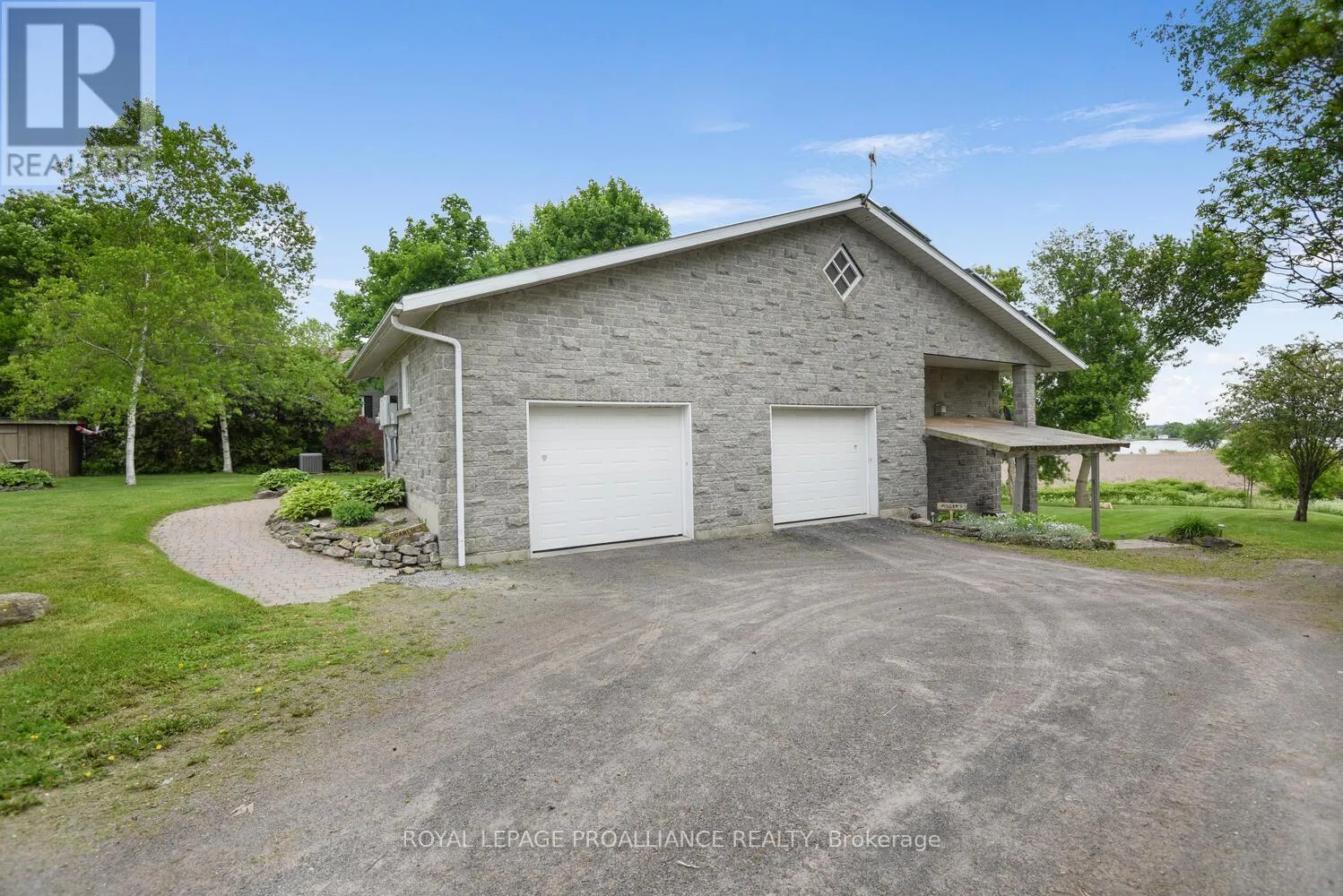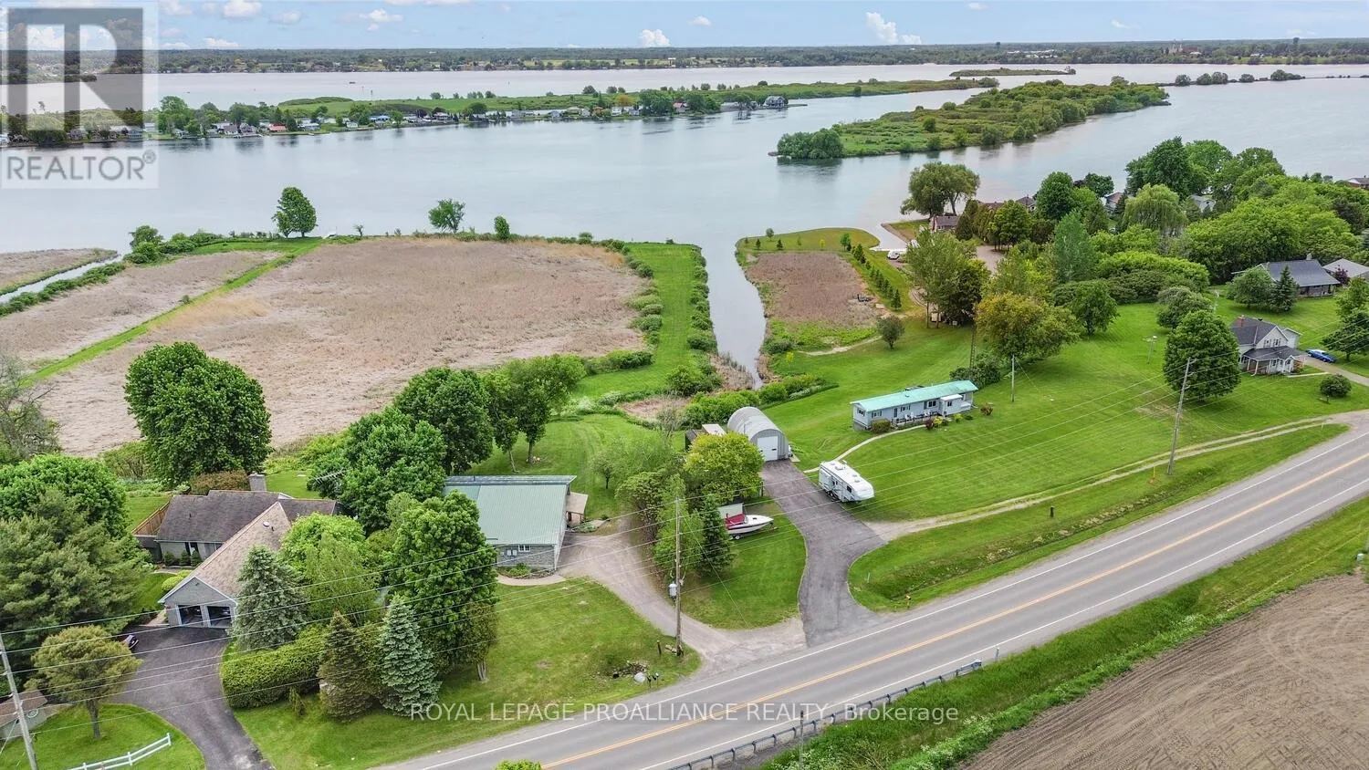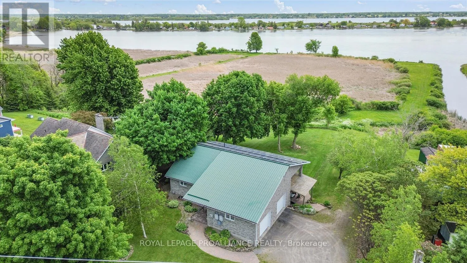 Cross Streets: 416 & County Road 2, then east. ** Directions: Take exit 721B from401 and head SOUTH (towards river) to County Rd. 2. At Church turn left and head left (EAST) to the subject property on the right side. Built in 2003, this solid stone bungalow is ideally situated in Johnstown, offering spectacular, unobstructed views of the majestic St. Lawrence River-without being directly on the water. Backing onto protected wetlands, the setting ensures these remarkable views will remain preserved for years to come.Designed with exceptional versatility, the home is currently configured as a bungalow with a legal lower-level apartment, making it an excellent investment opportunity. Both levels are rented to wonderful tenants who wish to stay. Each unit mirrors the other in layout, featuring two spacious bedrooms, a 4-piece bathroom, laundry, and an open-concept kitchen, dining, and living area that captures the river views. Built on grade, the bright lower level offers a walk-out and functions more like a second main floor than a traditional basement. Soundproofing between levels enhances privacy, while each unit enjoys direct access to its own side of the attached double garage.The upper level features beautiful hardwood flooring, while the lower level offers recently updated ceramic tile and carpet in the bedroom. Important updates include a metal roof (2003), furnace and water heater (2017), and newer dishwashers (2023 and 2024), with approximately four years remaining on the solar panel contract. Whether you are seeking a solid income property, a solution for extended or multi-generational living, or the option to live on one level while off setting your mortgage with rental income, this home delivers outstanding flexibility. With some modifications, this home could also be reconfigured to a single dwelling, complete with a double-car garage, offering even more flexibility for the next owner. High-speed internet is available, and the property is conveniently located on County Road 2 with quick access to Highways 401, 416, and the International Bridge-making commuting effortless. (id:27476)