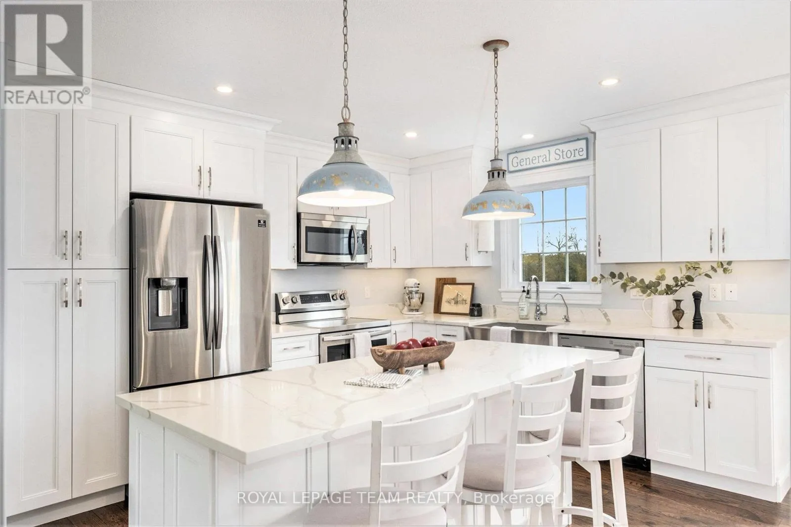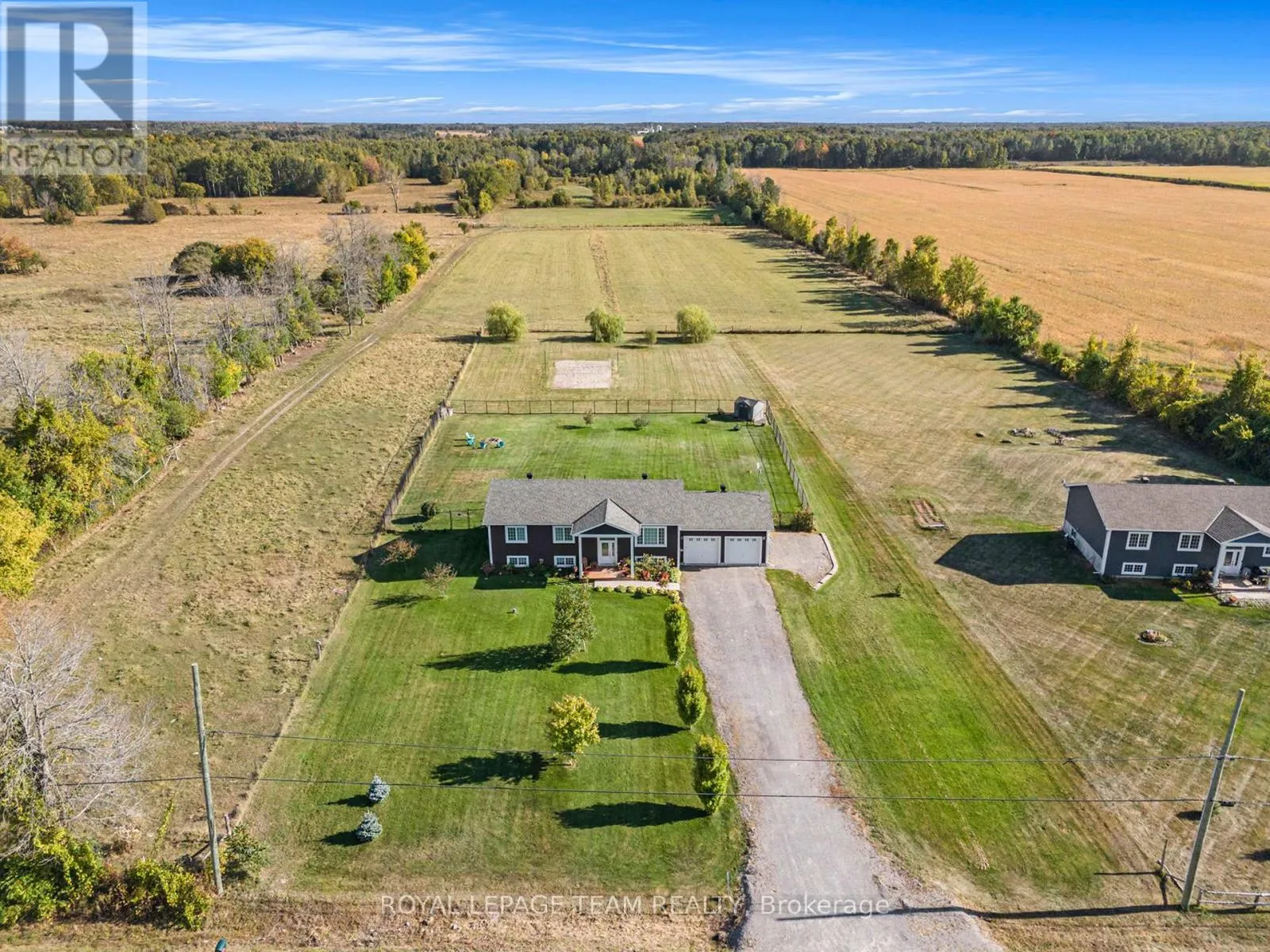 Cross Streets: Hyndman Road & Campbell Road. ** Directions: From HWY 416, take exit for County road 20, head East. Turn South onto County Road 44. Welcome to a harmonious blend of rural charm and modern elegance on a 1.5-acre property. Situated between Kemptville and Spencerville, this high ranch home offers ample space, privacy, and accessibility. Located on a quiet country road amidst scenic farmland, it's just minutes fromHwy 416, providing a 30-minute drive to Ottawa and the USA Bridge. Inside, the home radiates sophistication and comfort with engineered hardwood floors, porcelain tiles, upgraded trim, lighting, and custom cabinetry with quartz countertops. The open-concept design is ideal for gatherings, whether elegant dinners, family cooking nights, or quiet evenings. The main level features three bedrooms, including a primary suite with a private ensuite, and a stylish guest bathroom, both with quartz countertops. The newly updated lower level suits multigenerational living, with two extra bedrooms, a wet bar, and a kitchenette equipped with a dishwasher and beverage fridge. It also includes a large bathroom, a cozy living area with a propane stove, and a mudroom with access to the garage and backyard. Thoughtfully designed and insulated, it ensures apeaceful and private environment, perfect for guests or big families. Outside, enjoy a landscaped space with a fenced backyard, new deck, and a regulation-sized beach volleyball court. A propane BBQ hook-up makes outdoor entertaining a breeze. Additional conveniences include taps on all sides of the house, with some bypassing the water softener, and a drinking water tap in the kitchen. The home features a Gener-Link system on the hydro meter and a generator that runs on gas or propane. The septic tank was recently emptied in 2024, with risers for easy access. Outdoor amenities also include a trailer parking spot with an electrical plug, a garden shed, and garage door openers on both doors. Don't miss this opportunity to own a slice of country paradise where modern style meets tranquil living (id:27476)