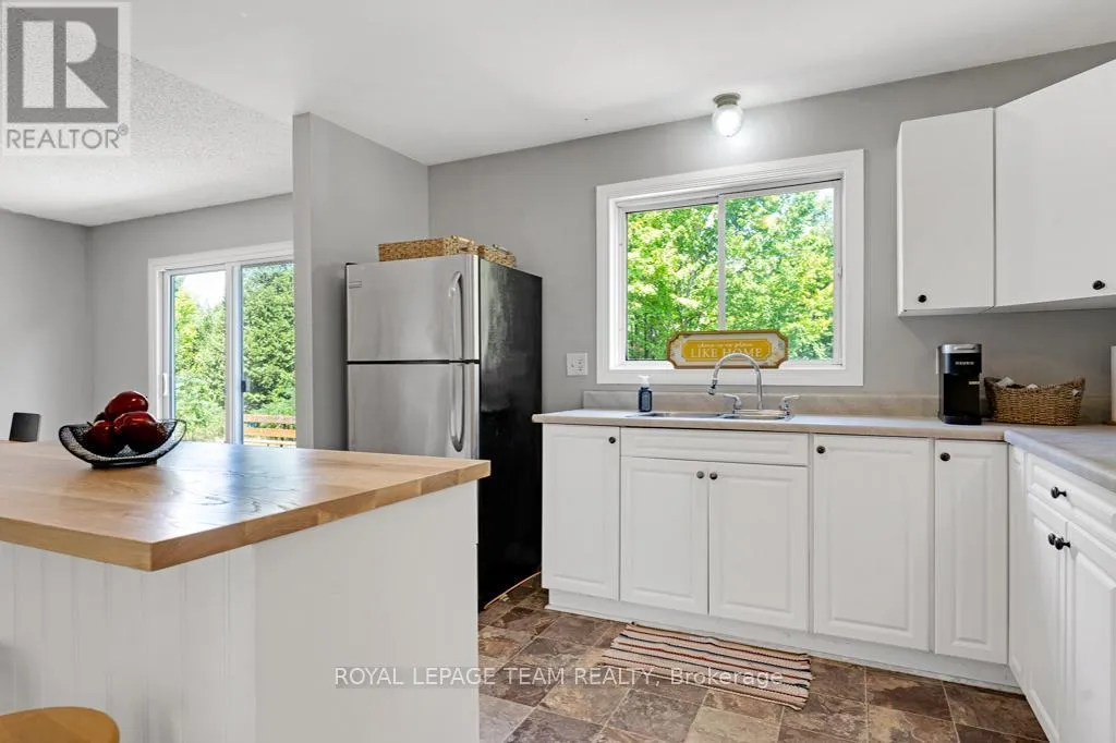 Cross Streets: County Road 44 and Ventnor Road. ** Directions: From 416, take the Oxford Station exit. East towards CR 44, then south on 44 to 8133 CR44. Watch for sign. Lovely and updated 1,550 sq/ft raised ranch set on just over an acre, ideally located just north of charming Spencerville and only minutes to Kemptville, the 416 and the 401. This well-maintained, move-in ready 3 + 1 bedroom, 2-bath home offers spacious principal rooms, hardwood flooring in the living area, and a bright, functional layout throughout. The kitchen and bathrooms feature easy-care vinyl flooring, while newer Berber carpet adds warmth to the bedrooms and basement stairs.The spacious kitchen provides ample cabinet and counter space, centre island with convenient breakfast seating. The bright dining area easily accommodates a large table and hutch. Patio doors lead to a generous deck with built-in seating and gated access to the above-ground pool-perfect for summer entertaining. The private, tree-lined backyard offers excellent outdoor space, while perennial gardens enhance the home's curb appeal.The primary bedroom features cheater access to the recently renovated main bath, and two additional bedrooms are generously sized with large closets and bright windows. The finished lower level includes a large rec room with rustic barn board accents, a fourth bedroom with above-grade windows, a 3-piece bath with walk-in shower (2019), and a laundry/workshop area with plenty of storage. Basement is fully finished with just flooring remaining to be completed. Low maintenance metal roof should last a lifetime, new vinyl siding 2025, new furnace 2025. A great combination of space, updates, and country setting-ready for its next family to enjoy! (id:27476)