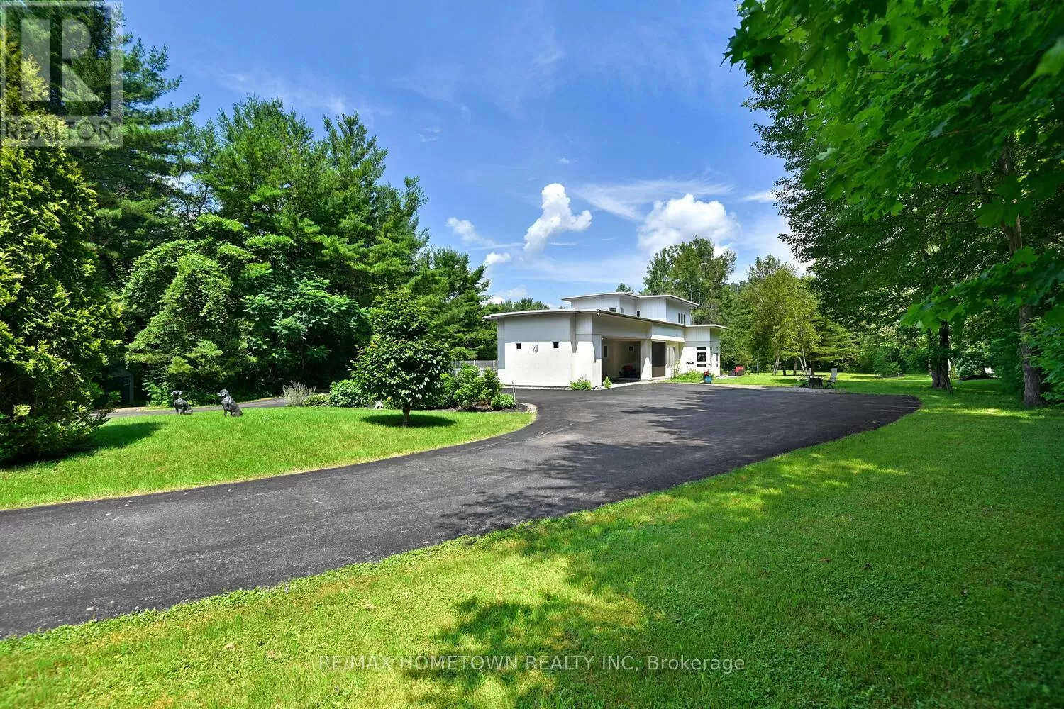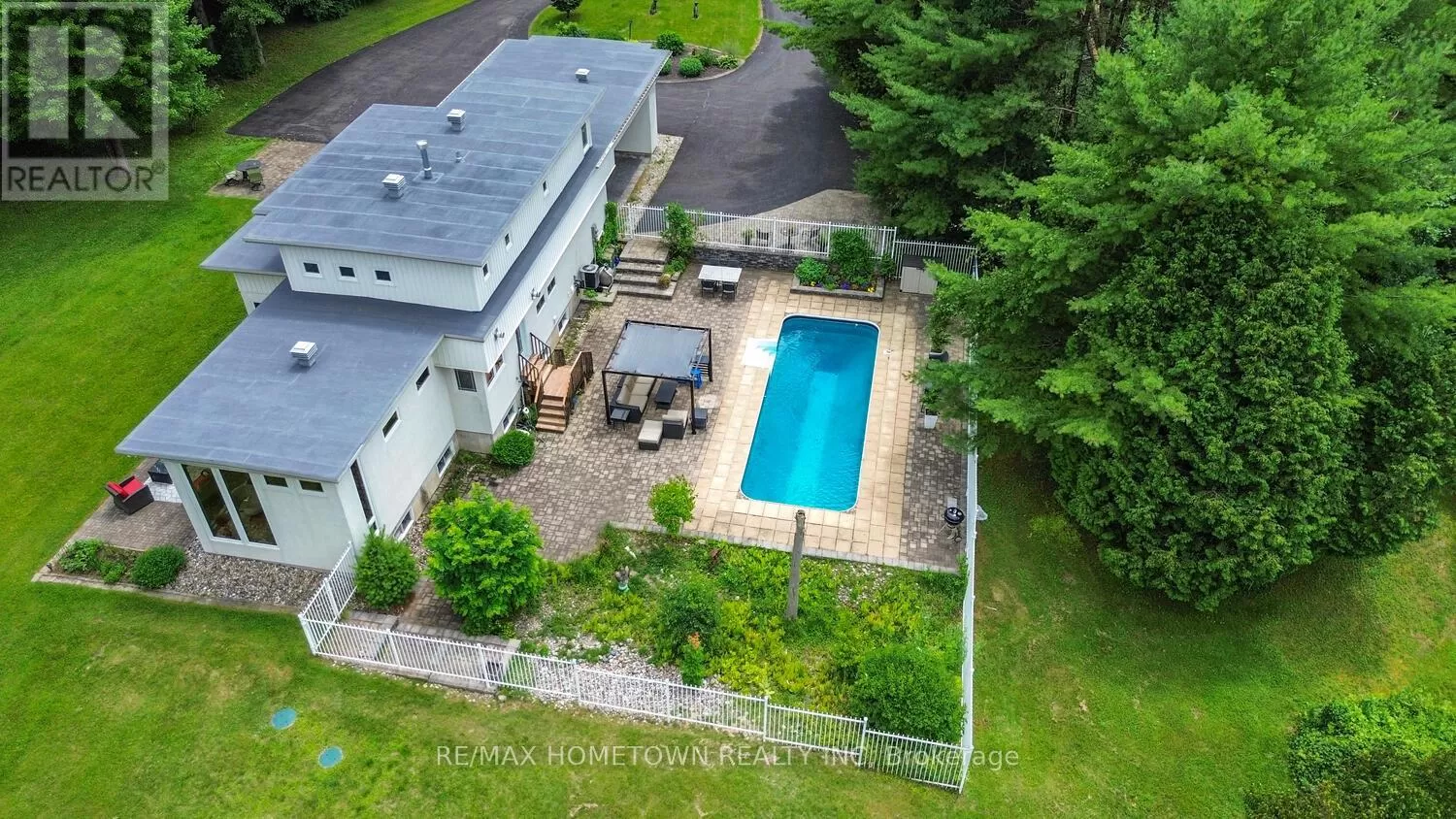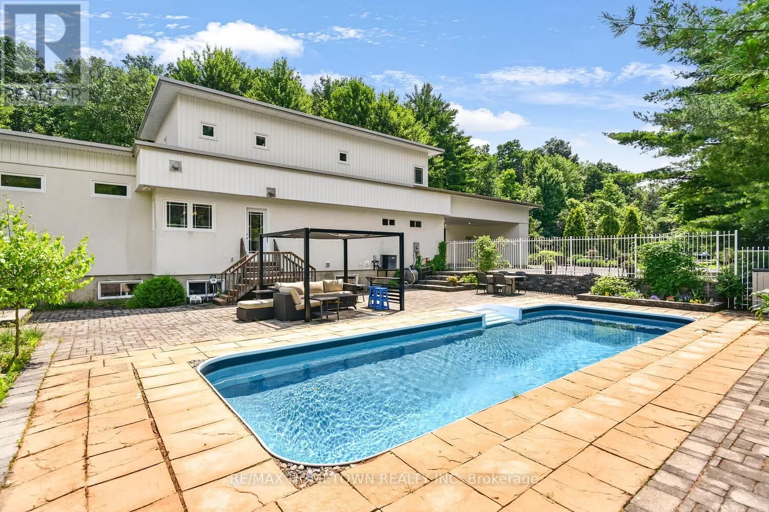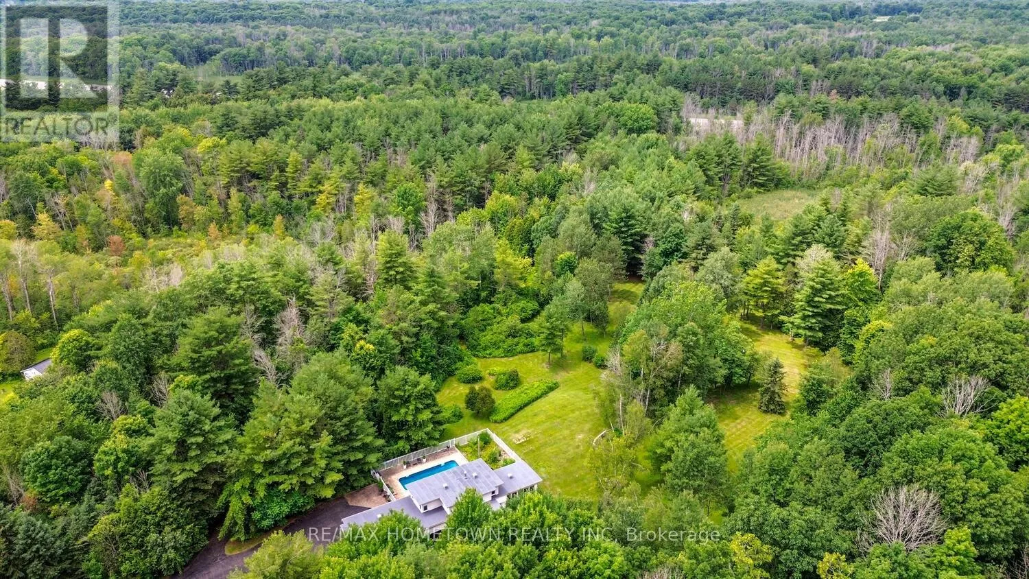 From the City of Brockville, west on King St. becoming Highway #2, north onto Lily Bay Dr., the property will be signed! You'll not find another like it. This extraordinary architectural home rests on 33 groomed acres just outside Brockville, moments from the St. Lawrence River and the breathtaking Thousand Islands Parkway. Tucked privately off the road, the winding paved drive leads you to a property that feels hidden and extraordinary. Inspired by the design philosophy of Frank Lloyd Wright, the home is brilliantly integrated into its natural setting, with expansive windows that frame the landscape in every season. Three levels offer versatile living: the lower level has its own entrance and features two bedrooms, an office, a sitting room, porcelain tile with radiant heat, and a full bath perfect for guests, multigenerational living, or private workspace. The main level blends cozy, inspirational nooks with formal dining and lounging areas, and a wonderfully functional kitchen. Upstairs, the primary retreat is its own sanctuary with a private sitting room, five-piece bath, walk-in and display closets, and a tranquil, elevated view of the grounds. Step outside to an in-ground pool, sitting areas nestled among trees, and a remote-controlled screened-in lounge. Whether you're entertaining, relaxing, or exploring the network of trails, this is a home that celebrates space, peace, and architectural brilliance. A true retreat, rich in natural beauty and refined design, just minutes from town and river. (id:27476)