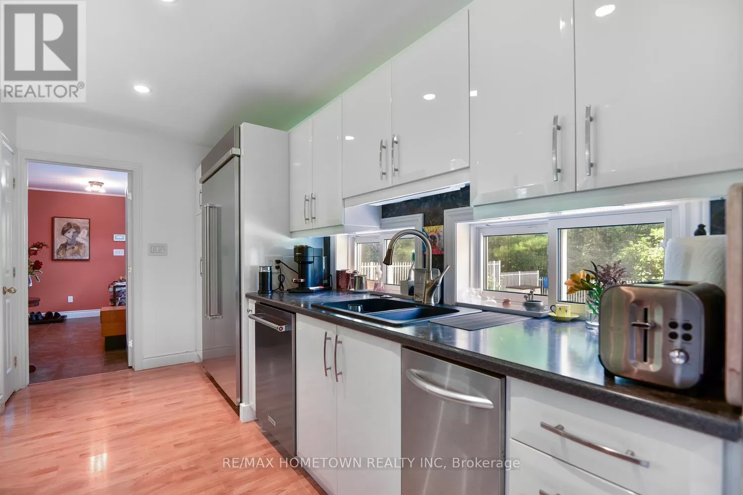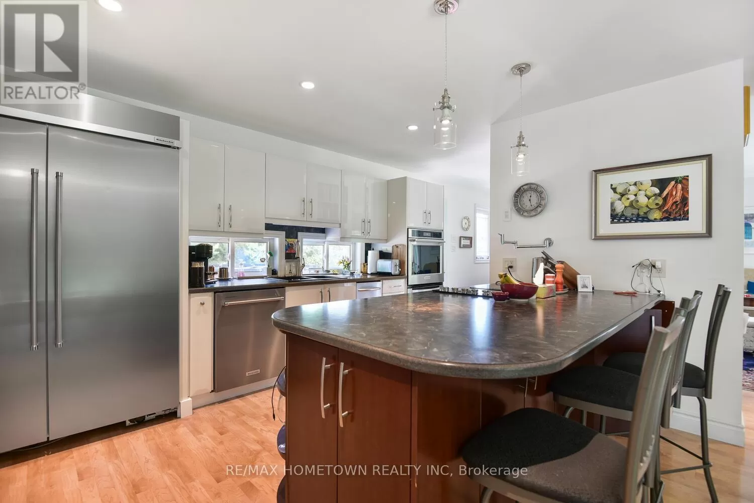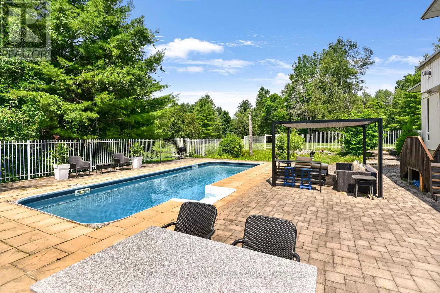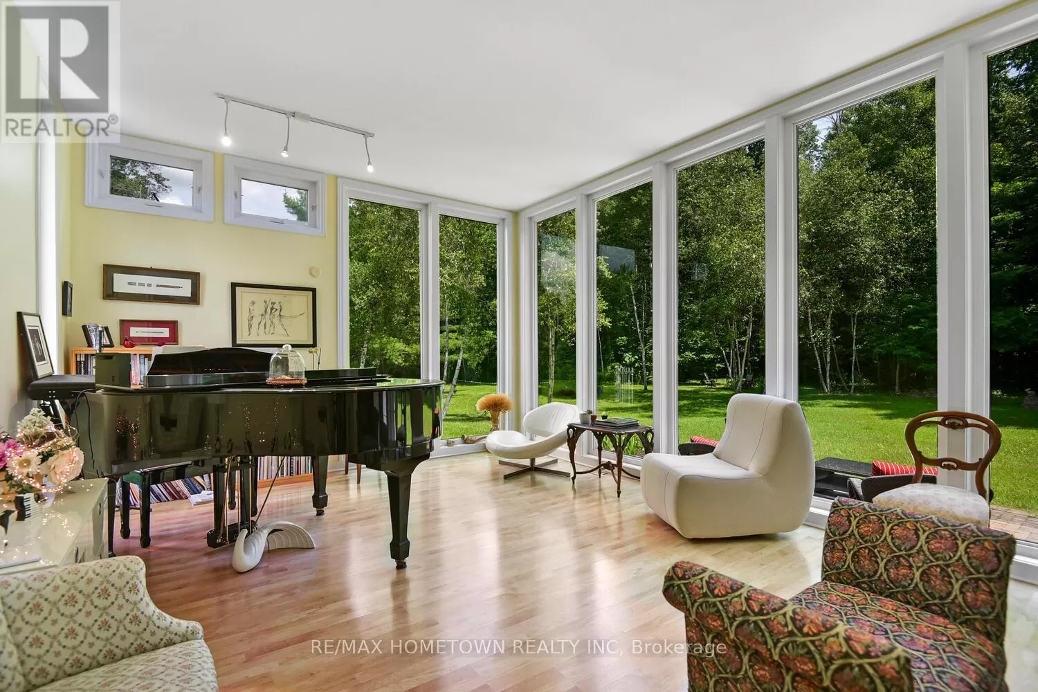 From the City of Brockville, west on King St. becoming Highway #2, north onto Lily Bay Dr., the property will be signed! You'll not find another like it. This extraordinary architectural home rests on 33 groomed acres just outside Brockville, moments from the St. Lawrence River and the breathtaking Thousand Islands Parkway. Tucked privately off the road, the winding paved drive leads you to a property that feels hidden and extraordinary. Inspired by the design philosophy of Frank Lloyd Wright, the home is brilliantly integrated into its natural setting, with expansive windows that frame the landscape in every season. Three levels offer versatile living: the lower level has its own entrance and features two bedrooms, an office, a sitting room, porcelain tile with radiant heat, and a full bath perfect for guests, multigenerational living, or private workspace. The main level blends cozy, inspirational nooks with formal dining and lounging areas, and a wonderfully functional kitchen. Upstairs, the primary retreat is its own sanctuary with a private sitting room, five-piece bath, walk-in and display closets, and a tranquil, elevated view of the grounds. Step outside to an in-ground pool, sitting areas nestled among trees, and a remote-controlled screened-in lounge. Whether you're entertaining, relaxing, or exploring the network of trails, this is a home that celebrates space, peace, and architectural brilliance. A true retreat, rich in natural beauty and refined design, just minutes from town and river. (id:27476)