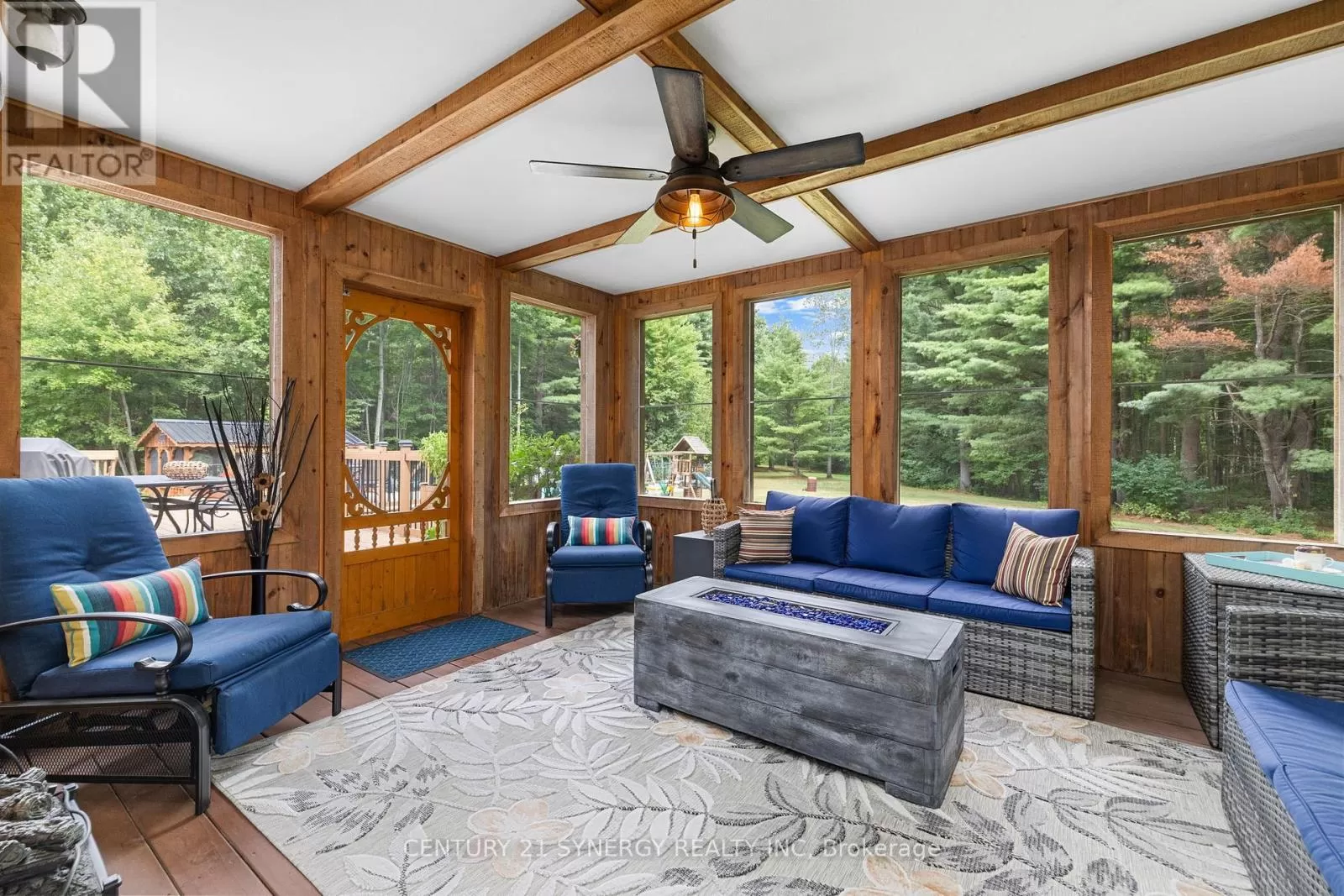 Cross Streets: DEBRUGE ROAD AND HAGGARTS SIDE ROAD. ** Directions: From Brockville Head North on County Road 29 Toward Tincap. Turn Right on Debruge Road. Drive past the Mac Johnson Wildlife Entrance and turn left onto Haggarts Side Road. 4621 Will be on the right hand side. The Best of Country Living, Just Minutes from Town! Set on 49 picturesque acres, this 4+1 bedroom, 4-bathroom home offers the perfect balance of privacy and convenience, only 5 minutes from Brockville and walking distance to the Mac Johnson Wildlife Area. Surrounded by hardwoods and stately pines, the property fronts on both Haggarts Side Road and Debruge Road, creating a truly scenic retreat. The main floor features an open kitchen, dining, and living area ideal for family living and entertaining leading to a bright 3-season screened-in sunroom and a private backyard oasis with expansive deck and in-ground pool. A formal living room, spacious den/foyer, laundry room, and updated powder room (2023) complete the level. Upstairs, find four generous bedrooms including a primary suite with walk-in closet and ensuite, plus a large family bath.The finished lower level offers a huge rec room with a corner gas stove, wet bar, and office, along with inside entry to the 2-car garage accessible from both levels. Outdoor living is a dream with the heated pool (2022), chlorinator (2023), new pool pump and solar blanket (2025), screened wood gazebo (2022), gas fireplace, and a children's play structure with swings, slide, and teeter-totter. Recent updates ensure modern comfort and peace of mind: stainless steel appliances (2022), kitchen backsplash and smoke detectors (2023), heat pump and sump pump (2024), backup sump pump battery (2025).This is more than a home, its a lifestyle. Enjoy space, comfort, and nature at your doorstep, with all amenities just minutes away. (id:27476)