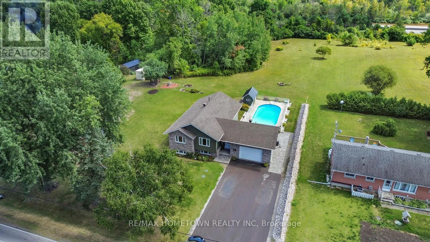 Cross Streets: 2nd Concession. ** Directions: Exit 705 and head west on 2nd concession. House will be up the road across from Halls Apple Orchard and be sure to watch your speed and the road in monitored on a regular basis. Spacious Raised Bungalow with Pool on 2.6 Acres. This 1300+ sq ft raised bungalow checks all the boxes: 3 bedrooms, 2 bathrooms, an attached double garage (with man door and drive-through access), and a private in-ground pool, all set on a 2.6-acre lot just minutes from Brockville and Hwy 401.Built in 2016, this home offers modern curb appeal with a paved driveway and plenty of parking. Step into a large foyer that opens directly to the fenced backyard and pool area, perfect for summer entertaining. Upstairs, enjoy open-concept living where the kitchen, dining, and living spaces flow seamlessly together. The primary bedroom includes direct access to a Jack-and-Jill bathroom, which conveniently hosts the washer and dryer, adding functionality to this smart layout. Two additional bedrooms complete the main level. The family room located on the lower level offers space to relax and host during the colder months and stay cozy in the winter with a propane fireplace, featuring a 3-piece bathroom, laundry area, utility room, and plenty of storage. Spend your summers by the pool and enjoy the peace and privacy of country living with the convenience of nearby city access. (id:27476)