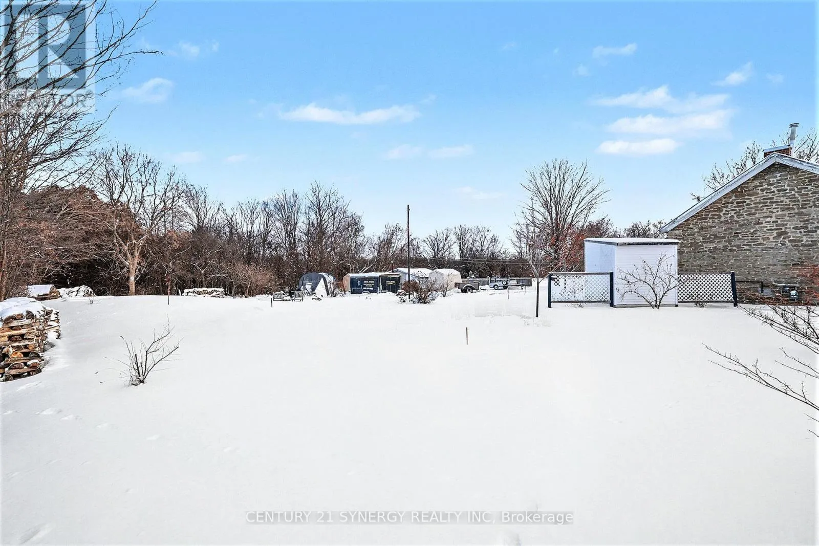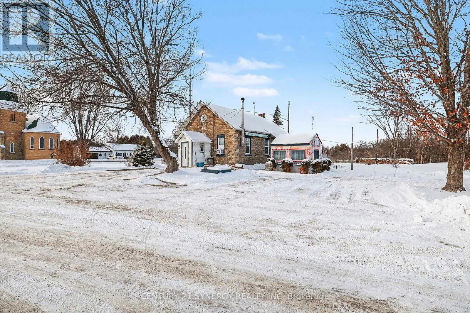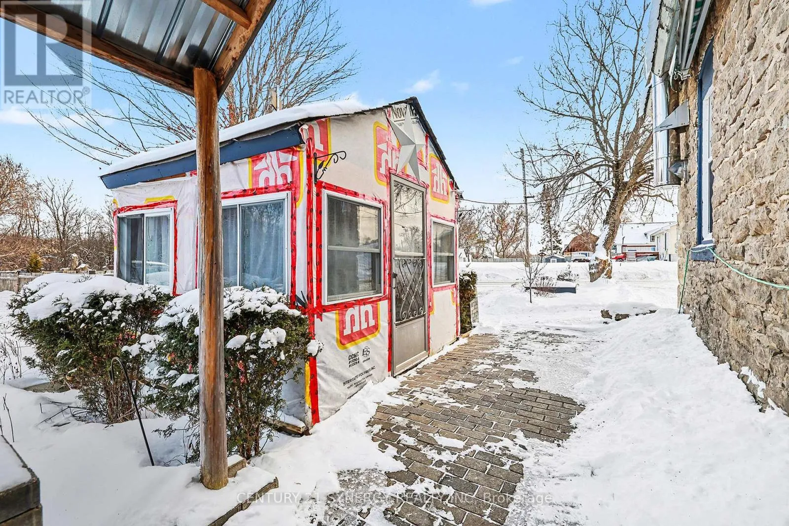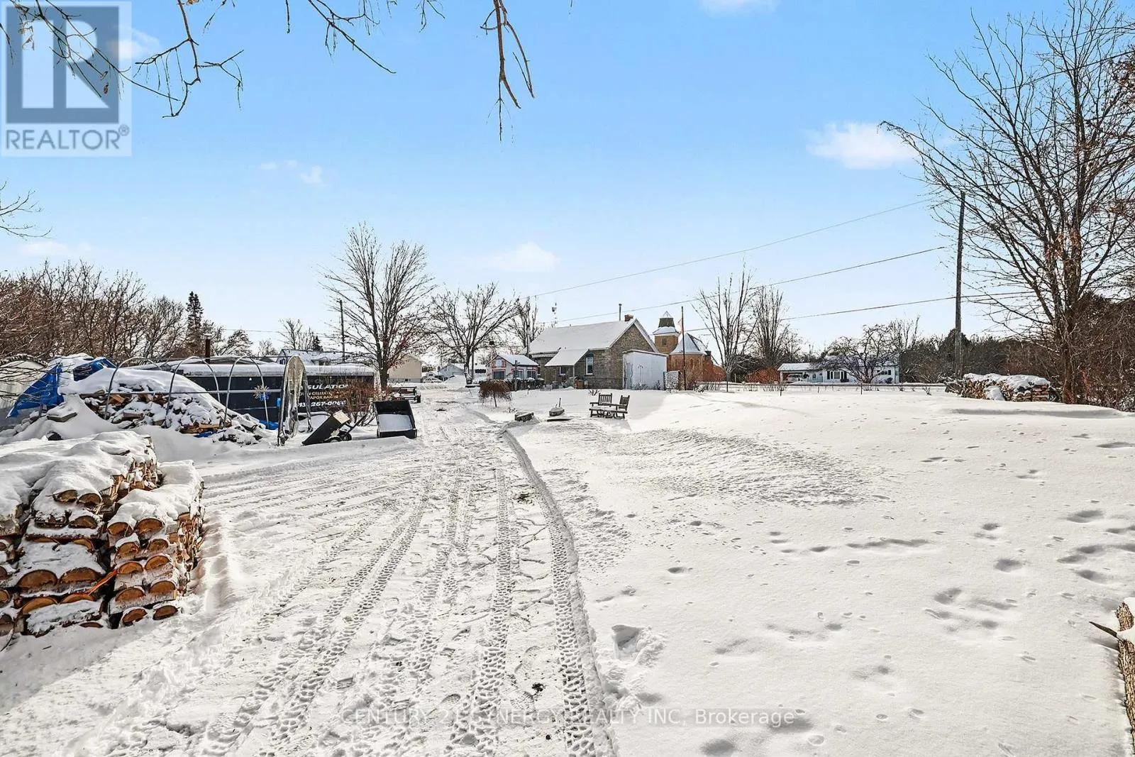 Cross Streets: County Road 29 & Kitley Line 4. ** Directions: South of Smiths Falls on County Road 29 till Newbliss, property is on the corner of County Road 29 and Kitley Line 4. Step into timeless charm with this beautifully and completely renovated stone home, originally built in 1875, where historic character meets modern comfort. From the moment you arrive, this one-of-a-kind property captivates with its solid stone construction, classic metal roof, and undeniable curb appeal. Inside, you'll be amazed at how much this small but mighty home offers. Thoughtfully designed for main-floor living, the layout maximizes every inch while maintaining warmth and flow. An open loft overlooking the main living space adds architectural interest and a sense of airy character, perfectly complementing the home's historic roots. This cozy yet impressive interior is heated efficiently by a charming woodstove, with two electric fireplaces providing convenient backup and ambiance. Every detail has been carefully considered-this home truly has everything you need, beautifully packed into a compact space. A new Eco Flow septic system (2014) provides peace of mind, while tasteful renovations throughout ensure modern functionality without sacrificing charm. Outside, the property continues to impress with ample outdoor space to relax, entertain, and enjoy country living. You'll find a spray-foamed charming garden shed and gazebo, multiple outbuildings, and a welcoming patio covered with an awning, perfect for summer evenings or morning coffee. The setting offers privacy, versatility, and endless possibilities for outdoor enjoyment. Located in Newbliss, just 10 minutes south from Smiths Falls, this rare gem offers the perfect blend of rural tranquility and nearby amenities. Rich in history, full of warmth, and brimming with character, this is more than a house-it's a true charm home that will impress in every way. (id:27476)