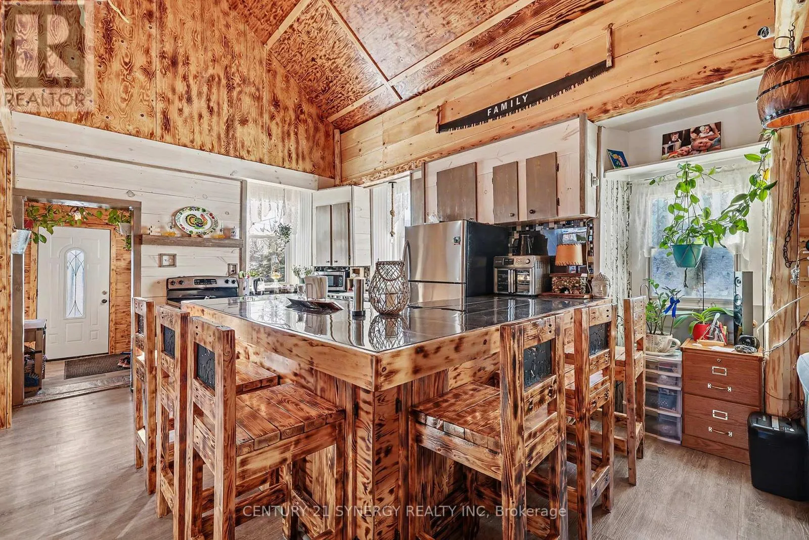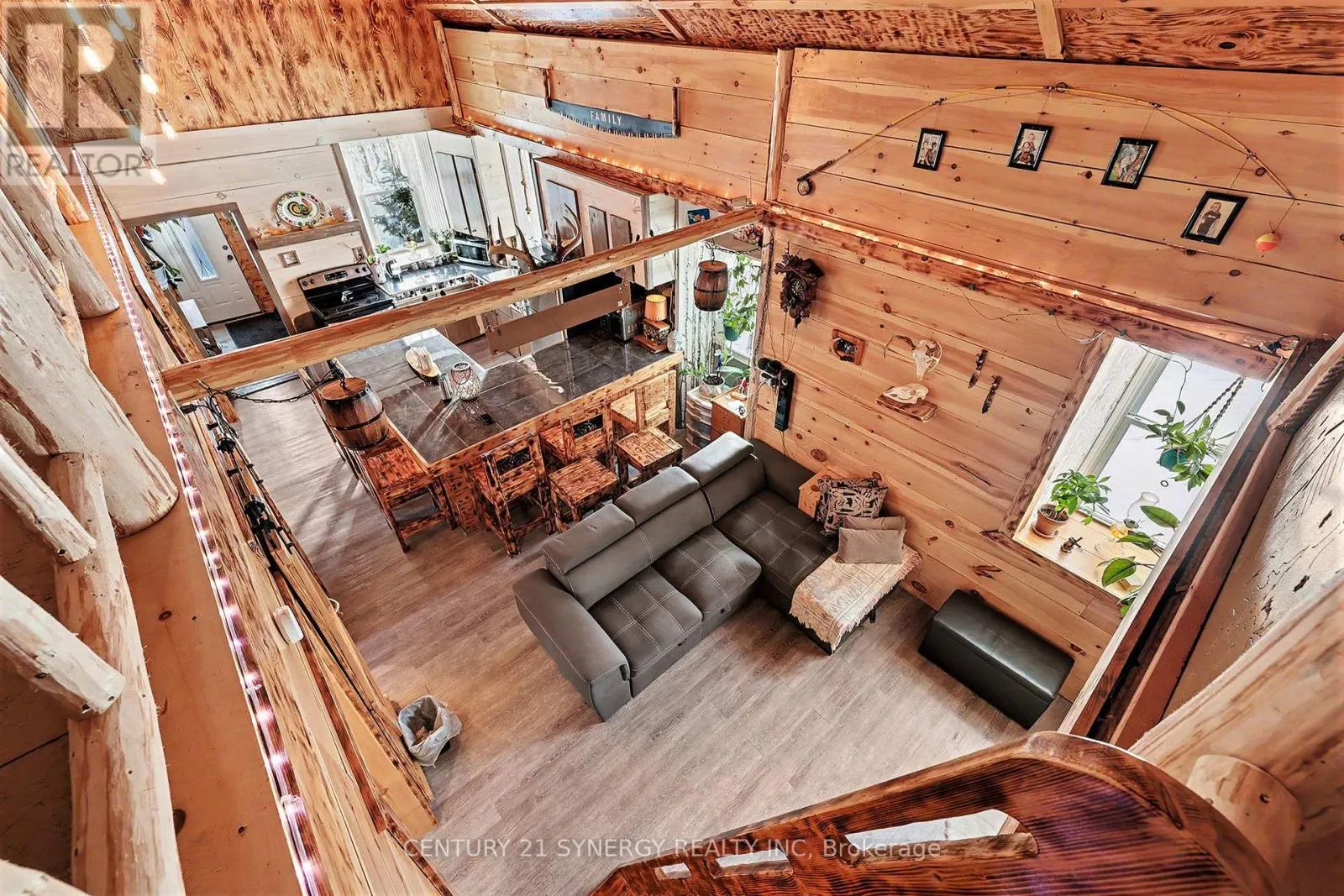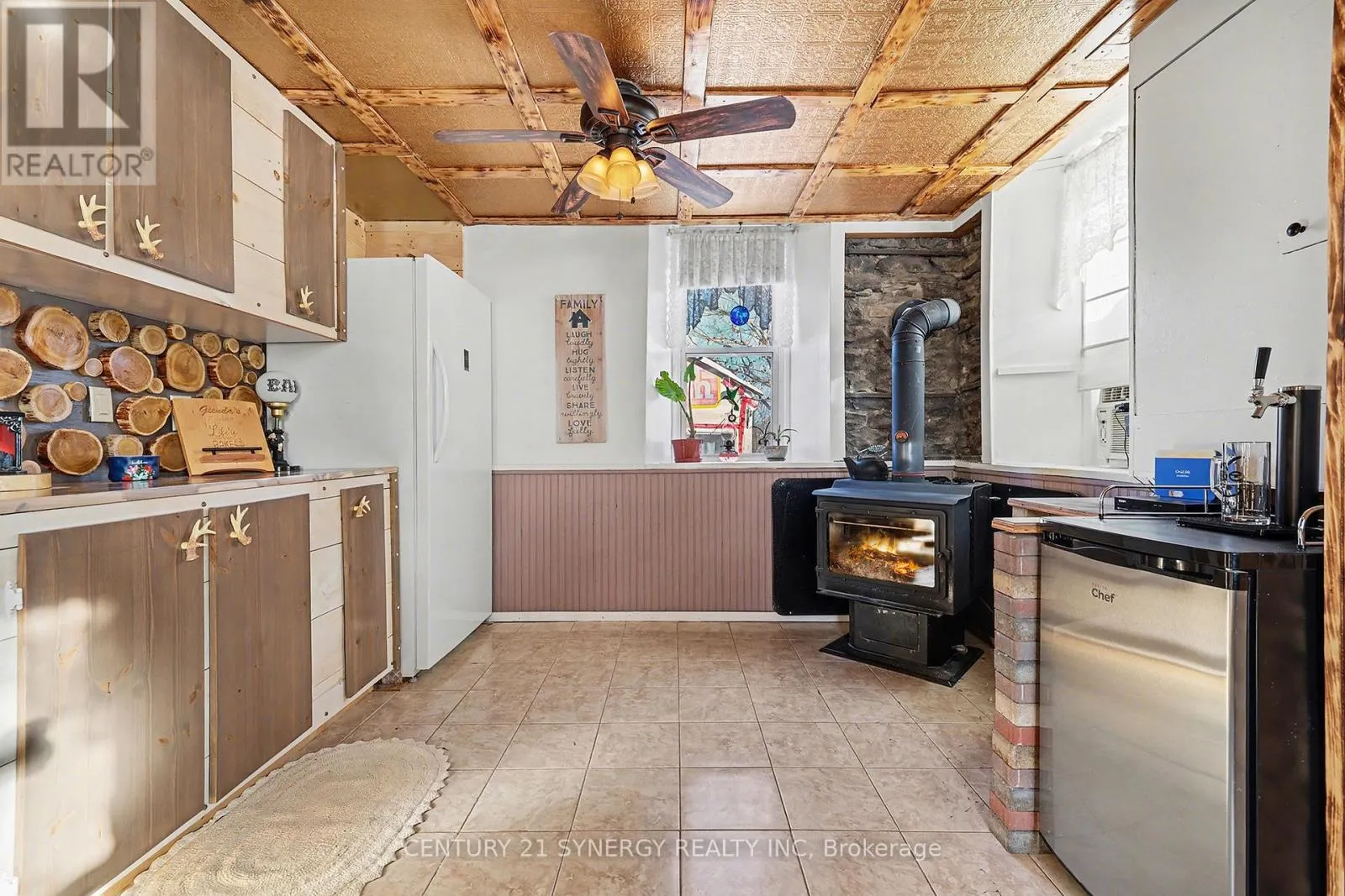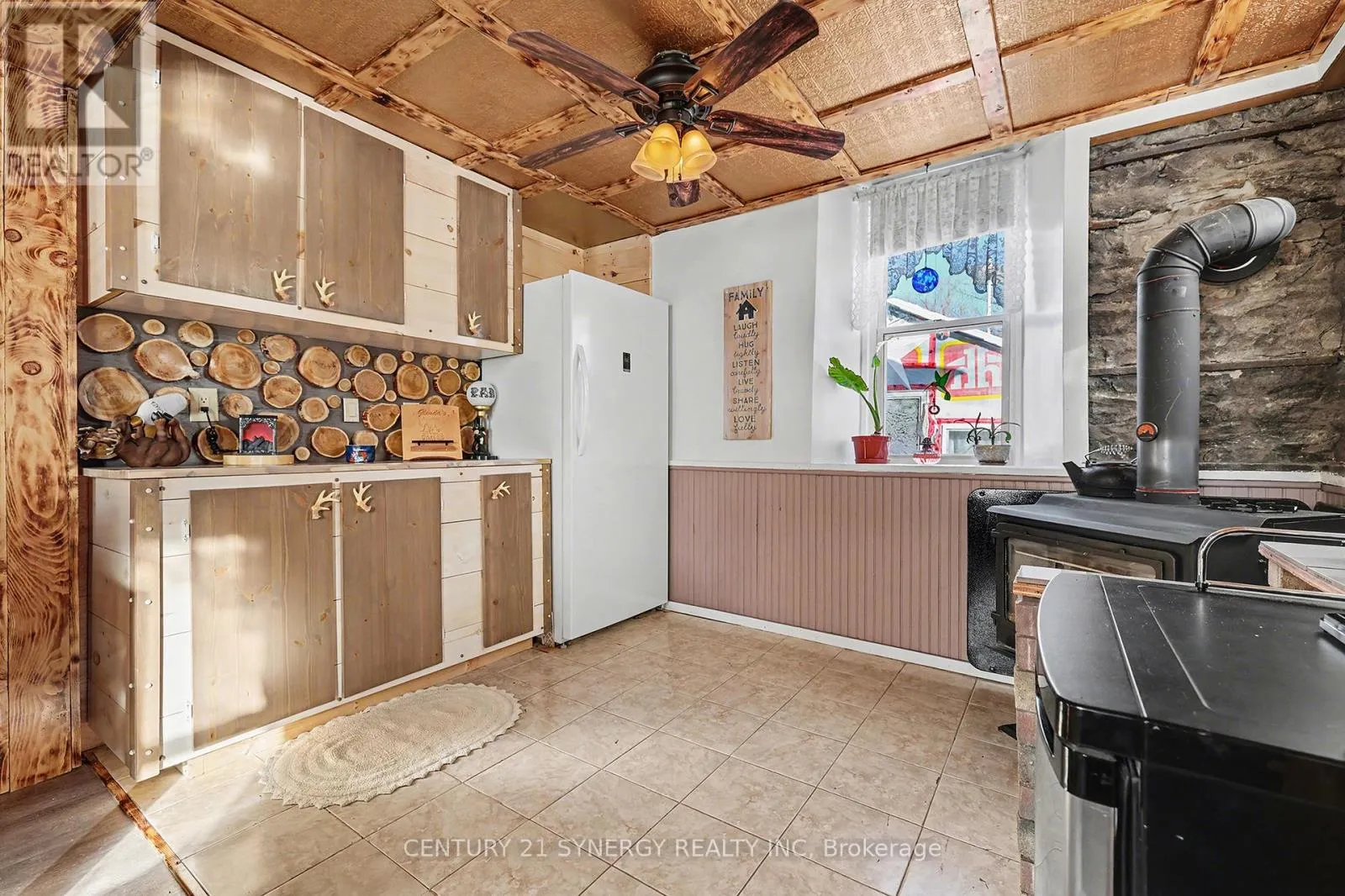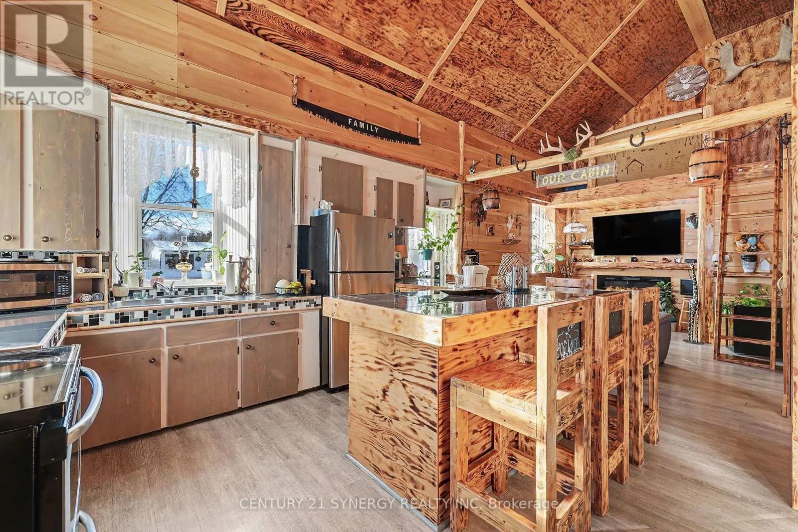 Cross Streets: County Road 29 & Kitley Line 4. ** Directions: South of Smiths Falls on County Road 29 till Newbliss, property is on the corner of County Road 29 and Kitley Line 4. Step into timeless charm with this beautifully and completely renovated stone home, originally built in 1875, where historic character meets modern comfort. From the moment you arrive, this one-of-a-kind property captivates with its solid stone construction, classic metal roof, and undeniable curb appeal. Inside, you'll be amazed at how much this small but mighty home offers. Thoughtfully designed for main-floor living, the layout maximizes every inch while maintaining warmth and flow. An open loft overlooking the main living space adds architectural interest and a sense of airy character, perfectly complementing the home's historic roots. This cozy yet impressive interior is heated efficiently by a charming woodstove, with two electric fireplaces providing convenient backup and ambiance. Every detail has been carefully considered-this home truly has everything you need, beautifully packed into a compact space. A new Eco Flow septic system (2014) provides peace of mind, while tasteful renovations throughout ensure modern functionality without sacrificing charm. Outside, the property continues to impress with ample outdoor space to relax, entertain, and enjoy country living. You'll find a spray-foamed charming garden shed and gazebo, multiple outbuildings, and a welcoming patio covered with an awning, perfect for summer evenings or morning coffee. The setting offers privacy, versatility, and endless possibilities for outdoor enjoyment. Located in Newbliss, just 10 minutes south from Smiths Falls, this rare gem offers the perfect blend of rural tranquility and nearby amenities. Rich in history, full of warmth, and brimming with character, this is more than a house-it's a true charm home that will impress in every way. (id:27476)