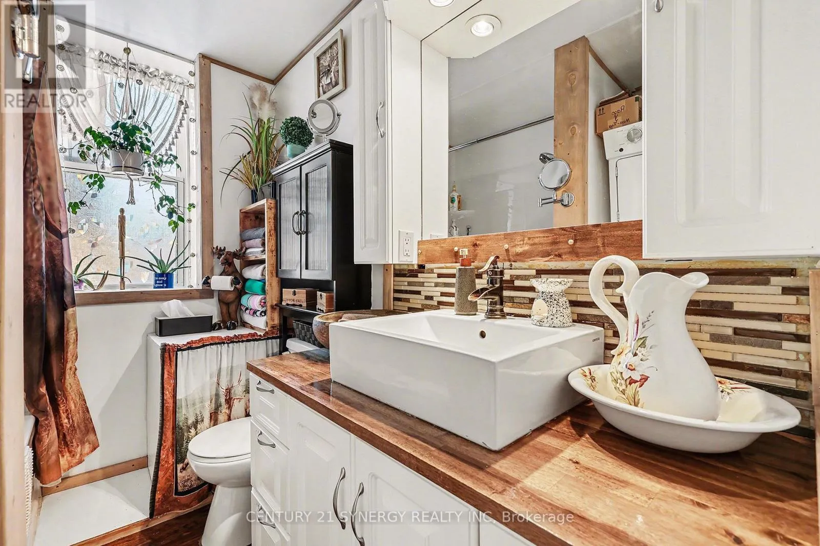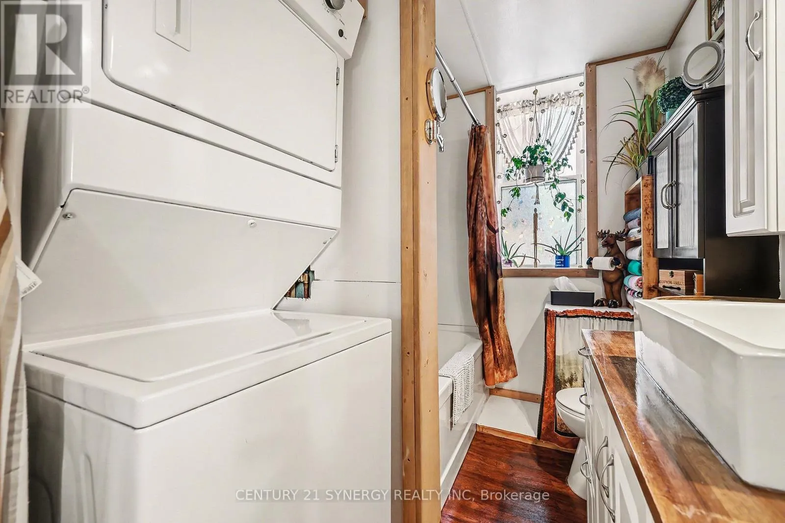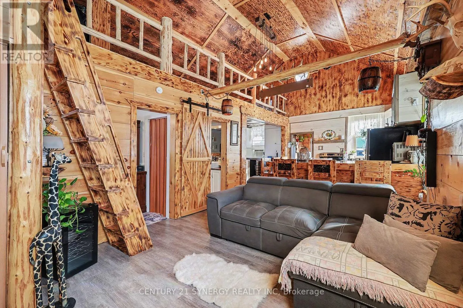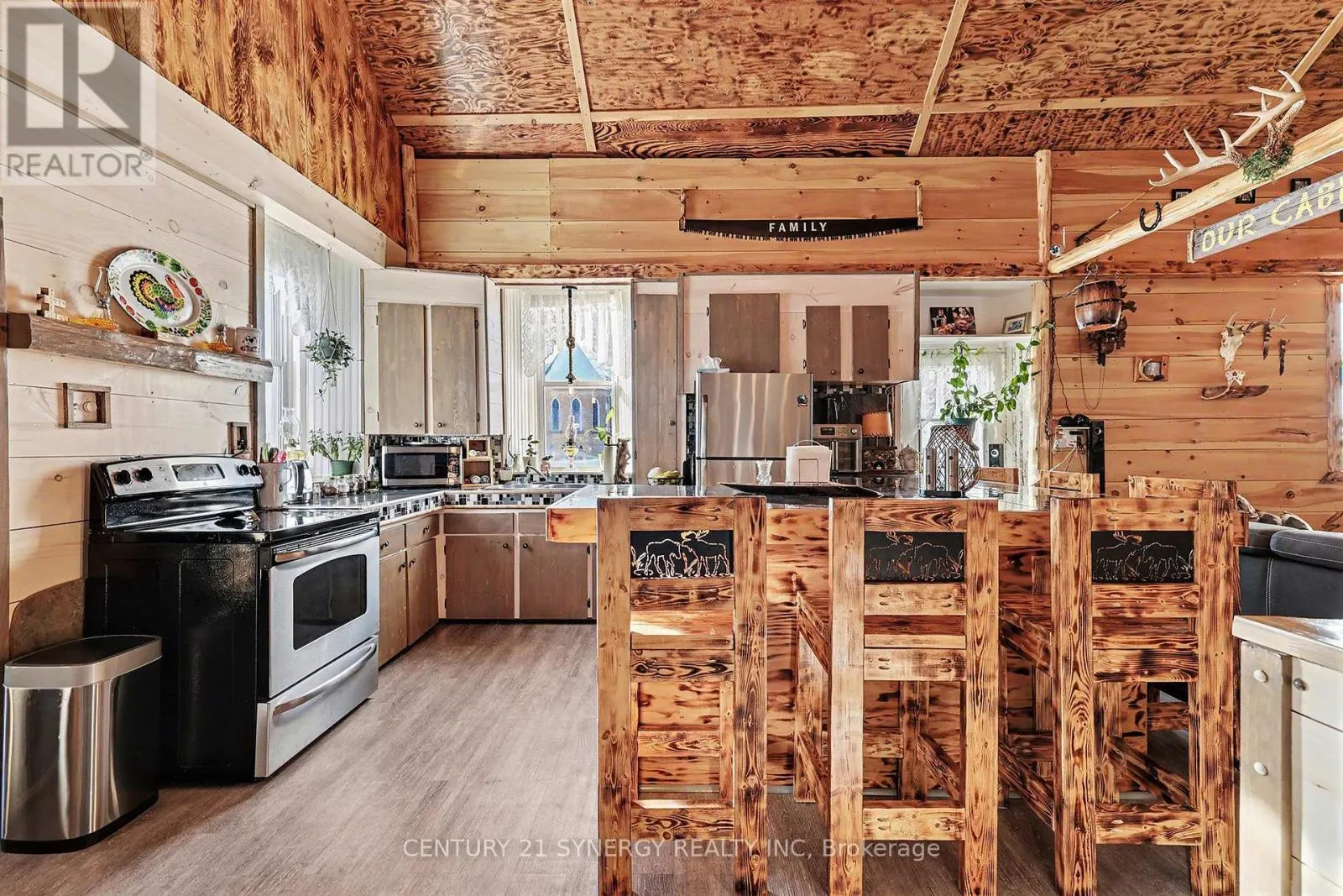 Cross Streets: County Road 29 & Kitley Line 4. ** Directions: South of Smiths Falls on County Road 29 till Newbliss, property is on the corner of County Road 29 and Kitley Line 4. Step into timeless charm with this beautifully and completely renovated stone home, originally built in 1875, where historic character meets modern comfort. From the moment you arrive, this one-of-a-kind property captivates with its solid stone construction, classic metal roof, and undeniable curb appeal. Inside, you'll be amazed at how much this small but mighty home offers. Thoughtfully designed for main-floor living, the layout maximizes every inch while maintaining warmth and flow. An open loft overlooking the main living space adds architectural interest and a sense of airy character, perfectly complementing the home's historic roots. This cozy yet impressive interior is heated efficiently by a charming woodstove, with two electric fireplaces providing convenient backup and ambiance. Every detail has been carefully considered-this home truly has everything you need, beautifully packed into a compact space. A new Eco Flow septic system (2014) provides peace of mind, while tasteful renovations throughout ensure modern functionality without sacrificing charm. Outside, the property continues to impress with ample outdoor space to relax, entertain, and enjoy country living. You'll find a spray-foamed charming garden shed and gazebo, multiple outbuildings, and a welcoming patio covered with an awning, perfect for summer evenings or morning coffee. The setting offers privacy, versatility, and endless possibilities for outdoor enjoyment. Located in Newbliss, just 10 minutes south from Smiths Falls, this rare gem offers the perfect blend of rural tranquility and nearby amenities. Rich in history, full of warmth, and brimming with character, this is more than a house-it's a true charm home that will impress in every way. (id:27476)