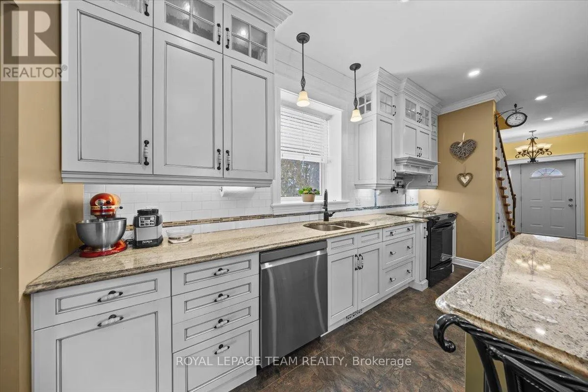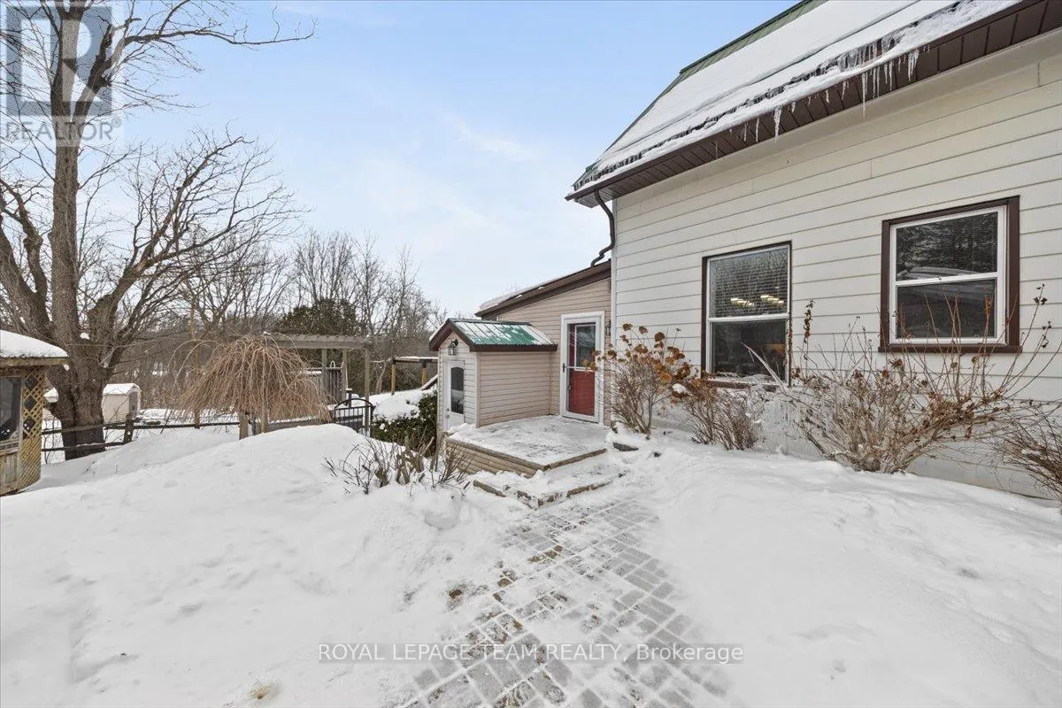 Cross Streets: Perth Street & Bay Street. ** Directions: From Stewart Blvd, proceed north from Brockville to Centennial Road/County Road 27. Turn left and follow County Rd. 27 (approx 5 kms) to Lyn. Turn right onto Perth St. (County Rd 46). Go 500m. House is on the left. This professionally renovated century home sits on a picturesque 1.2-acre lot, less than 15 minutes to all the amenities Brockville has to offer. Step inside the main entrance and be greeted by beautiful French doors leading into a formal sitting room with custom built-ins. The bright and spacious space flows seamlessly into the open-concept kitchen and dining area, featuring granite countertops, a centre island, custom cabinetry throughout, and an abundance of thoughtfully integrated storage. The main floor also includes convenient laundry and an informal living room at the back of the home, creating the perfect space for everyday living and relaxation. With 3 bedrooms and 2 bathrooms, this home combines classic charm with smart, modern updates. Step outside to enjoy a two-tiered deck with integrated pool and pergola-covered hot tub, ideal for entertaining or unwinding. Additional highlights include a workshop, gazebo, separate storage shed, and basement, offering ample space for hobbies and storage. (id:27476)