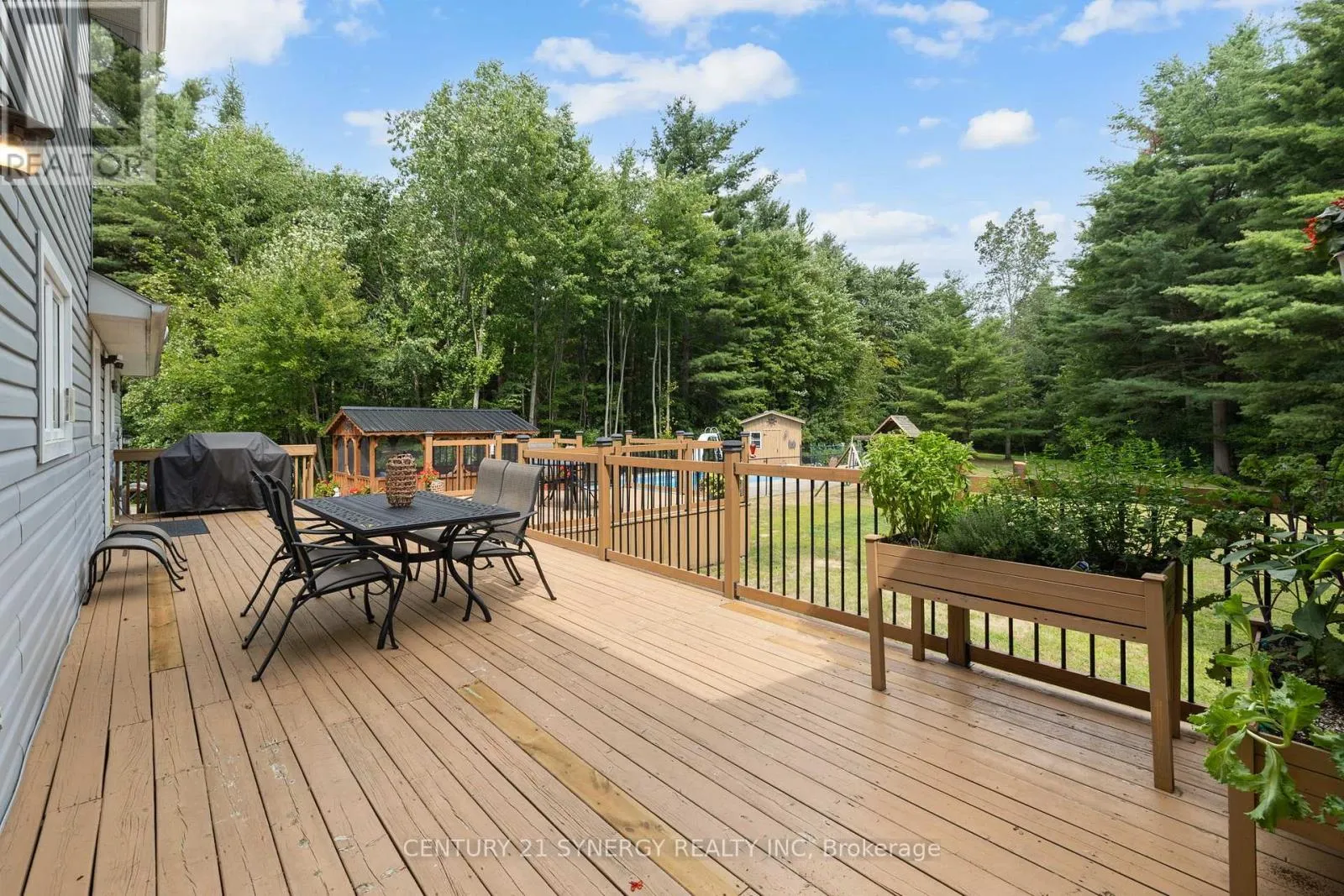 Cross Streets: DEBRUGE ROAD AND HAGGARTS SIDE ROAD. ** Directions: From Brockville Head North on County Road 29 Toward Tincap. Turn Right on Debruge Road. Drive past the Mac Johnson Wildlife Entrance and turn left onto Haggarts Side Road. 4621 Will be on the right hand side. The Best of Country Living, Just Minutes from Town! Set on 49 picturesque acres, this 4+1 bedroom, 4-bathroom home offers the perfect balance of privacy and convenience, only 5 minutes from Brockville and walking distance to the Mac Johnson Wildlife Area. Surrounded by hardwoods and stately pines, the property fronts on both Haggarts Side Road and Debruge Road, creating a truly scenic retreat. The main floor features an open kitchen, dining, and living area ideal for family living and entertaining leading to a bright 3-season screened-in sunroom and a private backyard oasis with expansive deck and in-ground pool. A formal living room, spacious den/foyer, laundry room, and updated powder room (2023) complete the level. Upstairs, find four generous bedrooms including a primary suite with walk-in closet and ensuite, plus a large family bath.The finished lower level offers a huge rec room with a corner gas stove, wet bar, and office, along with inside entry to the 2-car garage accessible from both levels. Outdoor living is a dream with the heated pool (2022), chlorinator (2023), new pool pump and solar blanket (2025), screened wood gazebo (2022), gas fireplace, and a children's play structure with swings, slide, and teeter-totter. Recent updates ensure modern comfort and peace of mind: stainless steel appliances (2022), kitchen backsplash and smoke detectors (2023), heat pump and sump pump (2024), backup sump pump battery (2025).This is more than a home, its a lifestyle. Enjoy space, comfort, and nature at your doorstep, with all amenities just minutes away. (id:27476)
