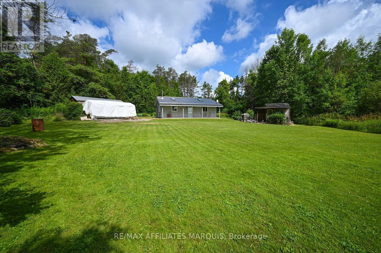 Cross Streets: Drummond Rd. and County Rd .8. ** Directions: Once in Toledo follow County Rd. 8 west to #103 on left. Discover the perfect blend of peaceful seclusion and modern comfort at this charming year-round home set on 1.44 acres of landscaped and private grounds. Whether you're seeking a serene retreat or looking to downsize in style, this property offers the ideal low-maintenance lifestyle in the country. Set well back from the road and surrounded by mature trees and lush perennial gardens, this home offers tranquility and privacy with views of picturesque Bellamy Lake. Enjoy morning coffee from the inviting front porch, where you can take in the beauty of nature in every season. The fully renovated interior is both stylish and functional, with wide plank flooring and thoughtful updates throughout. The bright, open-concept kitchen features quartz countertops, ample cabinetry, and a clean, modern design. The spacious bathroom includes in-unit laundry for added convenience, and radiant heat flooring. Cozy up by the propane fireplace or wood stove on cooler days perfect for year-round comfort. With main floor living, this home is perfect for downsizers or those seeking a relaxed, accessible layout. The property also includes a 12' x 24' shed with a reinforced floor, providing excellent storage for tools, toys, outdoor gear, or hobby space. There's plenty of room for gardening, outdoor entertaining, or simply enjoying the peace and quiet. Located just minutes from the public boat launch at Bellamy Lake and within a short drive to several other spectacular lakes and golf courses of the Rideau Lakes Region, outdoor enthusiasts will feel right at home. Everyday essentials are just a short drive away only 5 minutes to the friendly Village of Toledo and 10 minutes to charming Athens. This is a rare opportunity to own a turn-key escape that blends comfort, convenience, and natural beauty in one of Eastern Ontario's most scenic regions. Don't miss your chance to make this exceptional property your own a true hidden gem with views you'll never tire of. (id:27476)