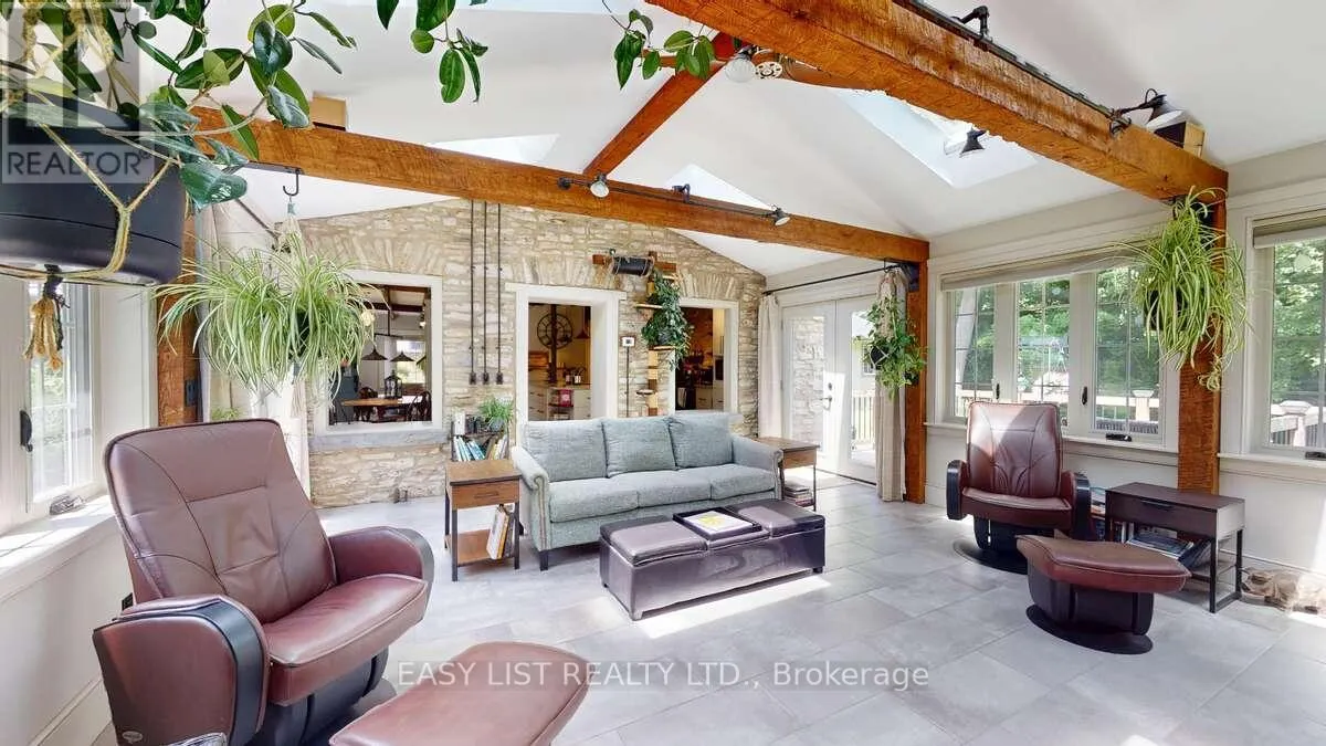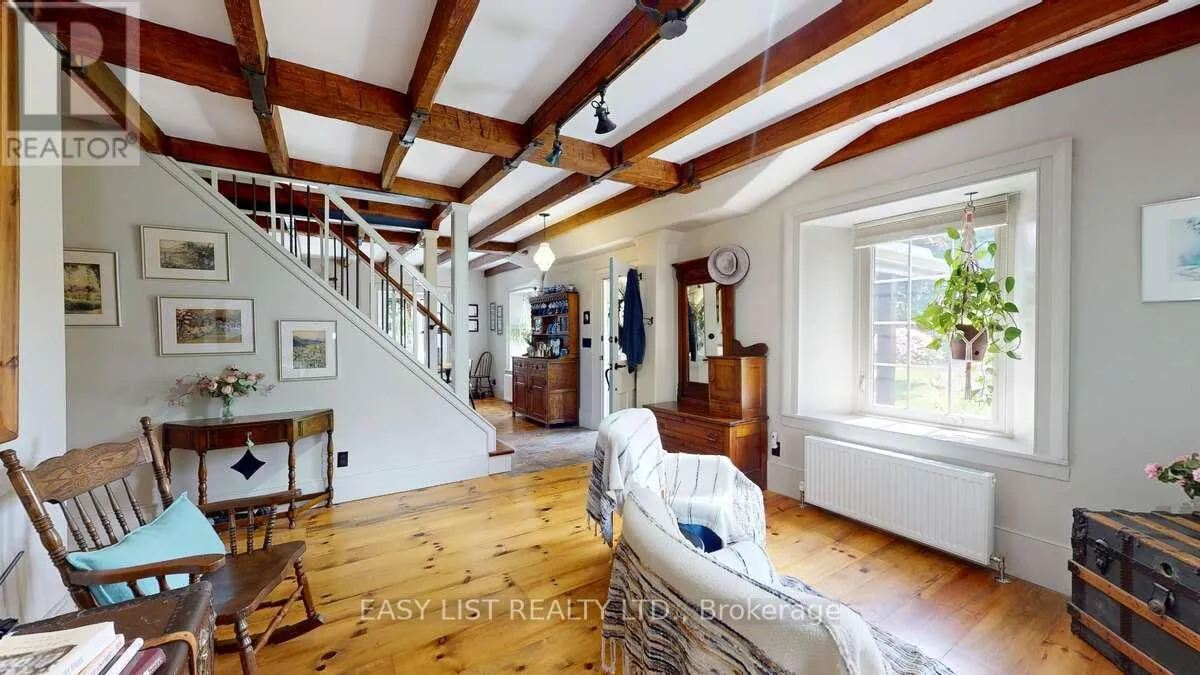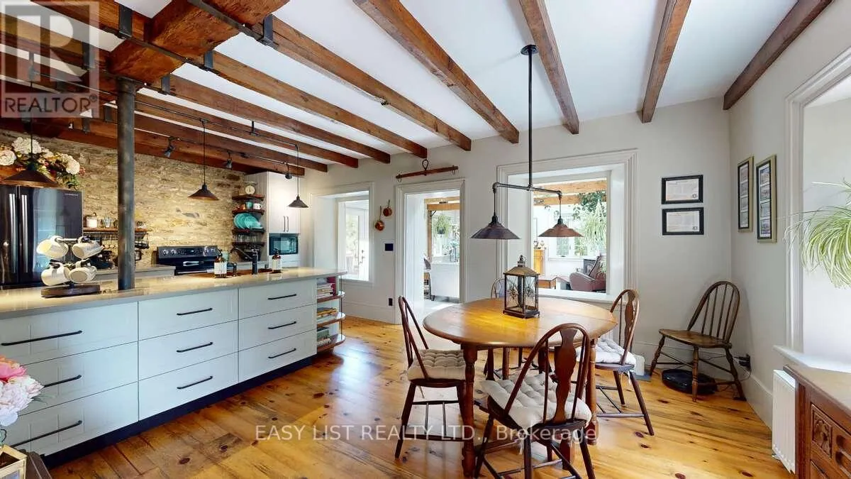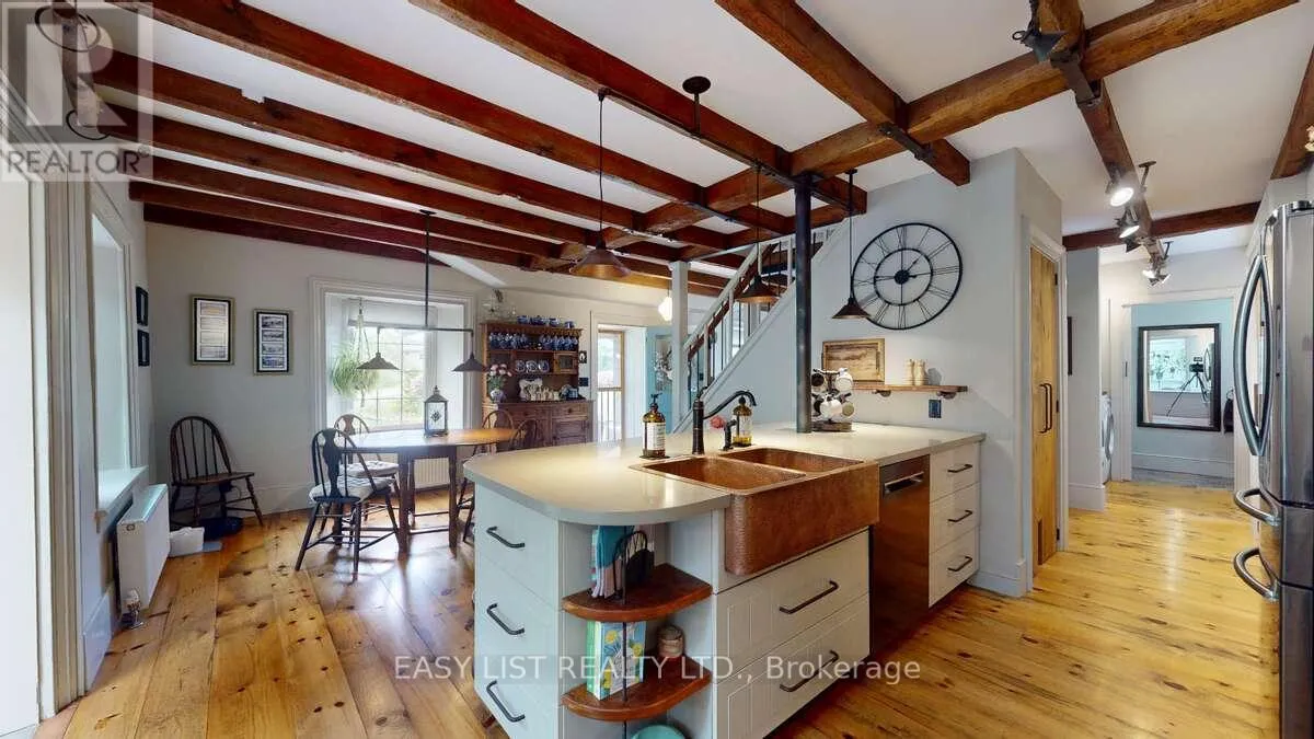 Country Rd 27 *** Visit the REALTOR website for further information about this Listing *** Beauty and seclusion combine to showcase this completely renovated 1830s fieldstone home, privately nestled at the end of a winding driveway on 8.8 acres of mature trees, perennial and vegetable gardens. The exterior stonework, hidden for a century, has been painstakingly restored while the interior updates include modernized mechanical systems and windows, all while preserving the charm of the original doors and trims. The main level showcases exposed beams, plank wood floors, a well-appointed kitchen, featuring a copper farmhouse sink, handcrafted cabinetry hardware, and custom lighting which extends into the adjoining dining room. A stunning stone wall is the backdrop to the adjacent great room, boasting a cathedral ceiling, skylights, in-floor radiant heat, and a pellet stove, with deck access overlooking serene gardens and a seasonal pond. A den/flex room, laundry/mudroom, and powder room complete this level in the main house. Upstairs finds a spacious primary bedroom with a 3-piece ensuite, two additional bedrooms (one currently used as an office), and a main 4-piece bathroom. Accessible from the main house, but also with its own separate entrance and generous deck, is a self-contained 950 sq ft secondary suite offering a huge main bedroom with sitting area, 3-piece bath, kitchen, powder room, and a combined living/dining area with a propane fireplace, making it perfect for today's multi-generational living. The property includes a large barn, ideal for storage and workshop space, plus two 12'x24' Amish Sheds (one used as a garage) and a smaller 10'x24' ideal for garden mower and tools. This exceptional home is conveniently located 10 minutes from Brockville, 45 minutes from Kingston, and 1.5 hours from Ottawa. (id:27476)