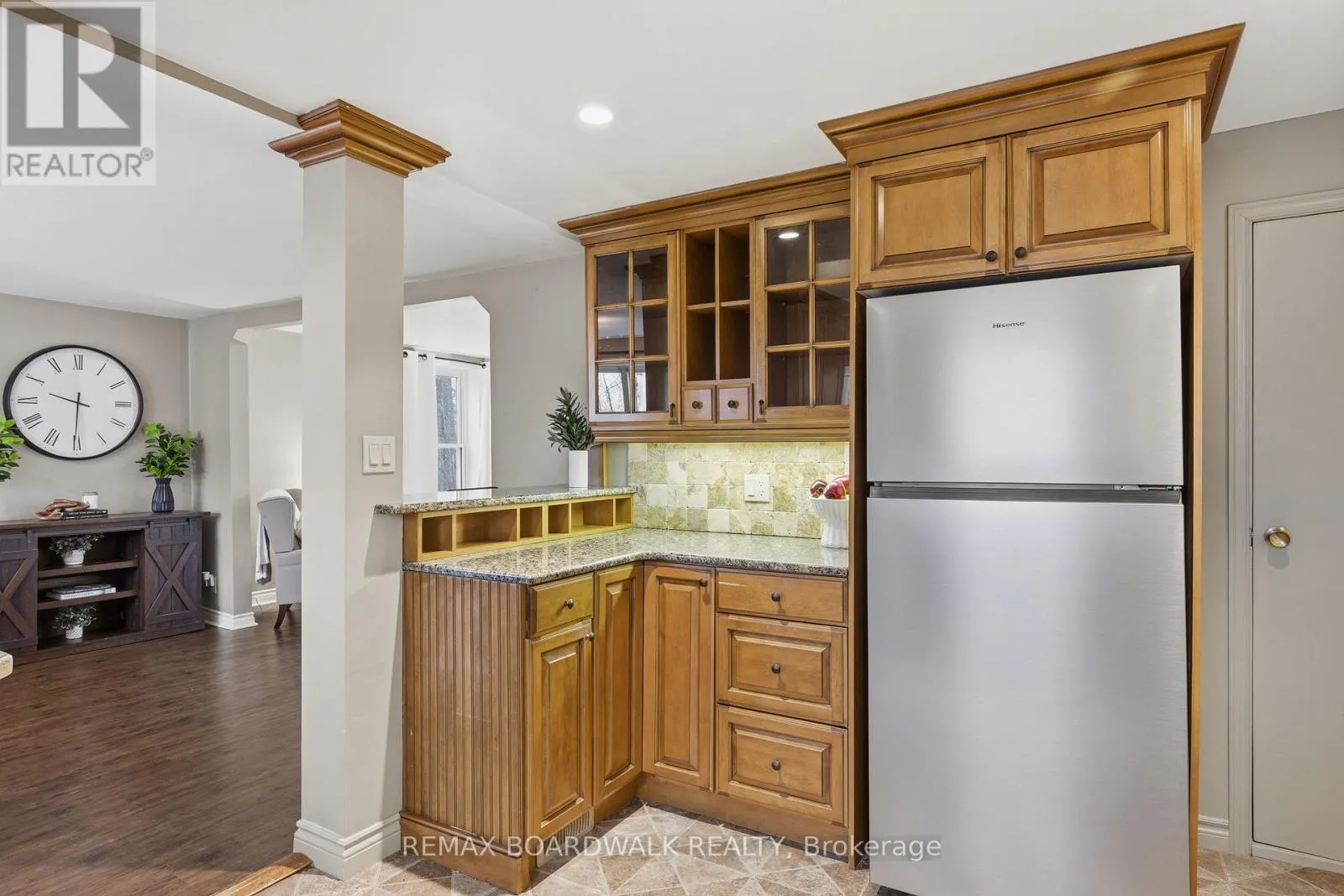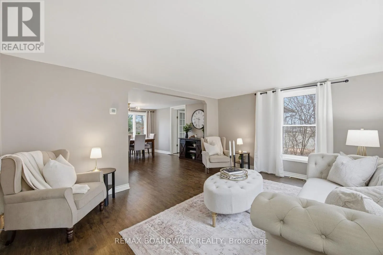 Cross Streets: Centennial Road/Stewart Blvd. ** Directions: From HWY 401 - Take Brockville/Smiths Falls Exit/Stewart BLVD - Continue north on Stewart and house is shortly past the lights on the left hand side after Centennial Rd. Tucked away on a beautifully treed 1.36-acre lot within the City of Brockville, this property is the definition of unexpected space and versatility. Set well back from Stewart Blvd and surrounded by lush gardens, this home offers a rare blend of privacy, charm, and modern updates-all while keeping you close to amenities. Step inside and discover a home that goes far beyond first impressions. The thoughtfully updated interior features a bright open-concept living, dining, and kitchen space, perfect for everyday living and entertaining. The kitchen has been refreshed and pairs seamlessly with the main living area, creating a warm and inviting flow throughout.The main floor also offers a spacious family room or could also be a 5th bedroom, complete with a updated 3-piece ensuite and direct access to the back deck-ideal for multi-generational living or a private primary suite. With four bedrooms plus a bonus office/den, there's flexibility here for growing families, remote work, or hosting guests.Upstairs, you'll find additional bedrooms, an updated bathroom, and touches of character with original pine and hardwood flooring that add warmth and history to the home.Step outside and you'll truly appreciate what sets this property apart. The backyard is a private oasis, with mature trees, curated gardens, and a peaceful setting that makes you forget you're in the city. Whether you're enjoying your morning coffee on the deck or entertaining in the warmer months, this outdoor space delivers. Additional updates include: furnace (2013), A/C (2002), spray foam insulation in the basement, water heater (2021), appliances (2025), updated bathroom flooring (2026) New Well (2019).The detached garage, currently configured as a two-room workshop, offers endless potential-easily converted back to garage space or tailored to suit your needs. A rare opportunity to own a spacious, updated home on a large in-town lot-where privacy, character, and convenience come together seamlessly. (id:27476)