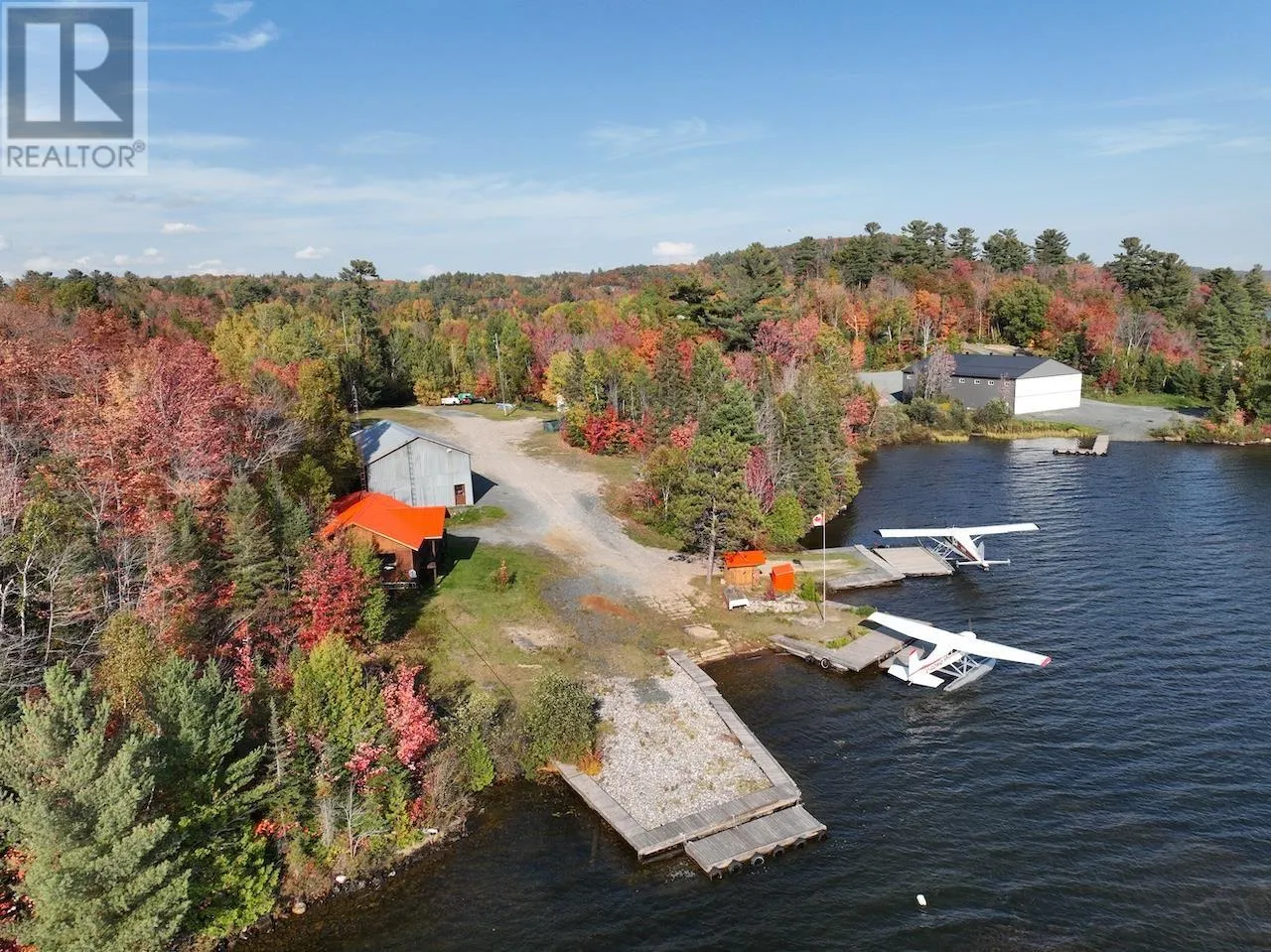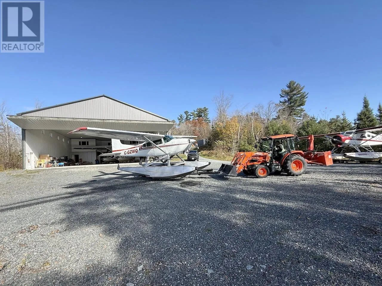 Hwy 108 at Elliot Lake to Timber Road This Timber Road, Elliot Lake sea base and private hangar facility offers great opportunity for a local business to provide float plane related services to the vast lake filled regions to the north, west and east of this property. Situated in a paradise of mostly fly-in only access lakes, this location is ideal for providing client, charter and sight seeing float plane services to the local communities and wider region. Complete with two dock areas (seasonal operations and storage/off season hangar building dock), newer 2021 hangar 60' x 90' complete with a part loft for a pilot rest & storage area as well as a seasonal operations section of the property for the office/reception, client lounge, parking lot and storage buildings. See the aerial video tour on-line plus schematic floor plans and more information is available on request. Please allow at least one day advance notice for showing bookings. (id:27476)