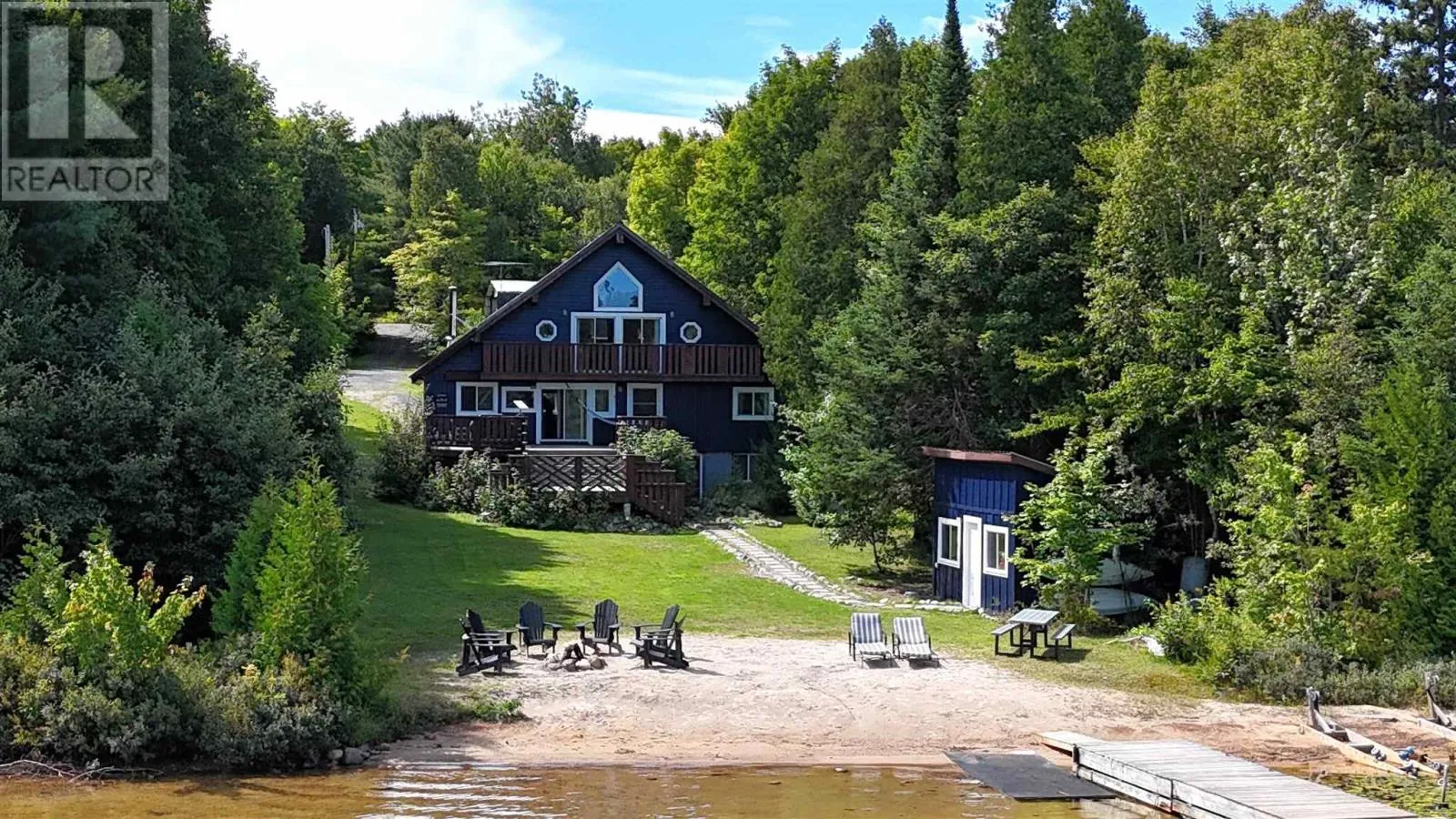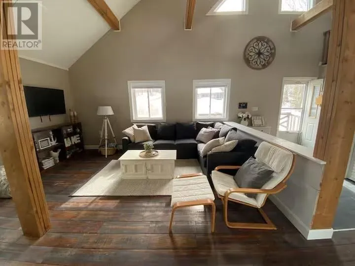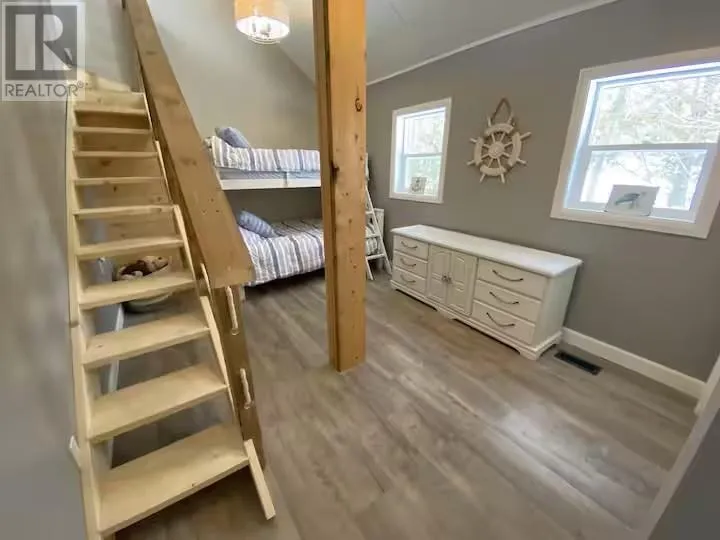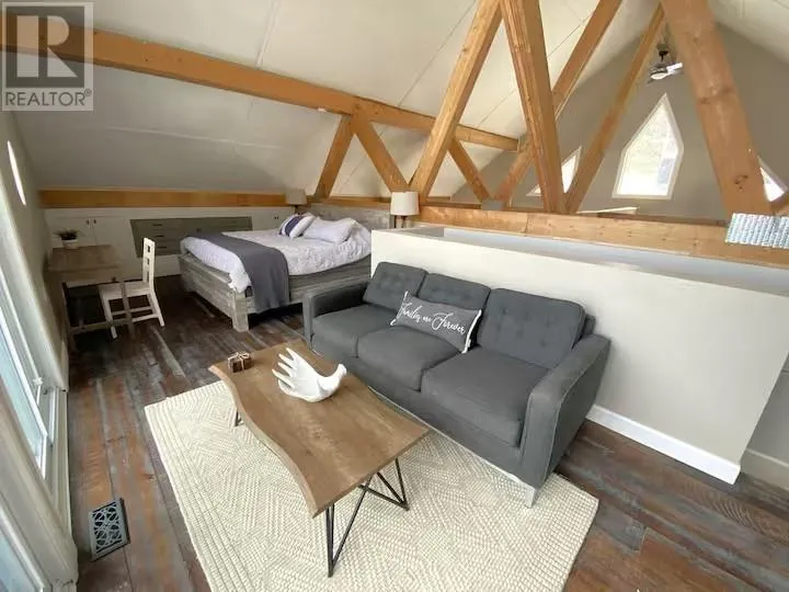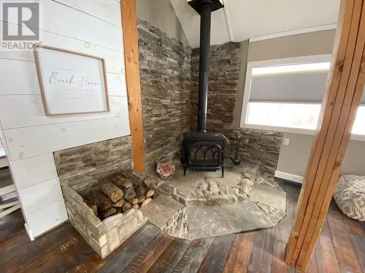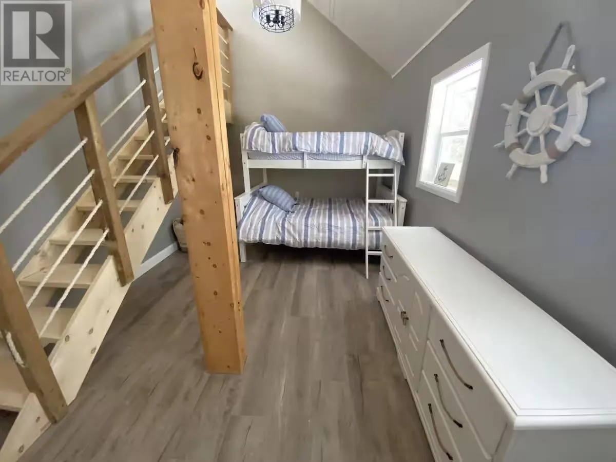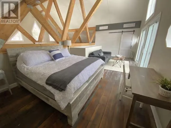 Experience the pinnacle of waterfront living with this recently remodeled, one-of-a-kind residence, set on nearly an acre of pristine land with its own private beach and unobstructed lake views. Designed with a sophisticated nautical influence, this remarkable home offers the option to be purchased fully furnishedâcreating a seamless, turnkey opportunity. The open-concept main floor impresses with Norwegian pine floors, dramatic 25-foot vaulted ceilings with exposed beams, and a statement wood stove, creating a striking yet inviting atmosphere. A thoughtfully designed childrenâs suite features its own loft hideaway, while a second main floor bedroom features double closets and tranquil lake views. The spa-inspired bathroom elevates daily living with a double vanity, heated floors, walk-in shower, and deep soaker tub. Ascend to the private master loft retreat, where an elegantly updated ensuite complements a serene balcony overlooking the quiet bay. The lower level, with a convenient walkout, provides a blank canvas for additional living space, a wellness studio, or an entertainment haven. Modern comforts include propane forced-air heating (new Feb 2026), a newer septic system, and advanced water filtration. Outdoors, enjoy ample parking, along with a detached garage featuring upper storage. Turnkey, exclusive, and only 10 minutes to downtownâyour private lakeside sanctuary awaits! (id:27476)