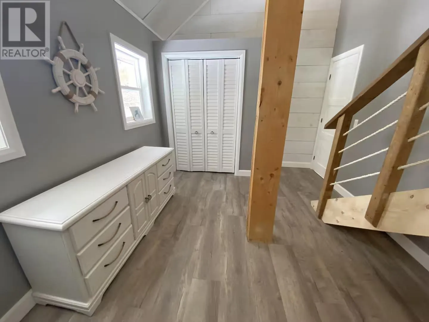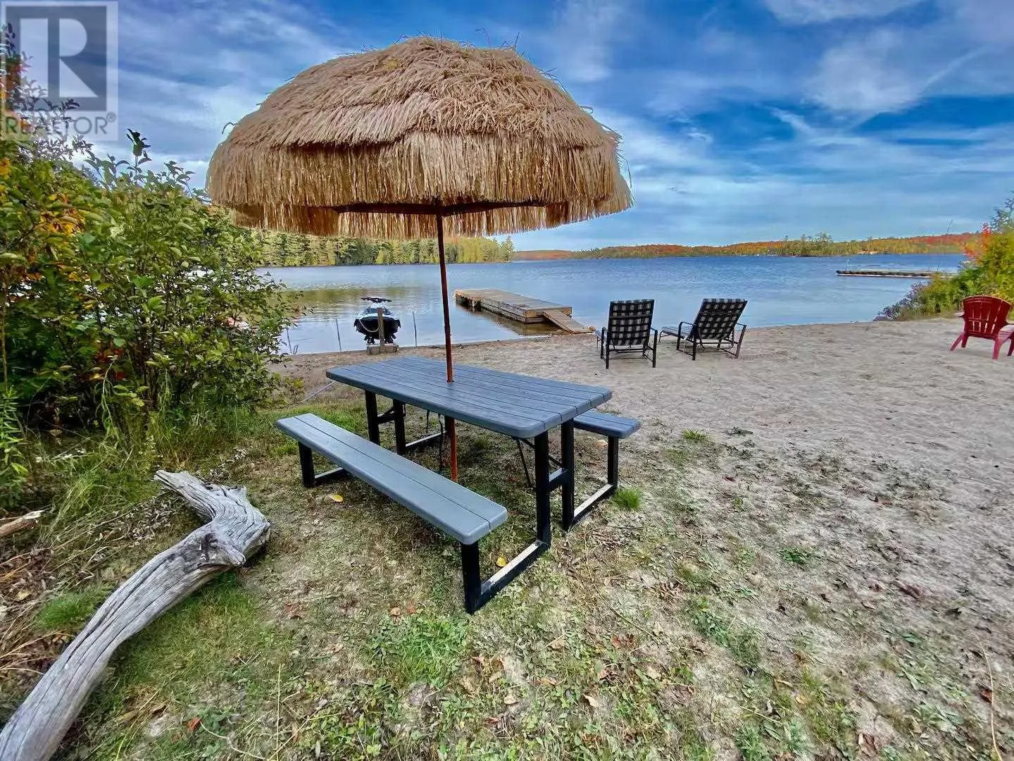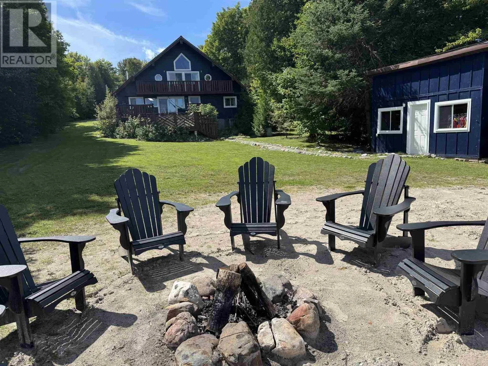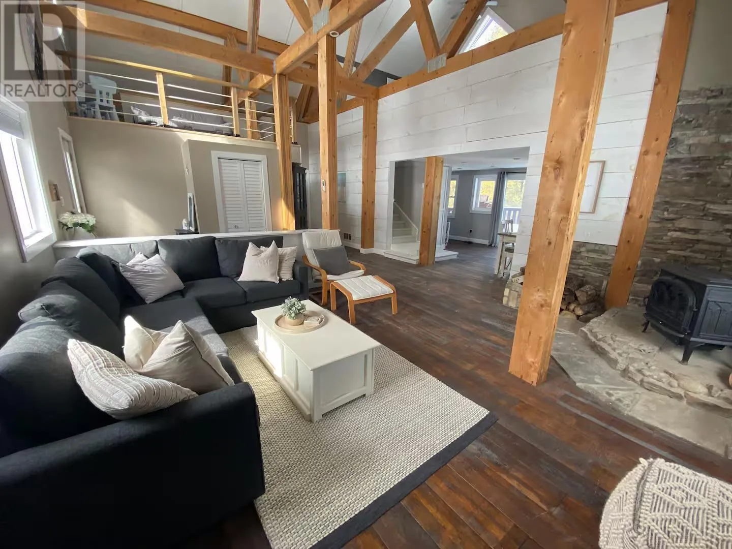 Experience the pinnacle of waterfront living with this recently remodeled, one-of-a-kind residence, set on nearly an acre of pristine land with its own private beach and unobstructed lake views. Designed with a sophisticated nautical influence, this remarkable home offers the option to be purchased fully furnishedâcreating a seamless, turnkey opportunity. The open-concept main floor impresses with Norwegian pine floors, dramatic 25-foot vaulted ceilings with exposed beams, and a statement wood stove, creating a striking yet inviting atmosphere. A thoughtfully designed childrenâs suite features its own loft hideaway, while a second main floor bedroom features double closets and tranquil lake views. The spa-inspired bathroom elevates daily living with a double vanity, heated floors, walk-in shower, and deep soaker tub. Ascend to the private master loft retreat, where an elegantly updated ensuite complements a serene balcony overlooking the quiet bay. The lower level, with a convenient walkout, provides a blank canvas for additional living space, a wellness studio, or an entertainment haven. Modern comforts include propane forced-air heating (new Feb 2026), a newer septic system, and advanced water filtration. Outdoors, enjoy ample parking, along with a detached garage featuring upper storage. Turnkey, exclusive, and only 10 minutes to downtownâyour private lakeside sanctuary awaits! (id:27476)