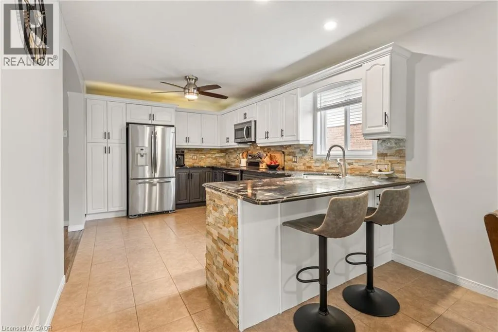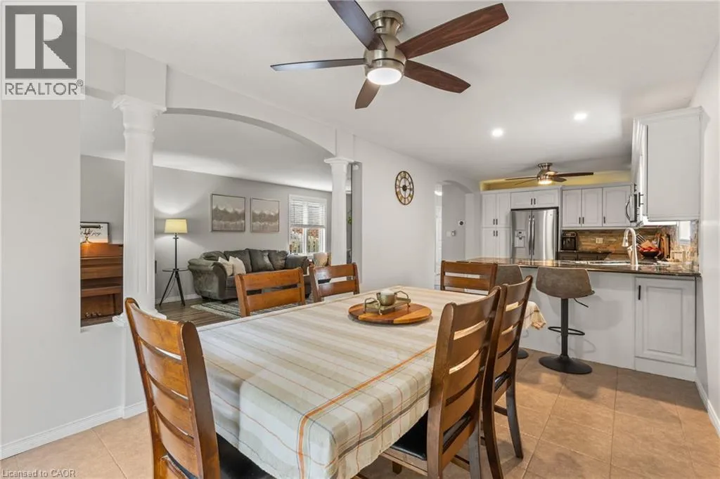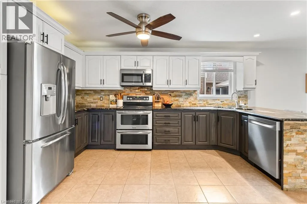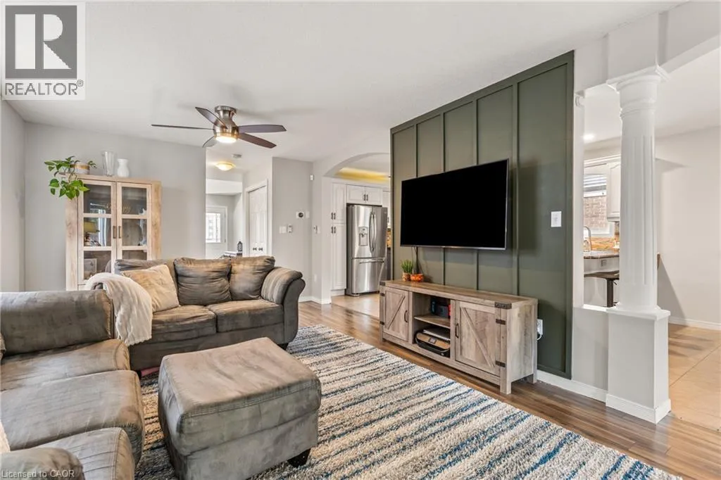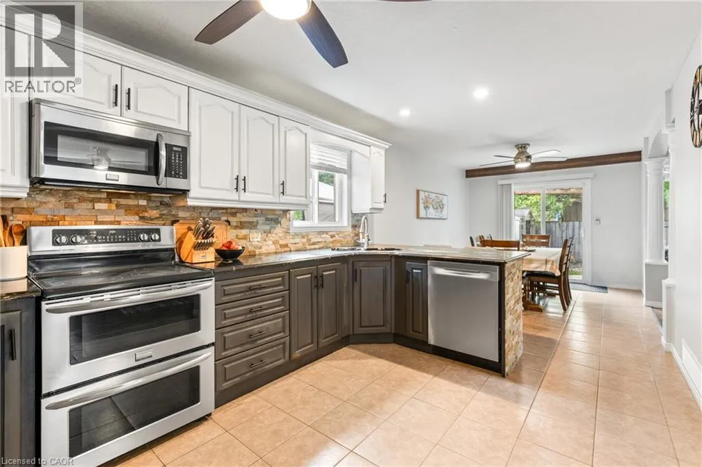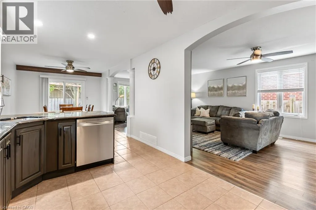 Near KILLDEER Road Looking for some more space for your growing family? Look no further! This nearly 2000 square foot Claysam Home is just what you have been waiting for! Located in desirable Elmira, this home is sure to please. Walk through your double door entry and you are immediately greeted by a grand 2 storey foyer with beautiful windows streaming with light. Freshly painted (2025) throughout, the open concept main floor is ideal for entertaining. The large kitchen features beautiful granite counter tops, stone backsplash and stainless steel appliances; including a double oven! Eat at your breakfast bar with plenty of room in your dining area. The large living room is great for relaxing with the family. Sliders lead to your fully fenced yard with a spacious deck, pergola and covered BBQ area. The upper level has 3 good sized bedrooms. The Primary room features double door entry, walk in closet and luxurious 5 piece bathroom with 2 good sized windows. The upper level also includes a 4 piece bathroom and a laundry room with an oversized sink and lots of storage. The basement features a new 3 piece bathroom (2025). Large rec room and two additional bedrooms. Some updates include: Dishwasher (2025) , some new windows (2025), Basement (2023), Roof (2018) and more. Garage is 1 1/4. Donât miss it! (id:27476)