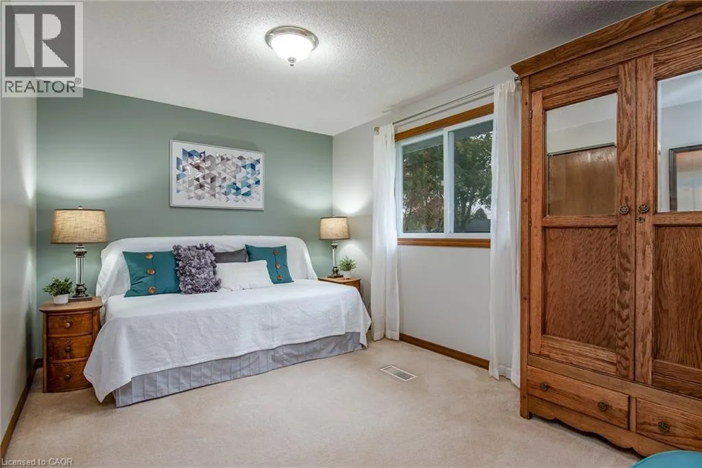 Barnswallow to Kingfisher, right on Crane Drive (turns into Peregrine). Are you looking for a practical home for raising a family? This four level backsplit is perfect for you! The open concept from the main level to the cozy lower level family room with gas fireplace is ideal for a young family. There is a 4th bedroom or office with a large window on this level as well as a 3 pc. bathroom. The main floor consists of a spacious living room with large picture window overlooking the park area across the street and a separate dining room. The eat-in kitchen offers lots of counter space, extra cabinetry and a generous dining area with sliding door leading to the concrete patio and fantastic fenced back yard, finished with 'TURF' (very low maintenance!) and a newer vinyl shed. The upper level offers a spacious primary bedroom with cheater ensuite and two other bedrooms. The lower level is unfinished and offers lots of storage. There is also a large double garage and double wide+ concrete driveway (2022). The metal roof was installed in 2021 and there's a newer furnace and central air (2024). Call for details or a viewing. (id:27476)