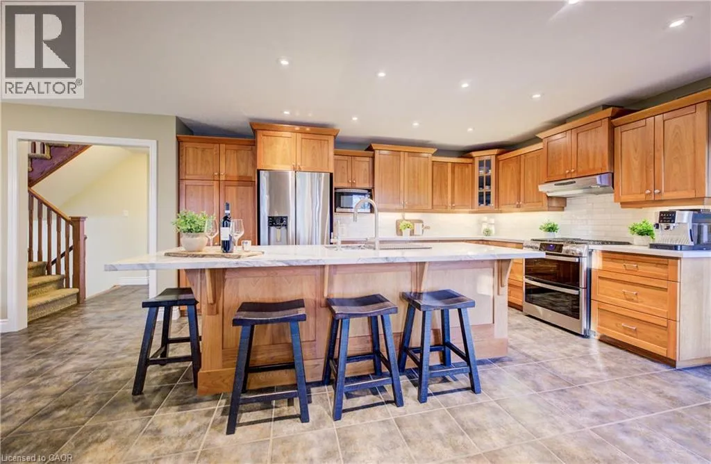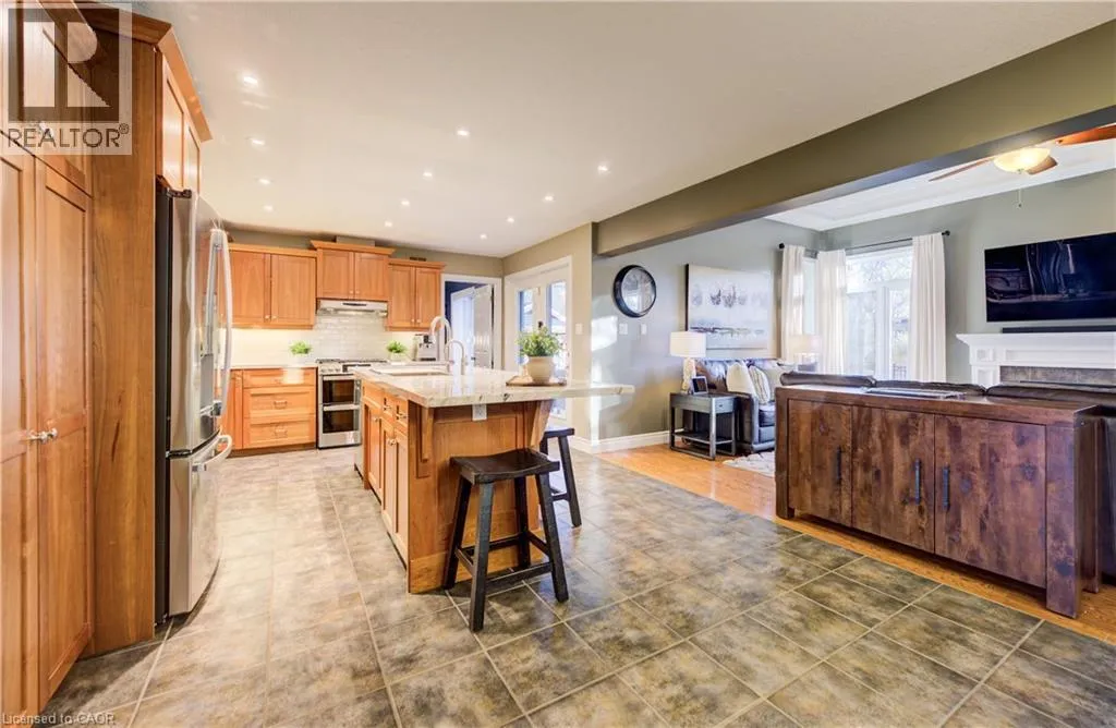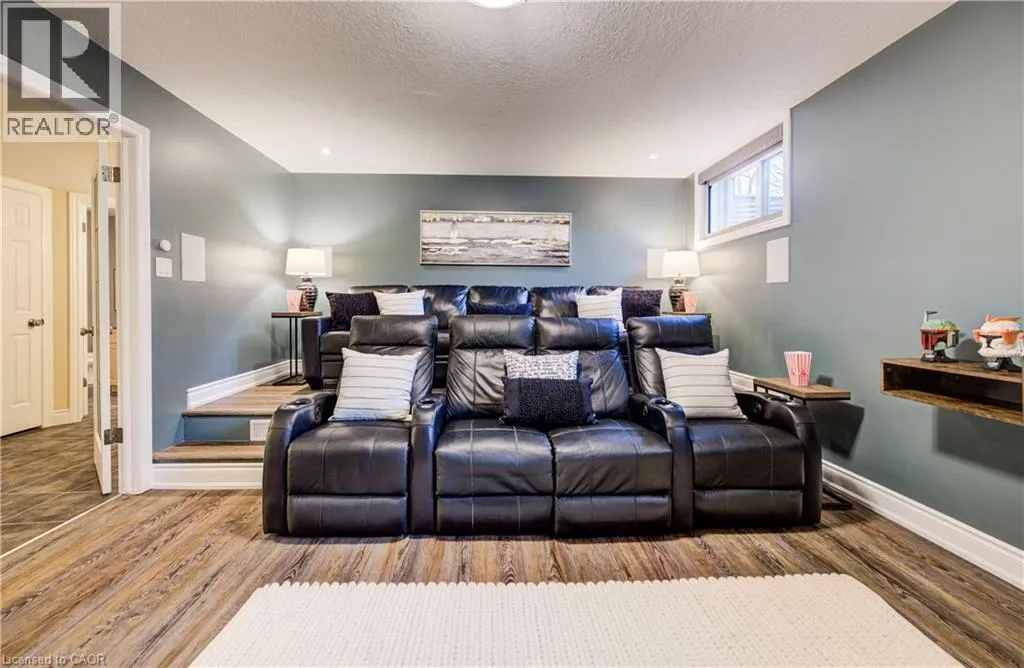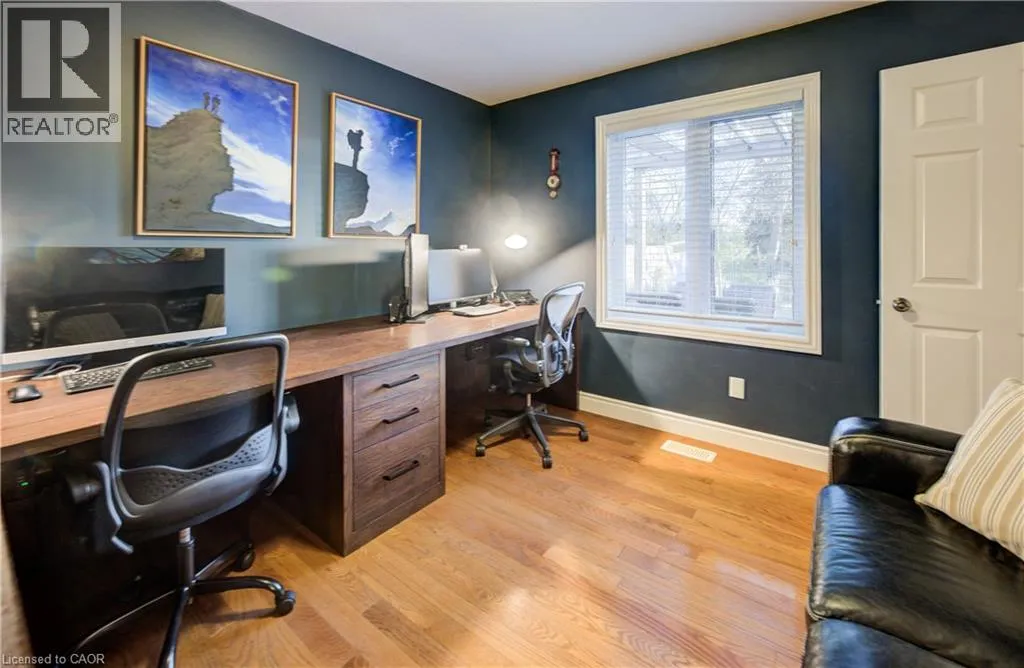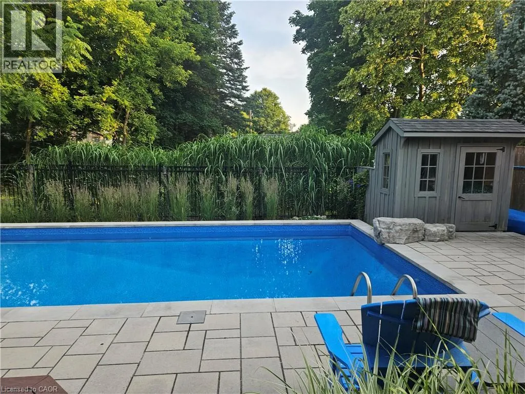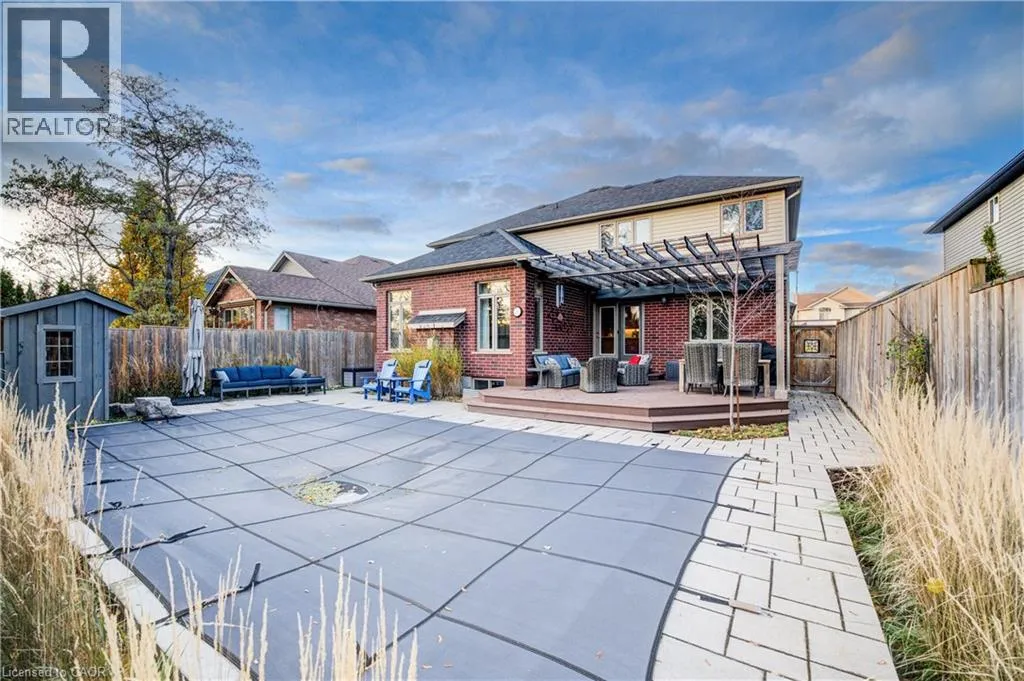 Barnswallow to Brookmead Welcome to this stunning 2-storey home that seamlessly blends modern comfort, thoughtful design, and an incredible backyard oasis. With 4 spacious bedrooms and 4 bathrooms, including a luxurious 5-piece primary ensuite, this home provides ample room for both family living and hosting guests. The bright, open-concept kitchen is a chefâs dream, showcasing a large 10â island, stylish backsplash, quartz & quartzite counters, and patio doors that open directly to your private outdoor retreat. Step outside to enjoy an impressive inground saltwater pool (2020), complete with a pool shed and backed by serene greenspace for exceptional privacy. The main floor features a cozy family room with a gas fireplace, a welcoming dining area perfect for gatherings, and a dedicated office with built-in desk and cabinetry, an ideal spot for work or study. Upstairs, beautiful hardwood flooring adds warmth and elegance throughout. The finished basement expands your living space even further, offering a comfortable theatre room with step-up seating, perfect for movie nights or entertaining guests. Additional highlights include central vacuum, a low-maintenance composite deck, and quality finishes throughout that elevate the homeâs appeal. This home is just a short walk to the Woolwich Memorial Centre, parks, and downtown. Energy star certified and built by Emerald Homes. With its ideal blend of privacy, comfort, and location, this home is the perfect place to create lasting memories for years to come. (id:27476)