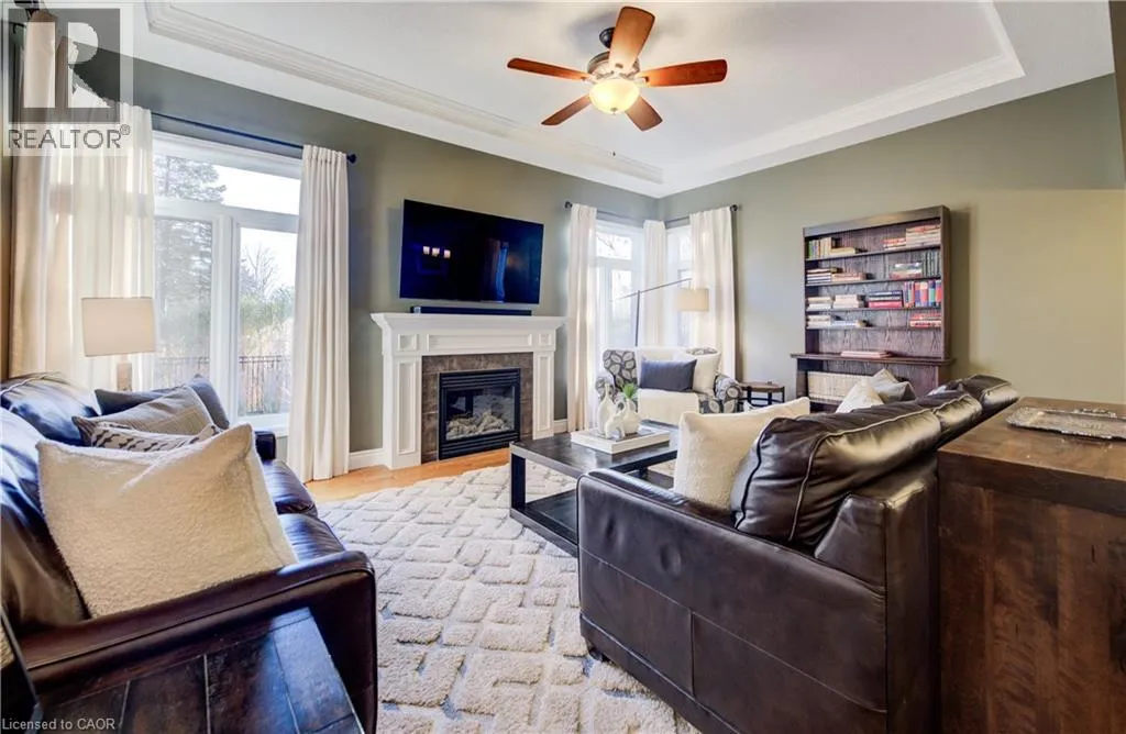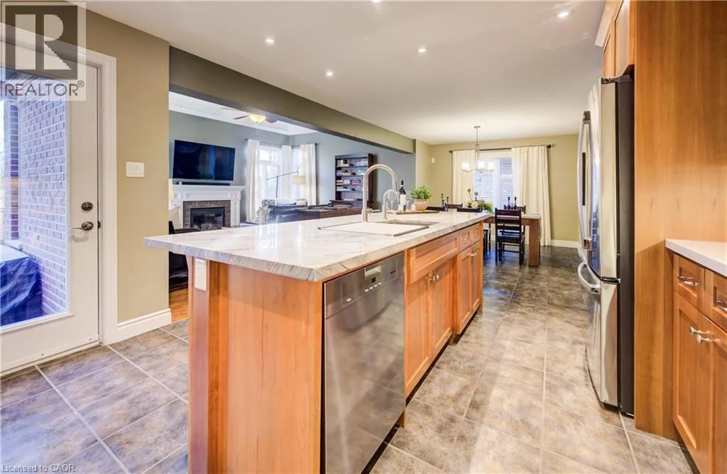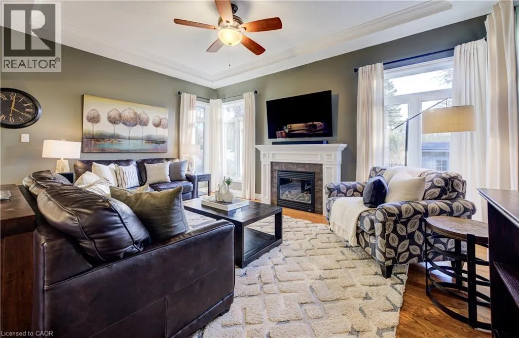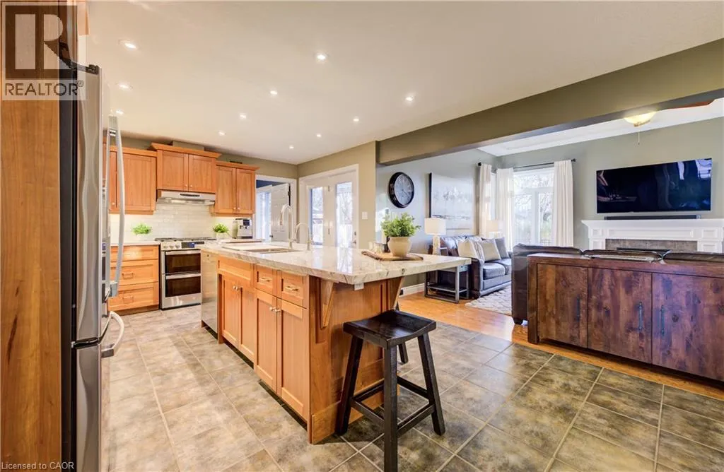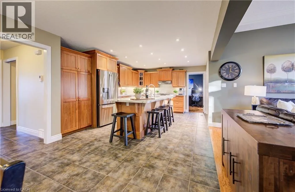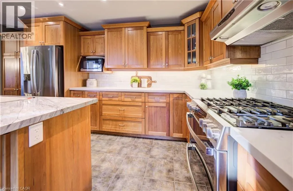 Barnswallow to Brookmead Welcome to this stunning 2-storey home that seamlessly blends modern comfort, thoughtful design, and an incredible backyard oasis. With 4 spacious bedrooms and 4 bathrooms, including a luxurious 5-piece primary ensuite, this home provides ample room for both family living and hosting guests. The bright, open-concept kitchen is a chefâs dream, showcasing a large 10â island, stylish backsplash, quartz & quartzite counters, and patio doors that open directly to your private outdoor retreat. Step outside to enjoy an impressive inground saltwater pool (2020), complete with a pool shed and backed by serene greenspace for exceptional privacy. The main floor features a cozy family room with a gas fireplace, a welcoming dining area perfect for gatherings, and a dedicated office with built-in desk and cabinetry, an ideal spot for work or study. Upstairs, beautiful hardwood flooring adds warmth and elegance throughout. The finished basement expands your living space even further, offering a comfortable theatre room with step-up seating, perfect for movie nights or entertaining guests. Additional highlights include central vacuum, a low-maintenance composite deck, and quality finishes throughout that elevate the homeâs appeal. This home is just a short walk to the Woolwich Memorial Centre, parks, and downtown. Energy star certified and built by Emerald Homes. With its ideal blend of privacy, comfort, and location, this home is the perfect place to create lasting memories for years to come. (id:27476)