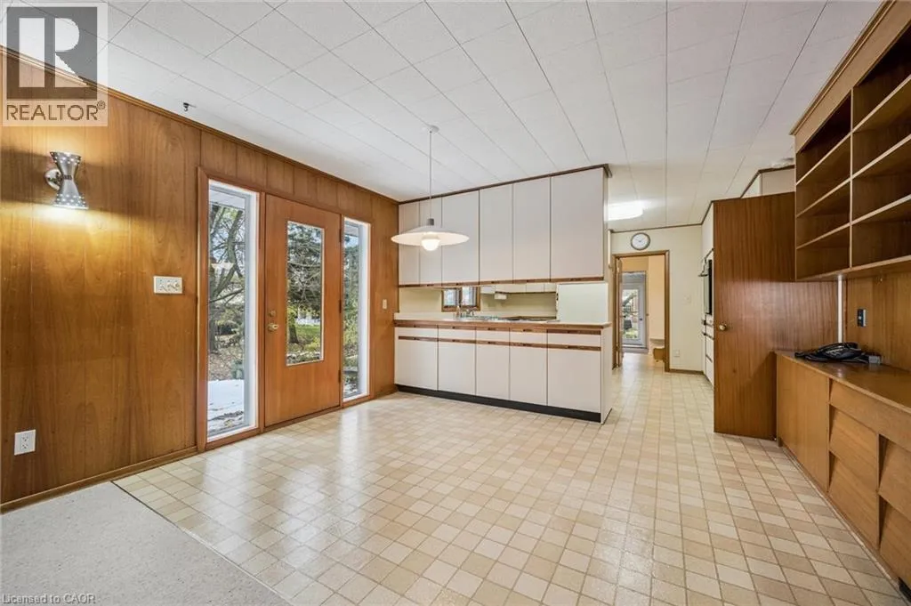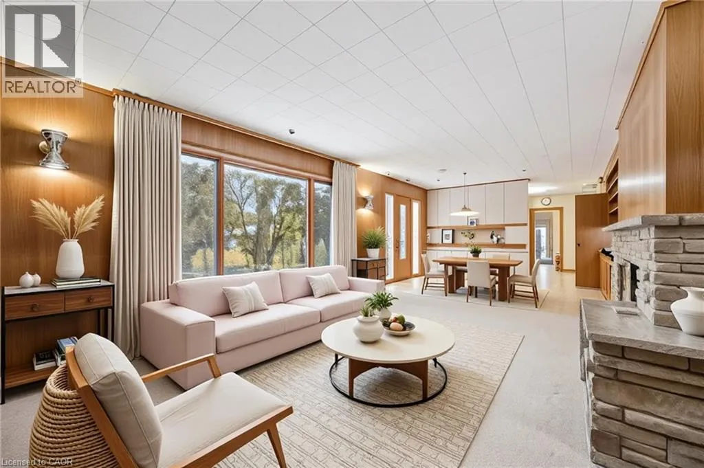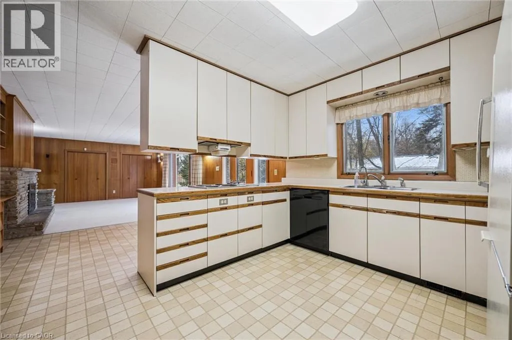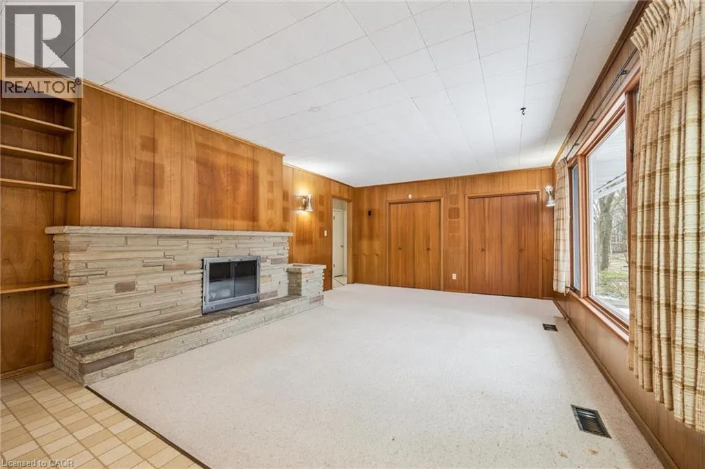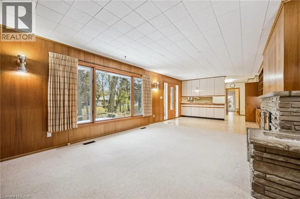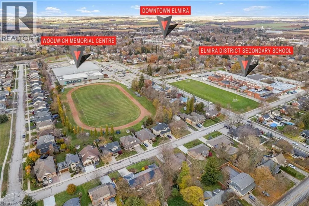 ARTHUR STREET SOUTH AND TURN ONTO SECOND STREET. Spacious All-Brick Bungalow in the Heart of Elmira. Set on a quiet, tree-lined street in Elmiraâs welcoming community, this beautifully maintained all-brick bungalow offers the perfect mix of charm, space, and opportunity. Situated on a generous .39-acre lot with 138 feet of frontage, this custom-built home has been lovingly cared for and is available for the very first time. Offering nearly 2,500 square feet on one level, this bright and open residence features 4 bedrooms, including a 3-piece ensuite, making it an ideal fit for a growing family or anyone seeking single-floor living. A large, inviting foyer welcomes you into the mid-century inspired layout, where the sunken living room impresses with oversized windows and a cozy wood-burning fireplaceâa perfect gathering spot. The adjoining formal dining room adds an elegant touch for entertaining. At the heart of the home, the spacious family room that offers a 2nd fireplace and opens directly to the deck and private backyard, surrounded by mature trees for a serene, forest-like feel. The kitchen is functional as-is or ready for your personal updates and design vision. Additional features include a main-floor mudroom with laundry, a bright sunroom addition, and a massive unfinished basement with walk-up access to the garageâideal for future development, an in-law suite, or extra living space. Thereâs no shortage of storage. Located in a sought-after neighbourhood, youâll enjoy close proximity to schools, the community centre, Kate's Place Park, local shops, and scenic trailsâthe best of small-town living just minutes from the city. (id:27476)